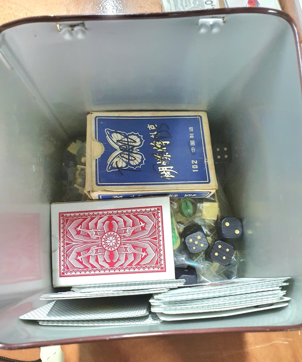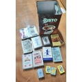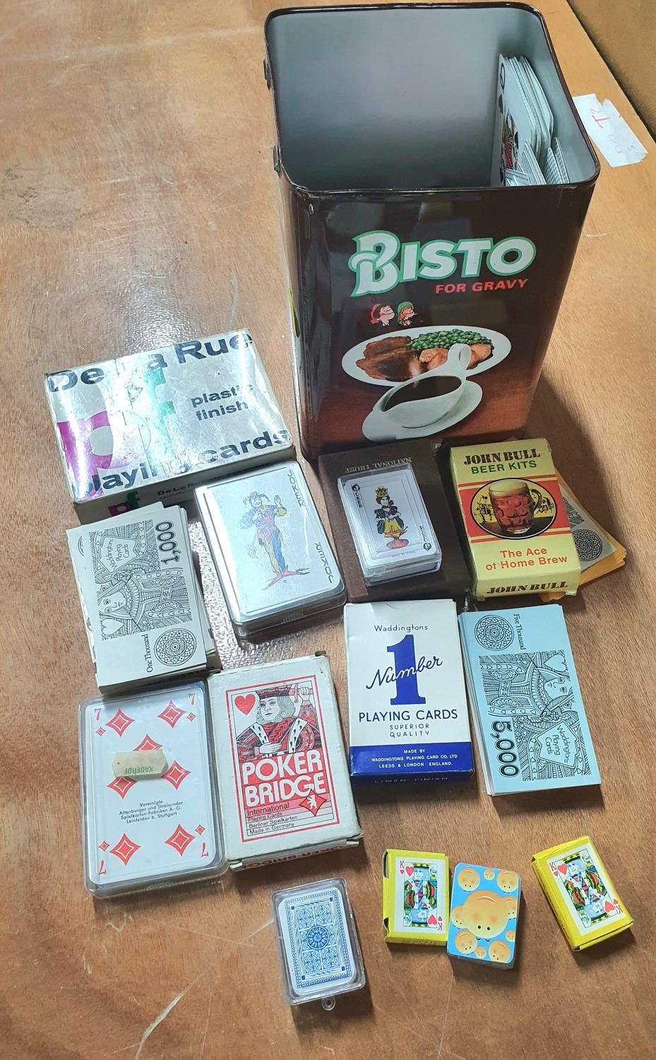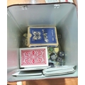 Tin box full of differing packs of playing cards etc (Qty)