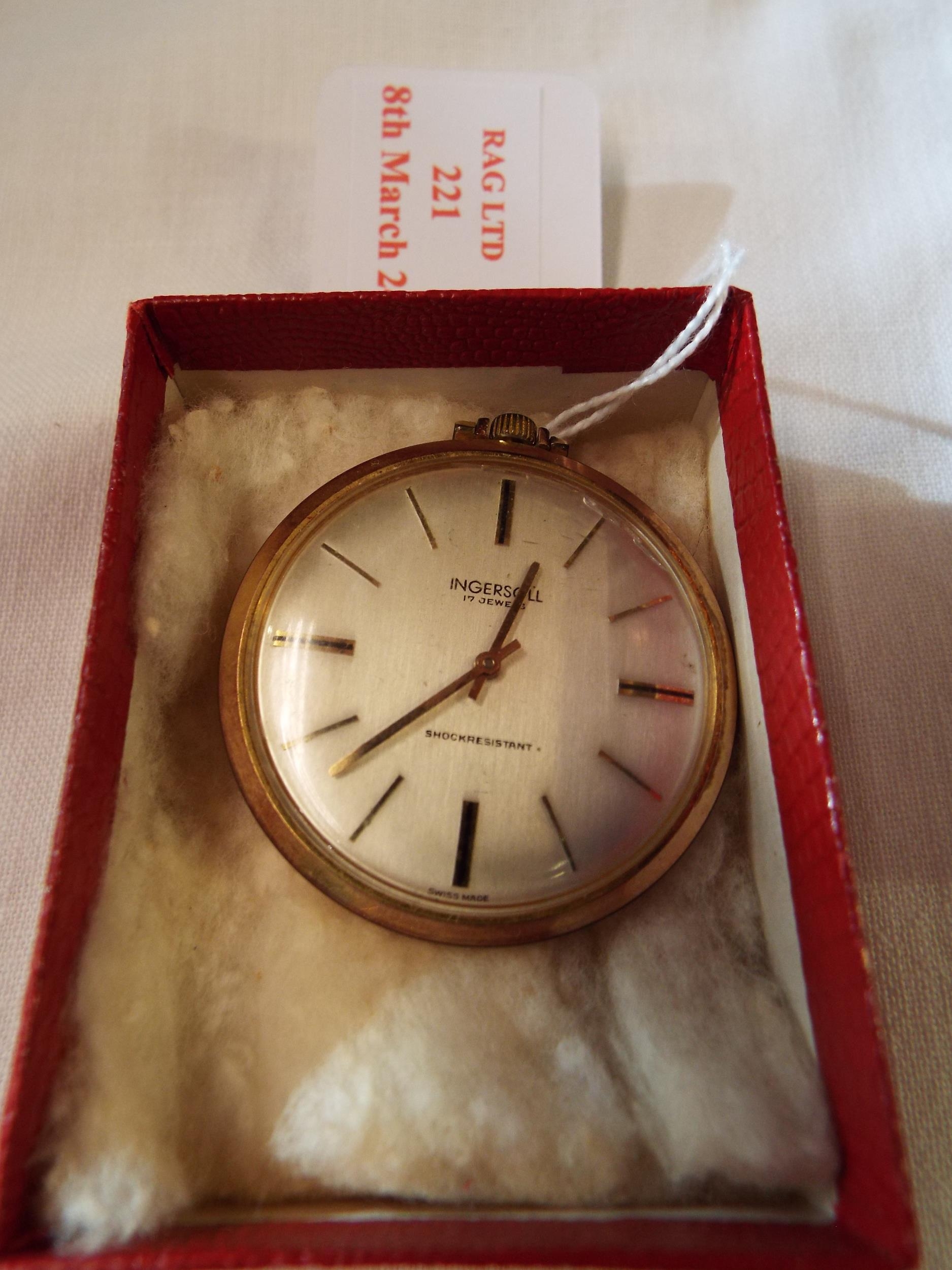 A vintage Ingersol yellow tone pocket watch