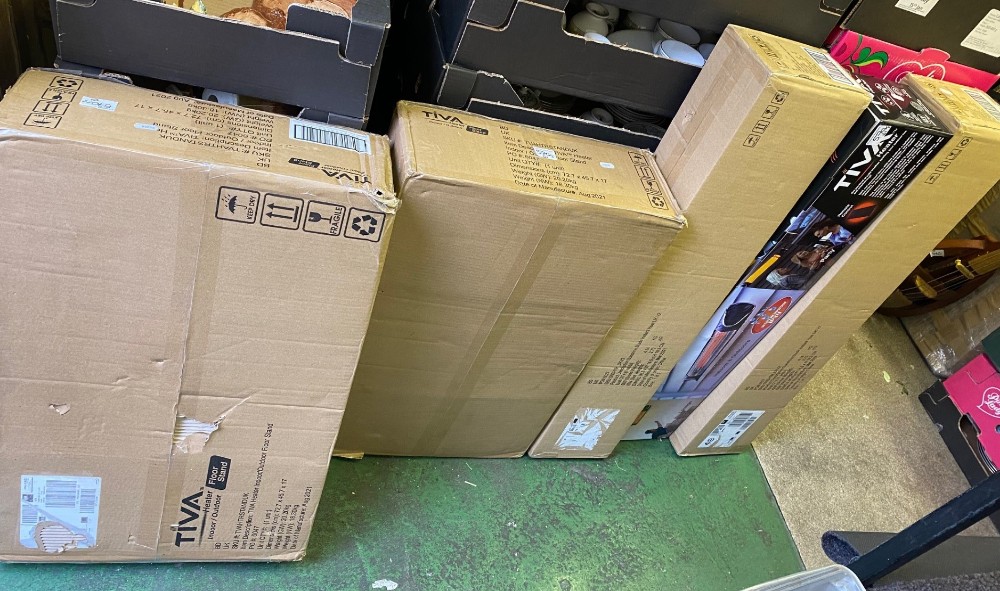 3 TIVA Heaters with remote control 2000W together with 2 TIVA Heater floor stands (All in original boxes)