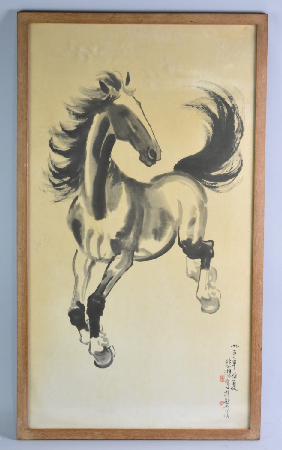 A Framed Chinese Wood Block Print, The Colt, After Yin Shu Shih, 39x71cms