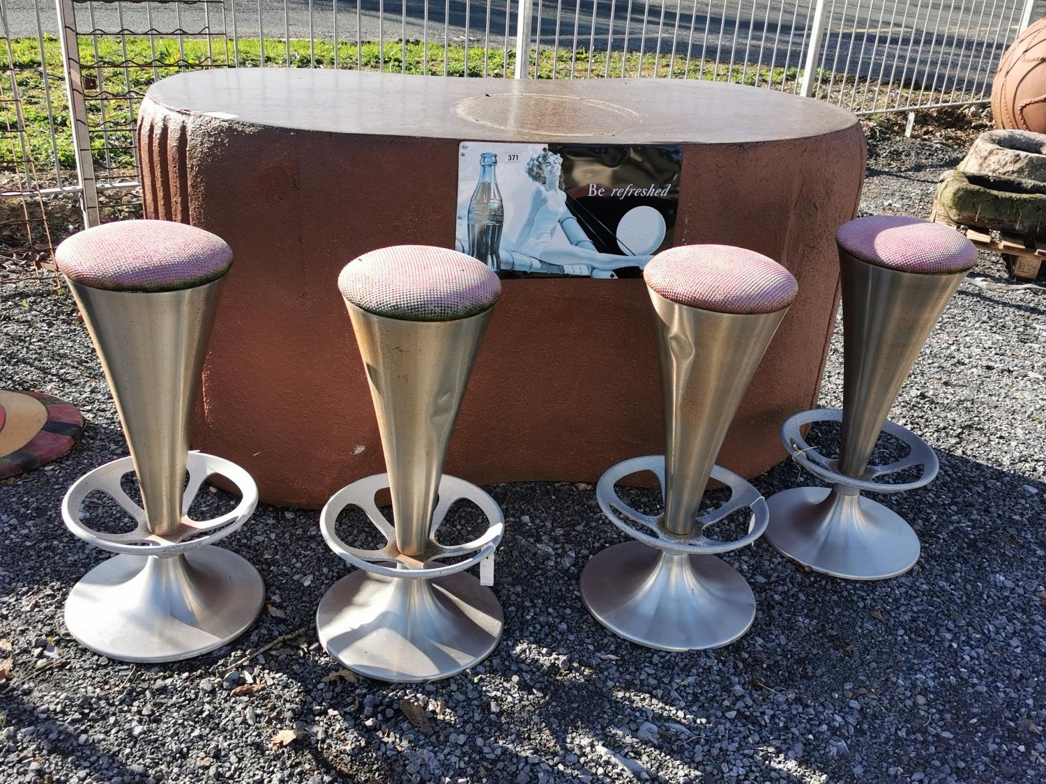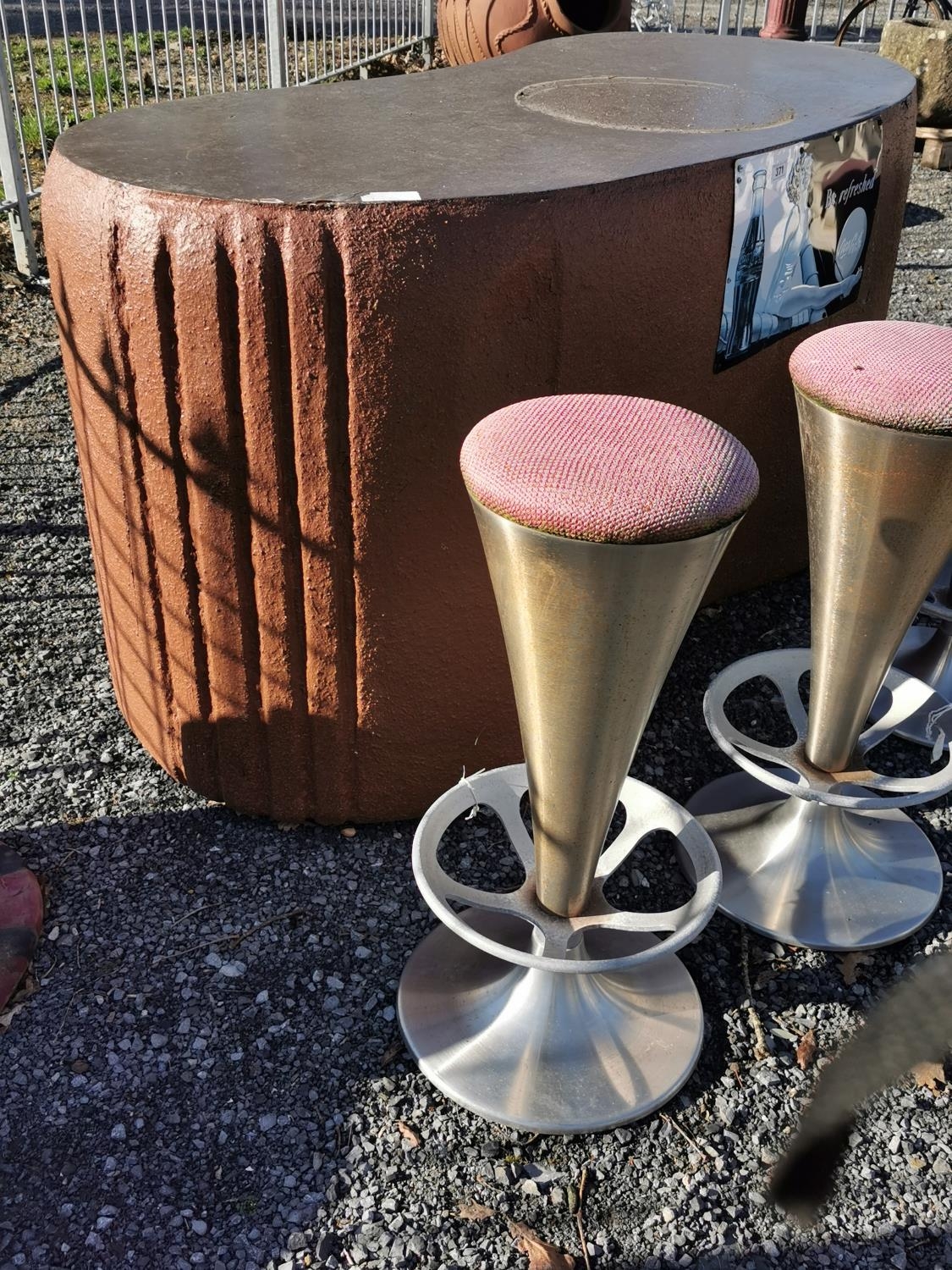 Garden bar and four matching chairs {bar is 95 cm H x 184 cm W x 80 cm D and stools are 80 cm H}.