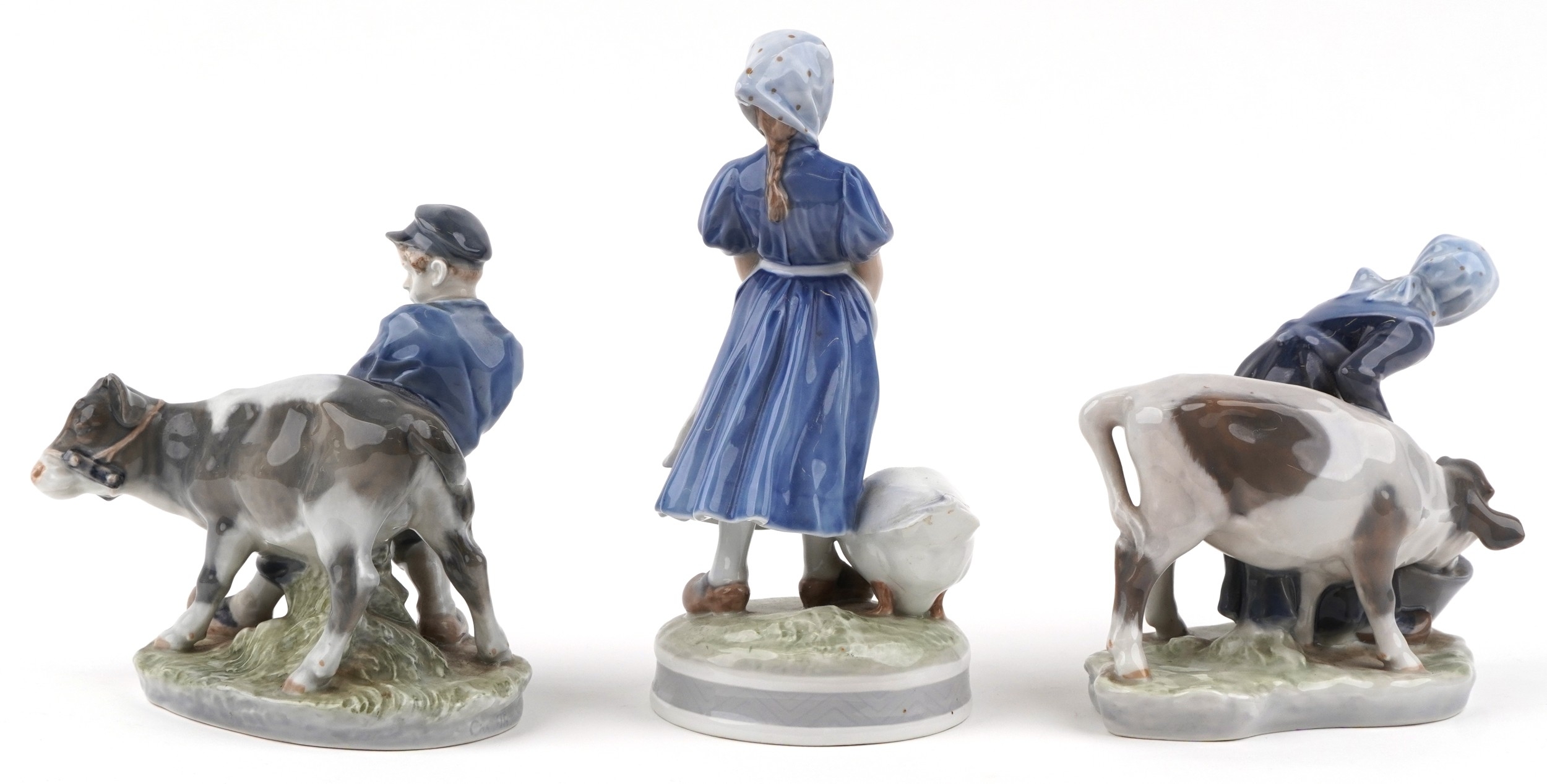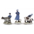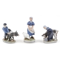 Three Royal Copenhagen Danish porcelain figure groups of farmers, the largest 23cm high.