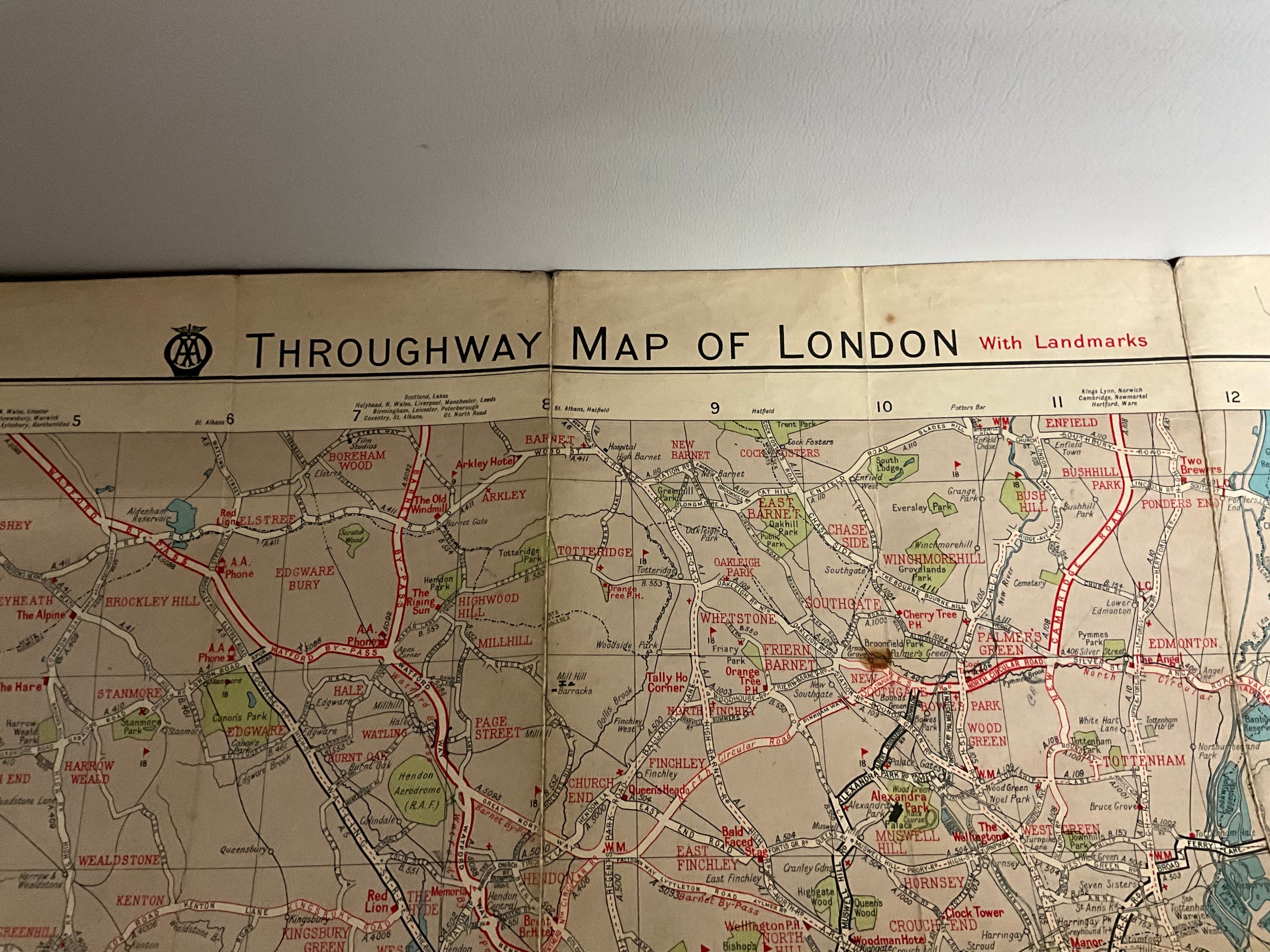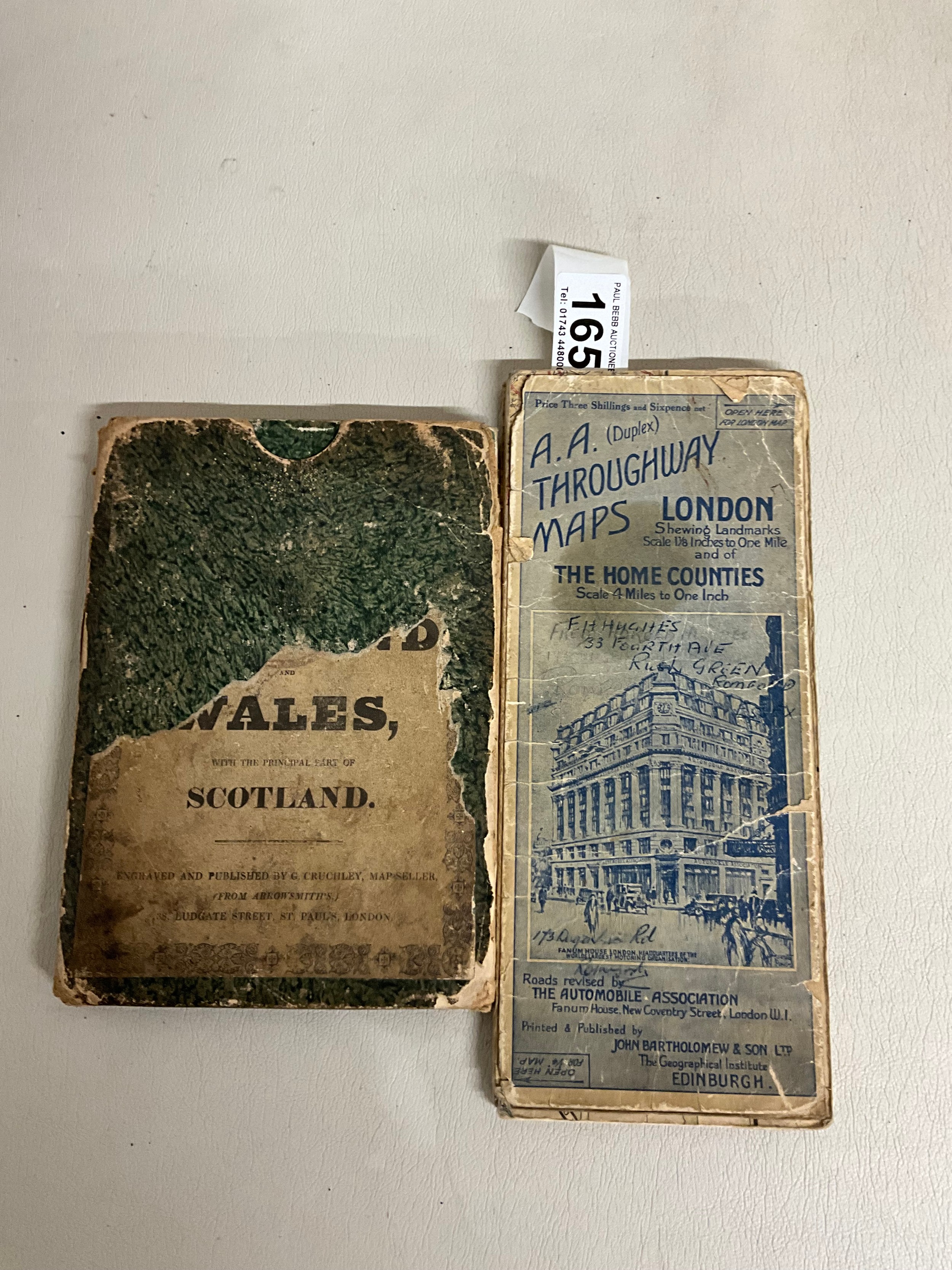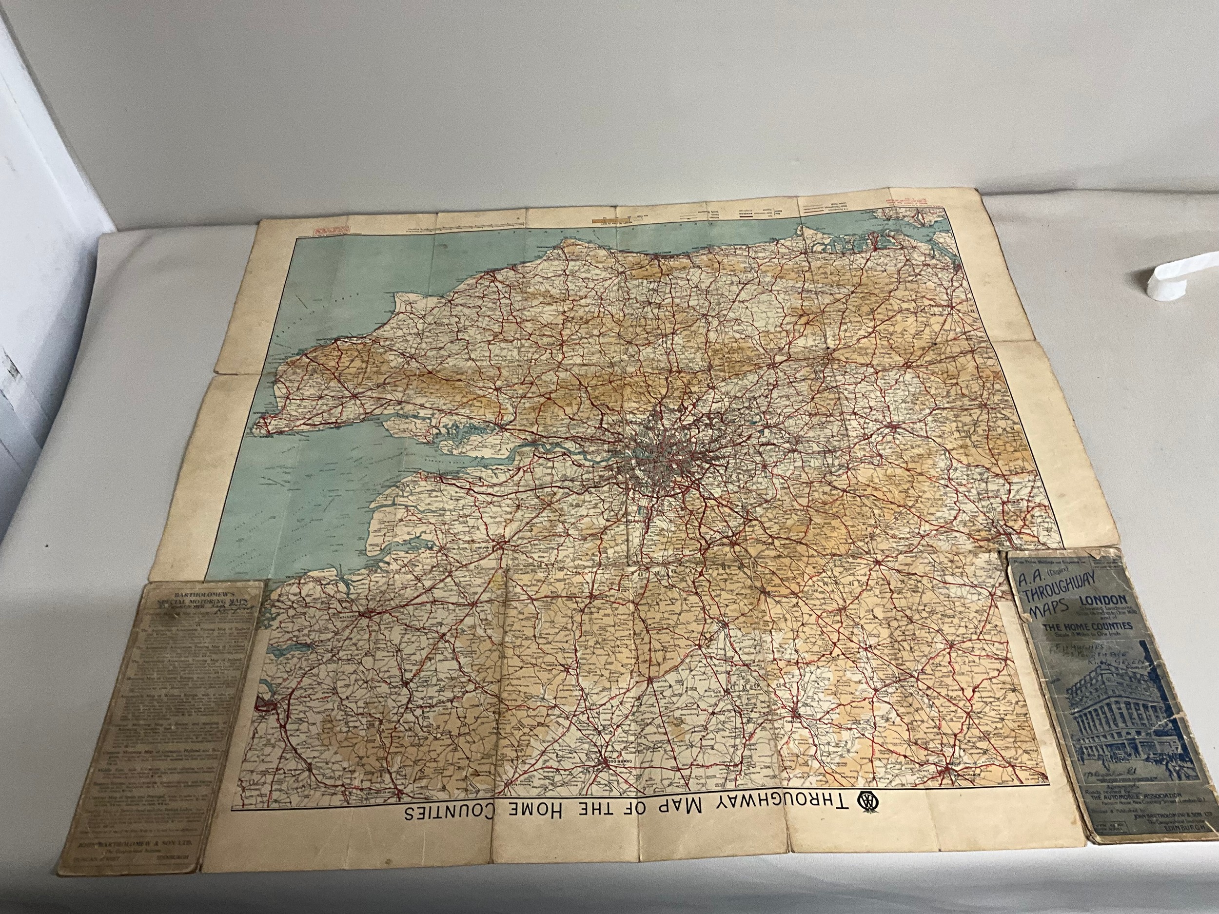 VINTAGE CRUCHLEYS MAP OF ENGLAND & WALES & PART OF SCOTLAND IN SLEEVE A/F AND VINTAGE AA DOUBLE SIDED (DUPLEX) THROUGHWAY MAPS OF LONDON SHOWING LANDMARKS A/F