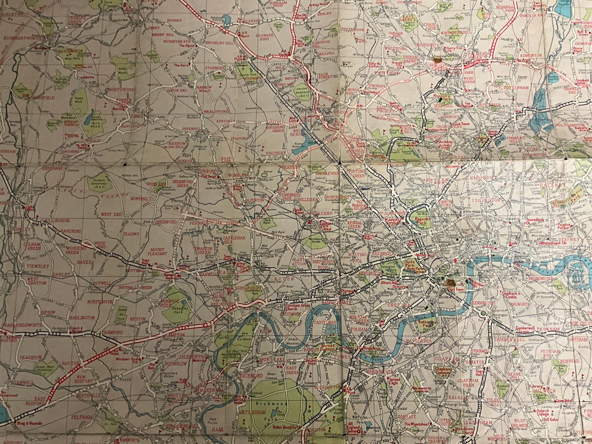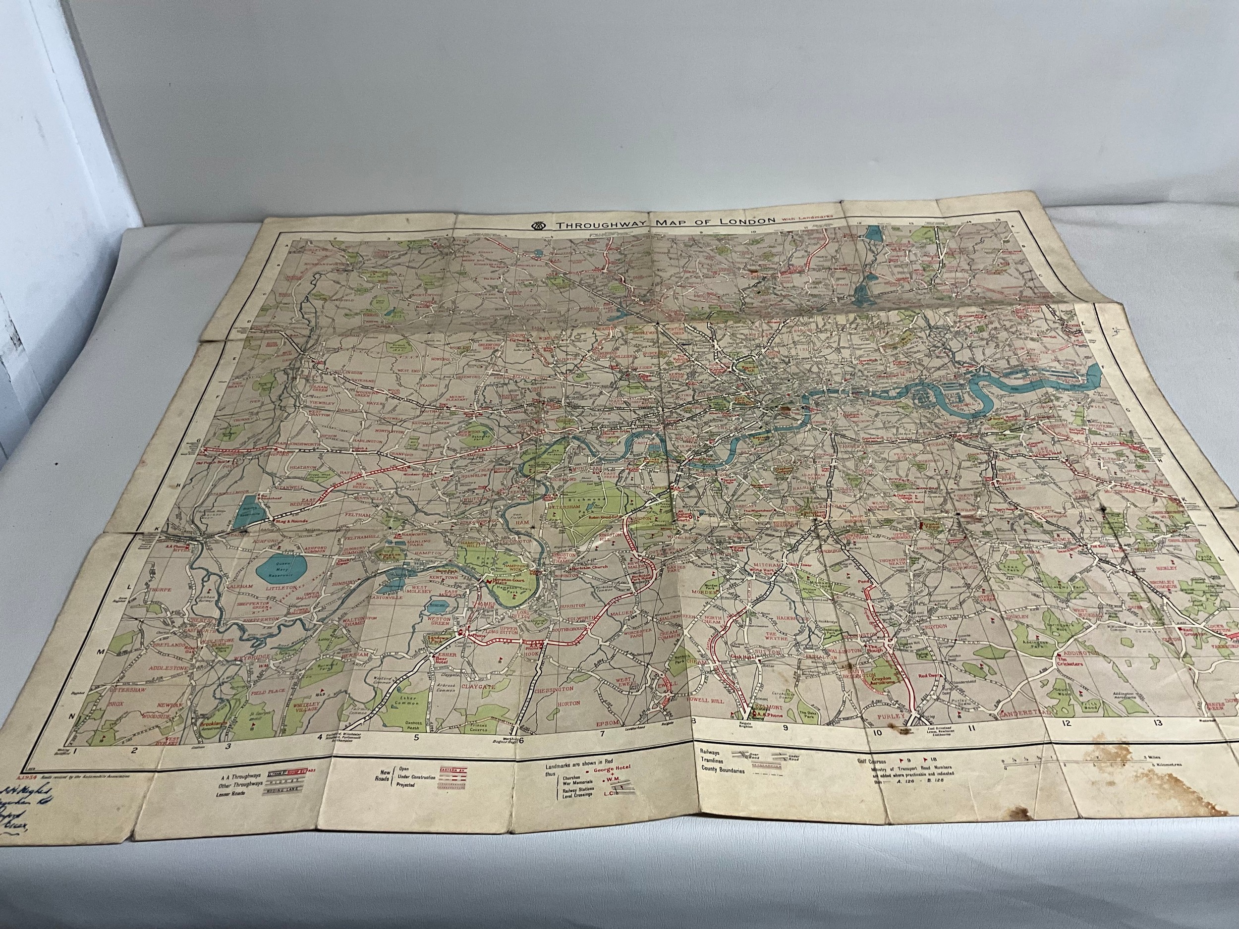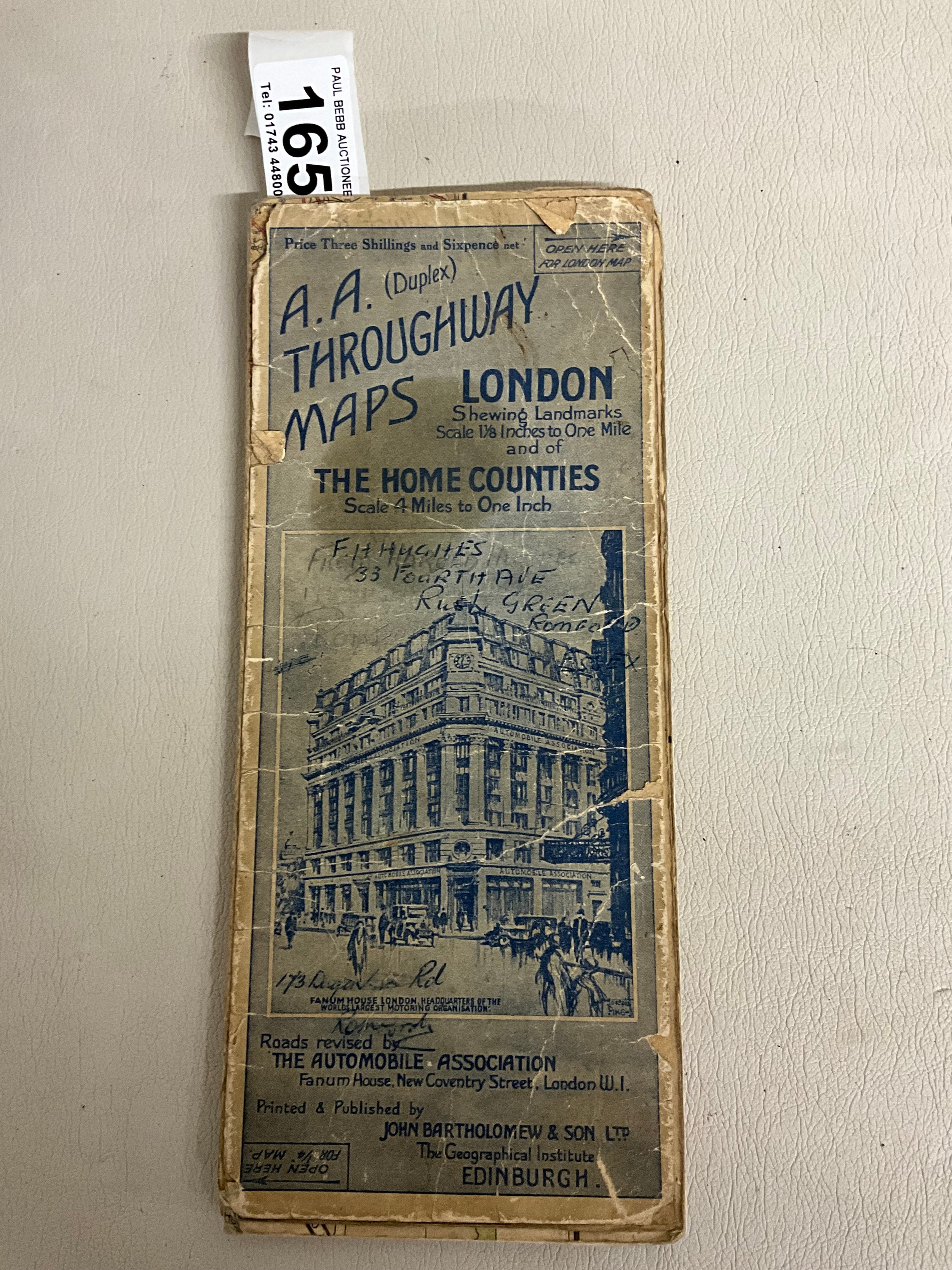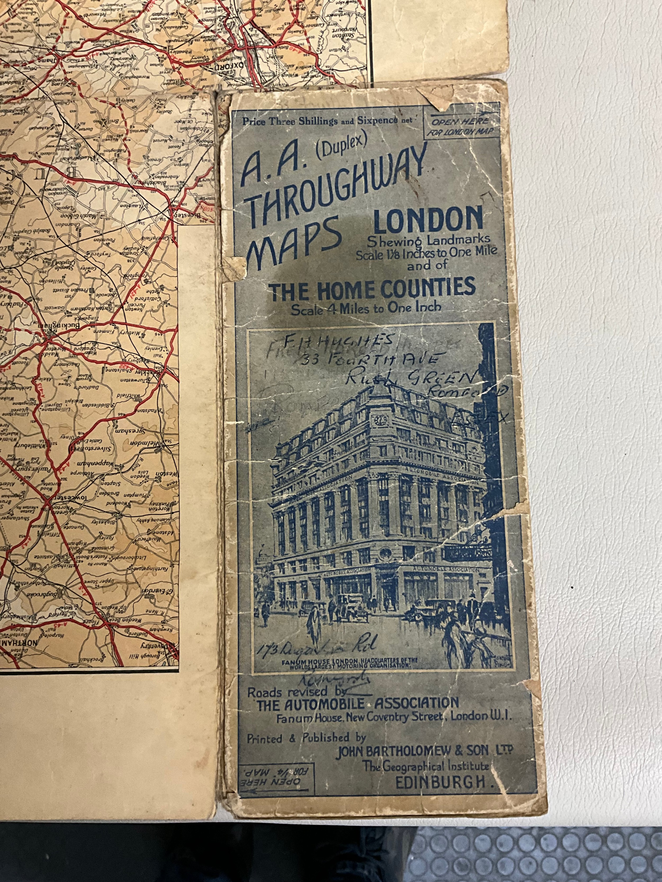 VINTAGE CRUCHLEYS MAP OF ENGLAND & WALES & PART OF SCOTLAND IN SLEEVE A/F AND VINTAGE AA DOUBLE SIDED (DUPLEX) THROUGHWAY MAPS OF LONDON SHOWING LANDMARKS A/F