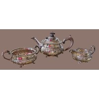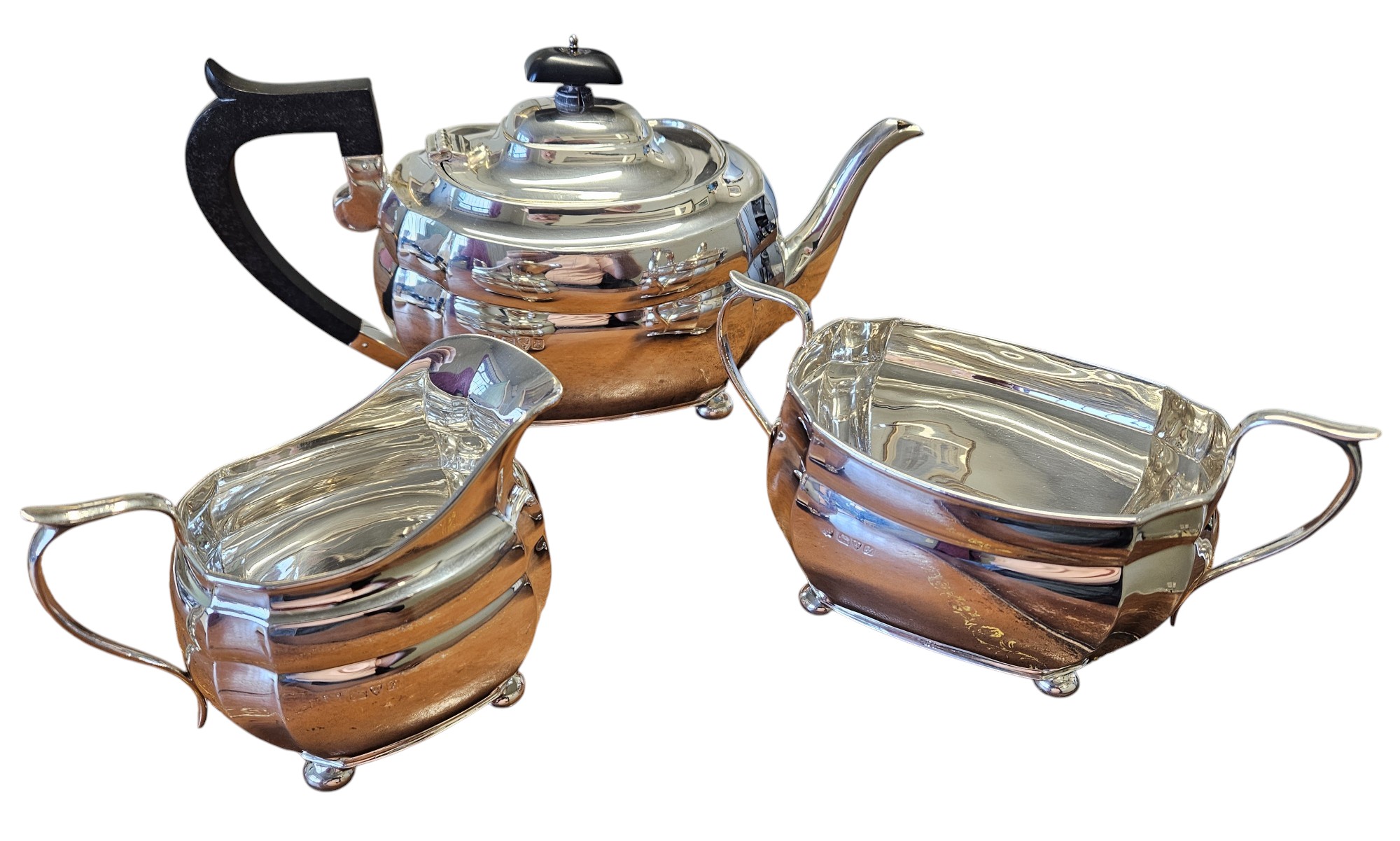 A three piece Silver Tea Set. Chester 1924. Gross weight 870 grams approx.