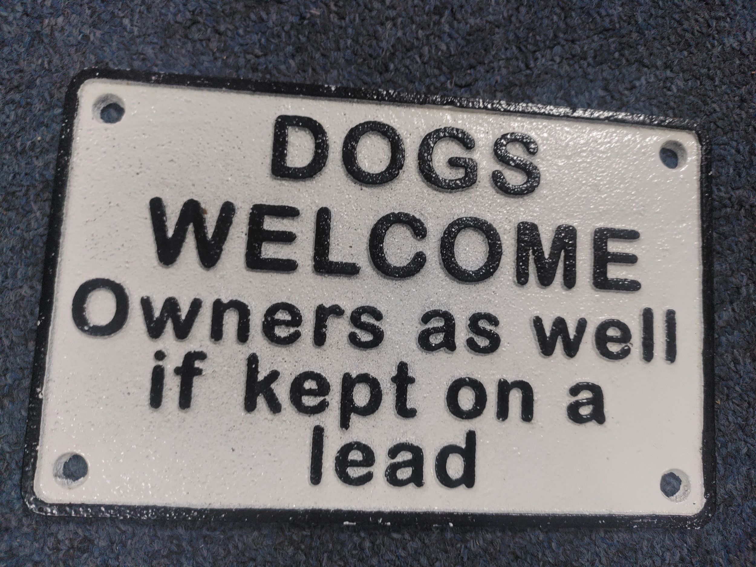 A cast iron dogs welcome sign. Size 12cm by 20cm