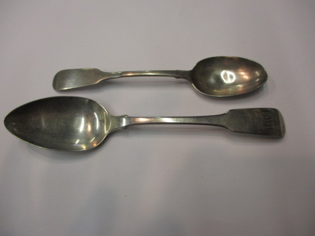 Two antique sterling silver spoons, some denting to one, approx gross parcel weight 55.3g