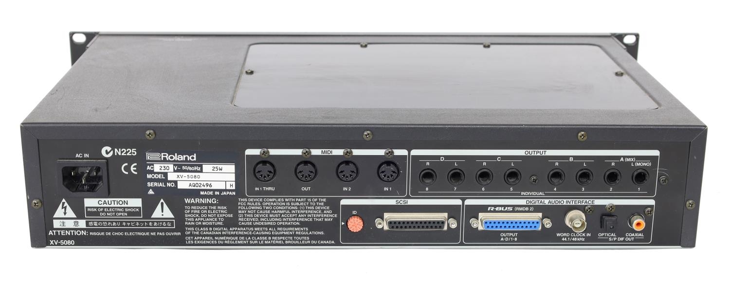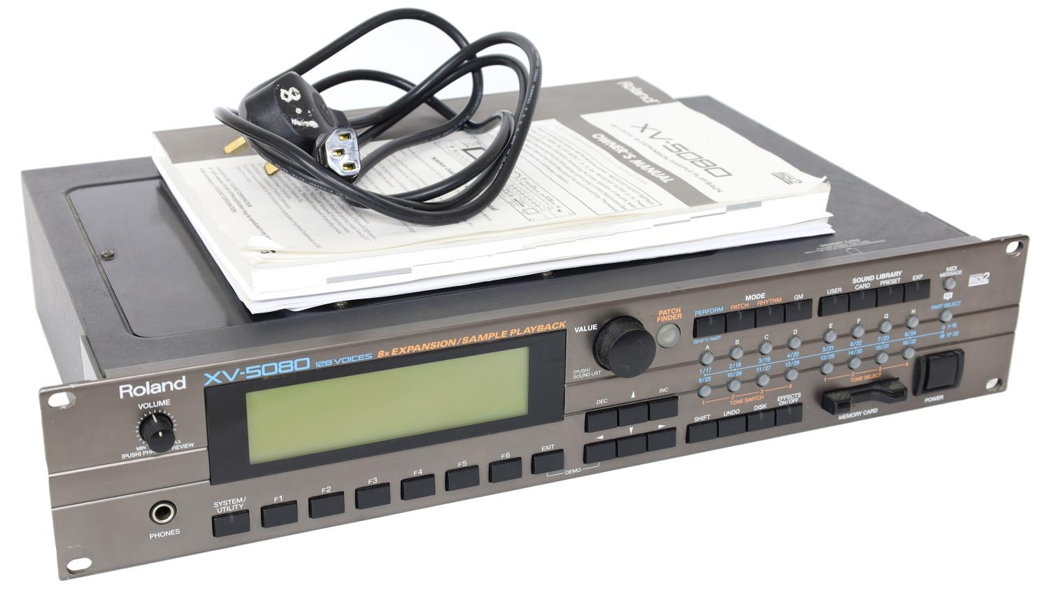 Roland XV-5080 digital synthesizer rack unit, made in Japan, ser. no. AQ02496, with manual