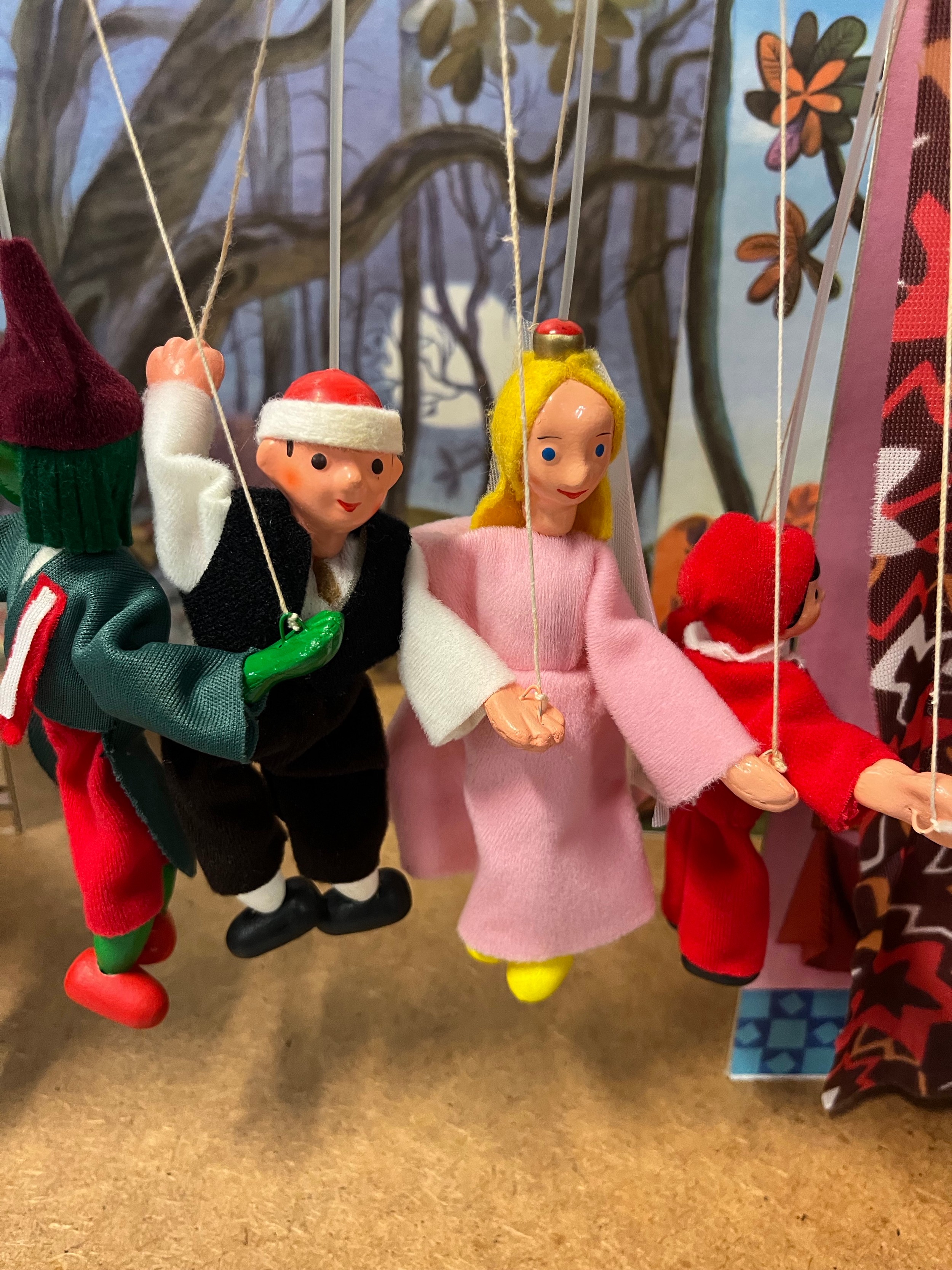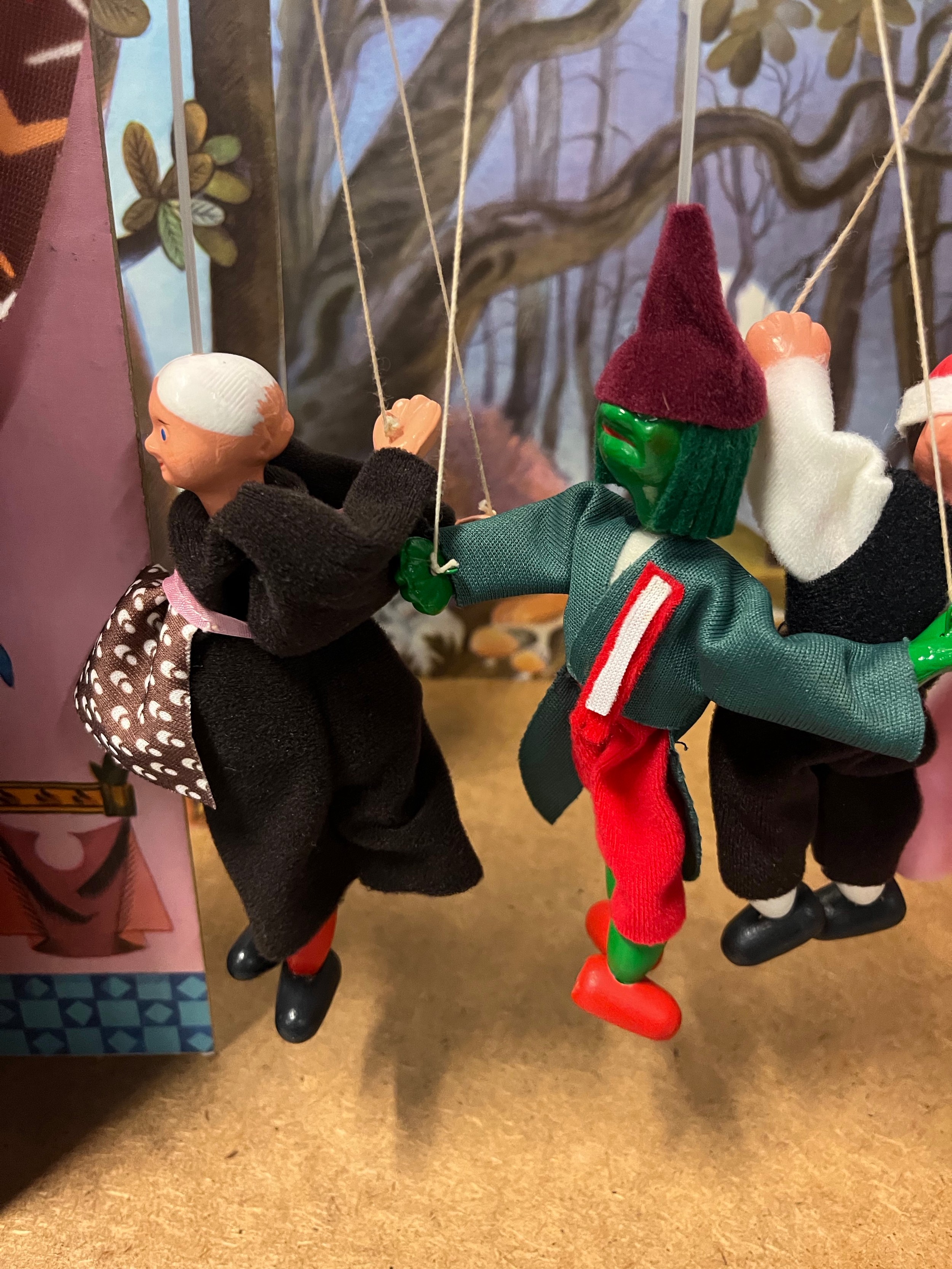 Vintage Heritage collection fantasy puppet theatre with 5 puppets.