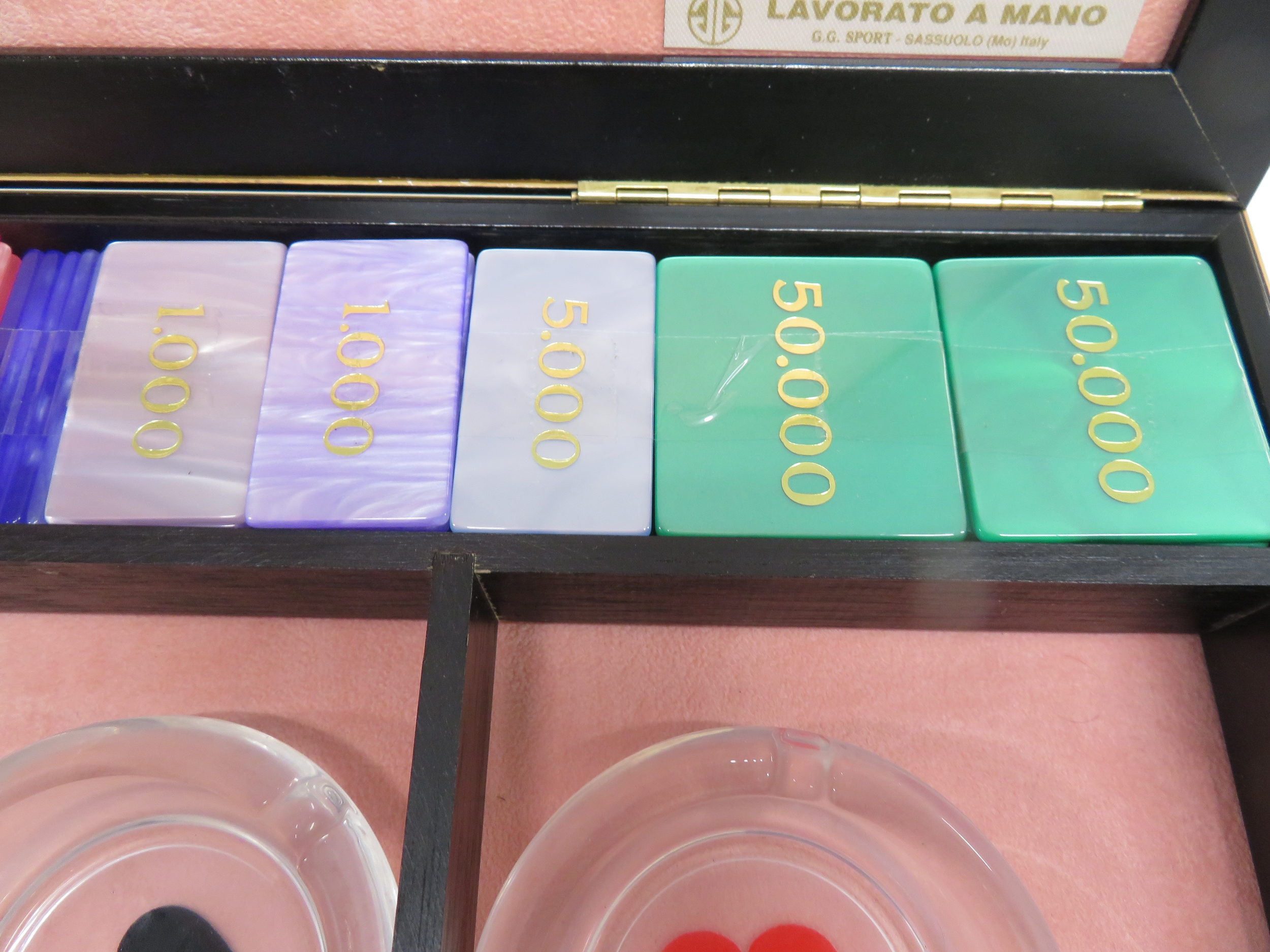 Luxury handmade Italian gambling set with tokens, playing ca...