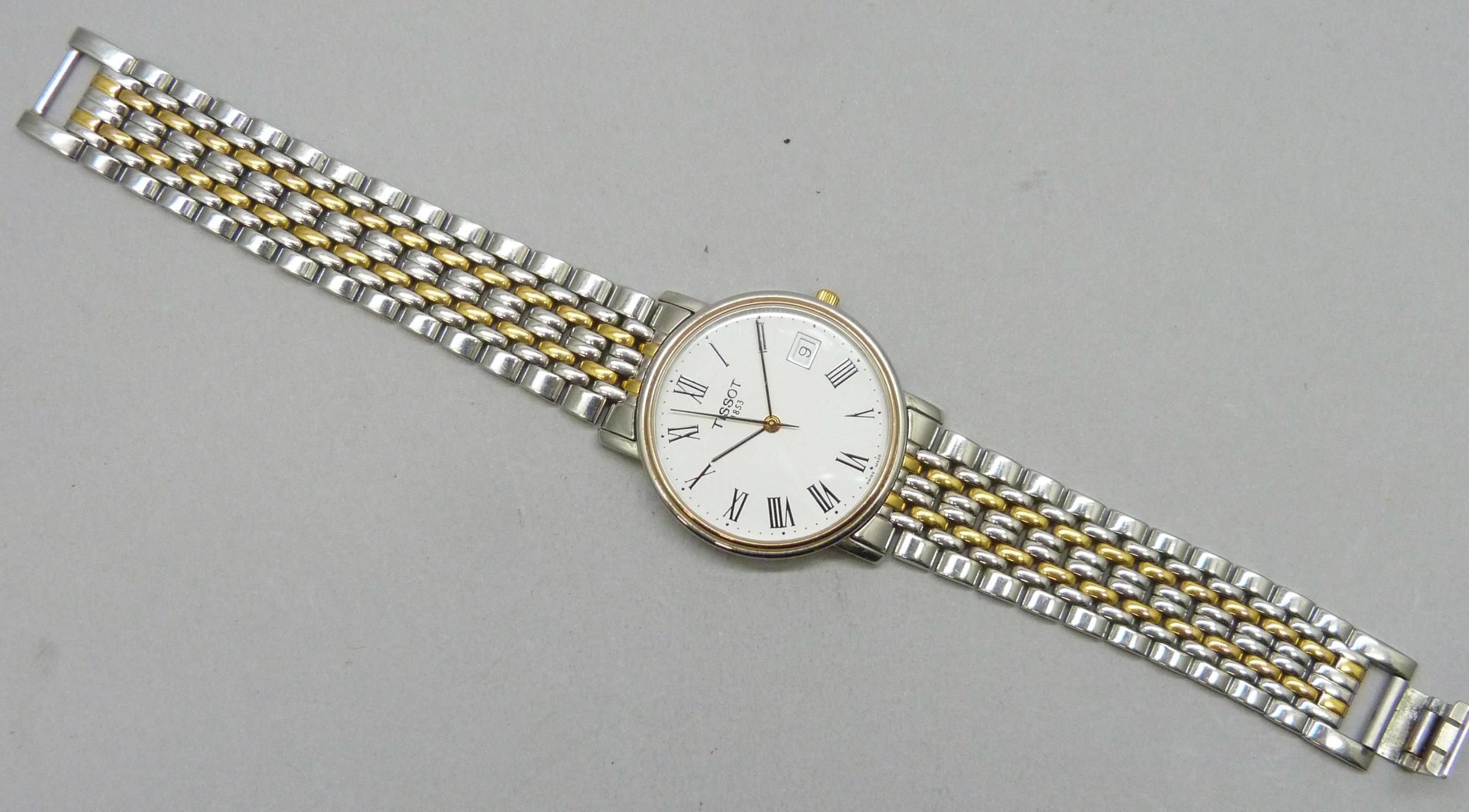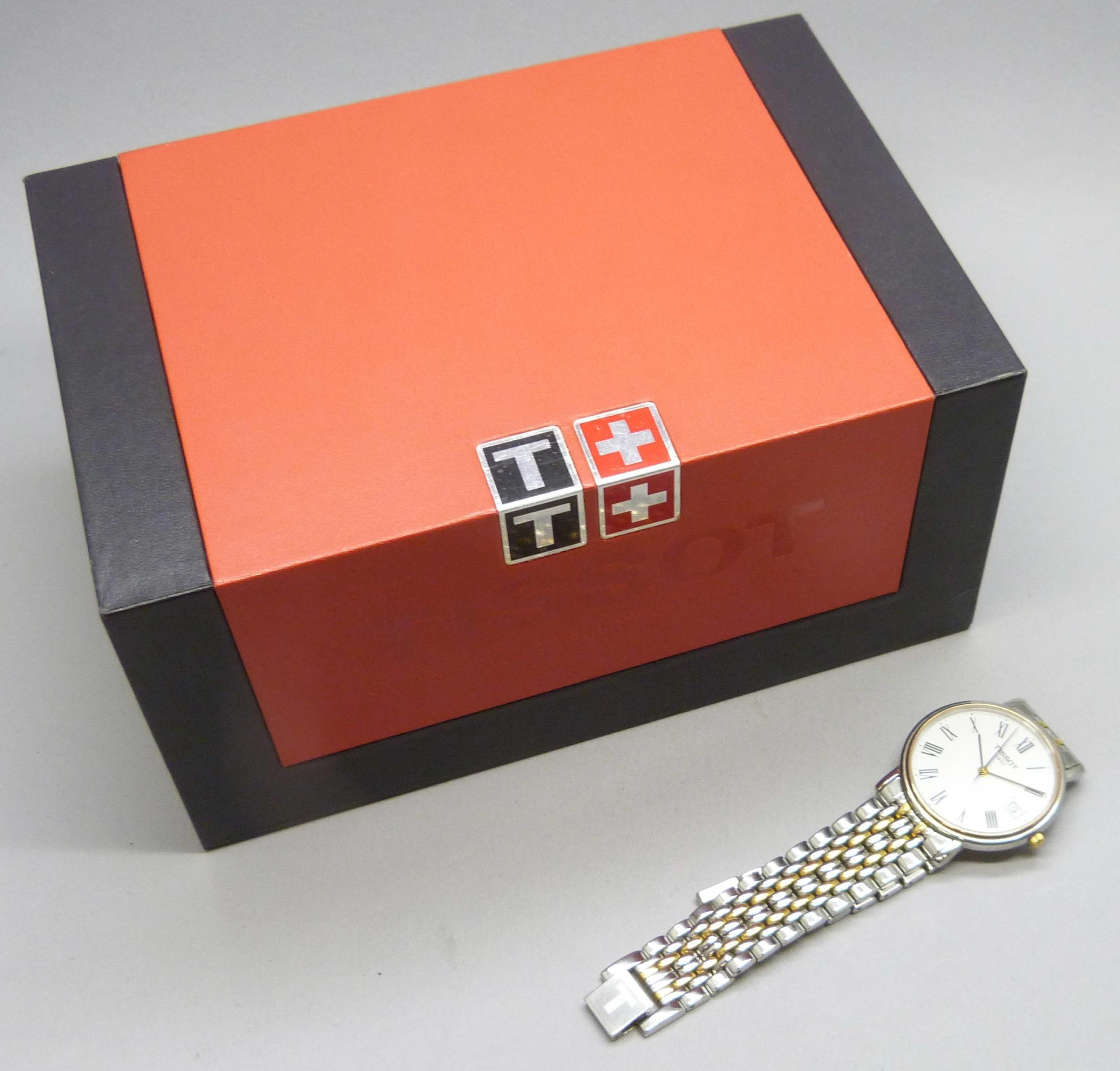 A Tissot wristwatch with white dial and date aperture, 35mm including crown, boxed