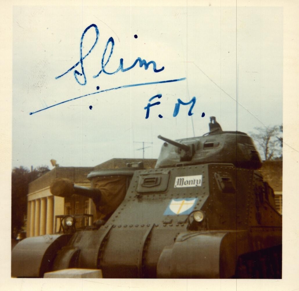 Field Marshall Slim on tank called Monty signed 3x3inch colour photo.