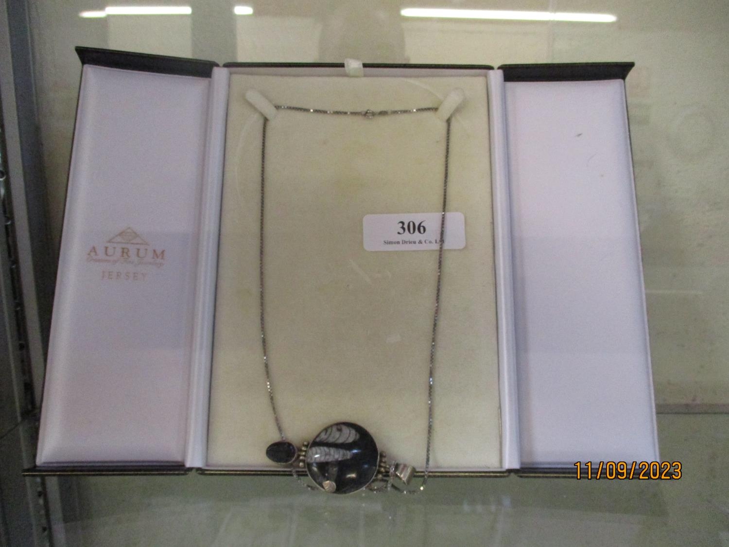 A sterling silver and black hard stone pendant and necklace