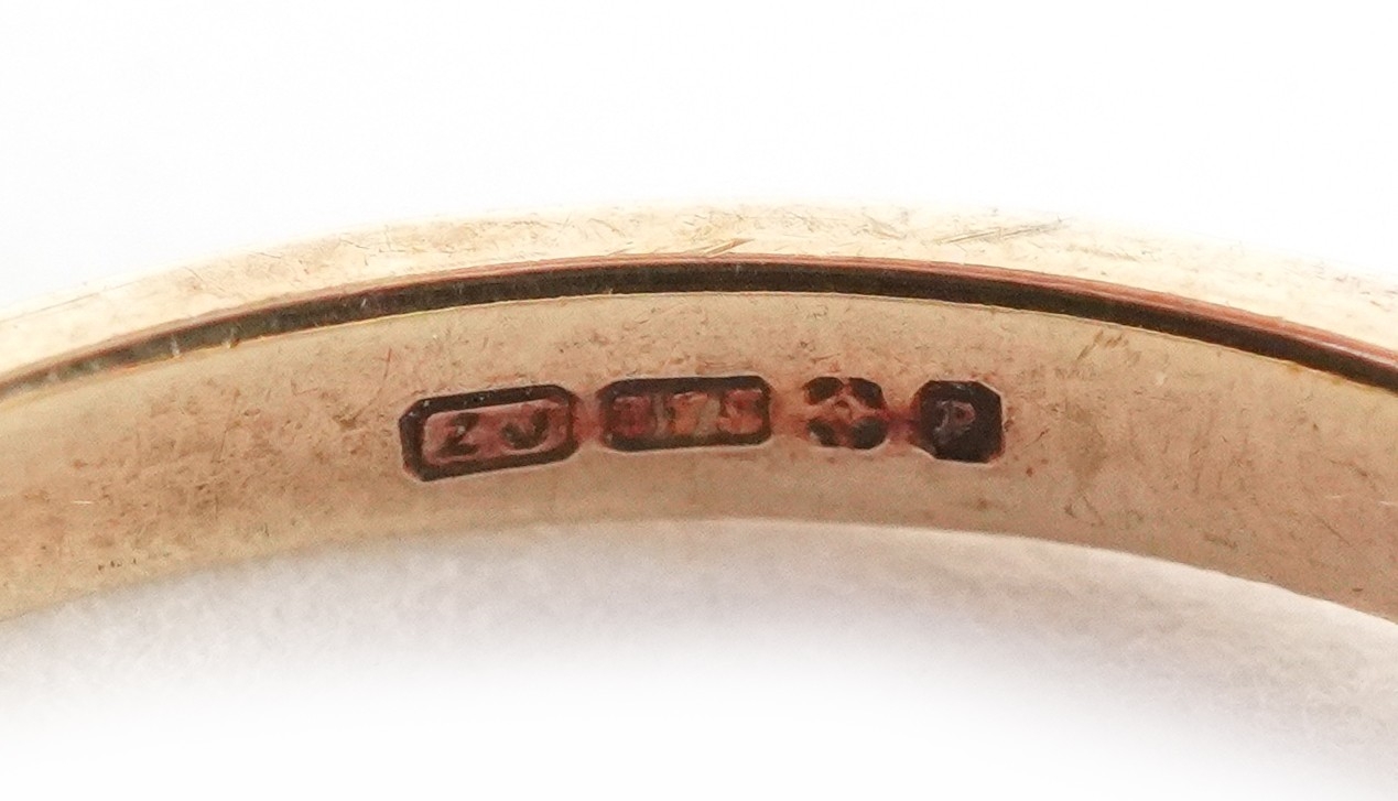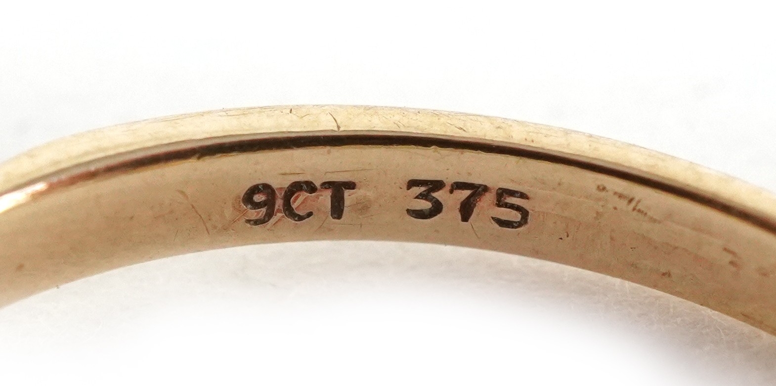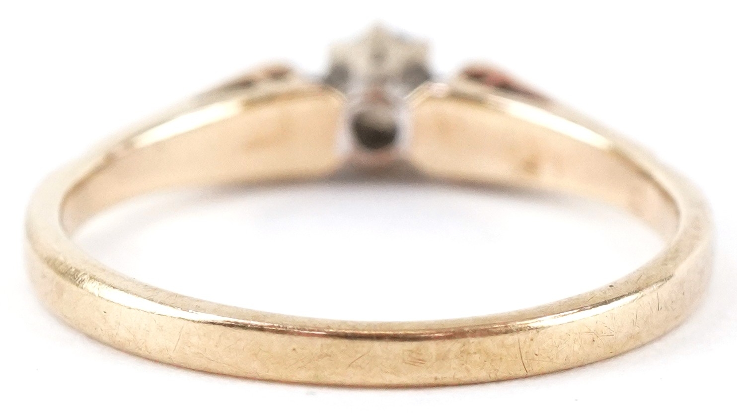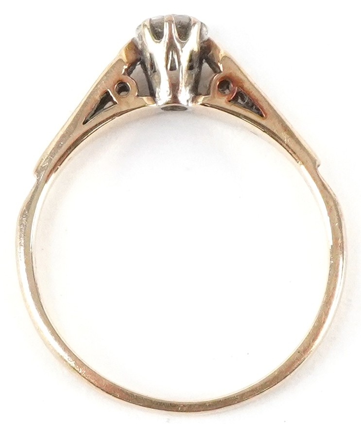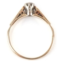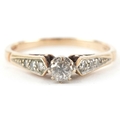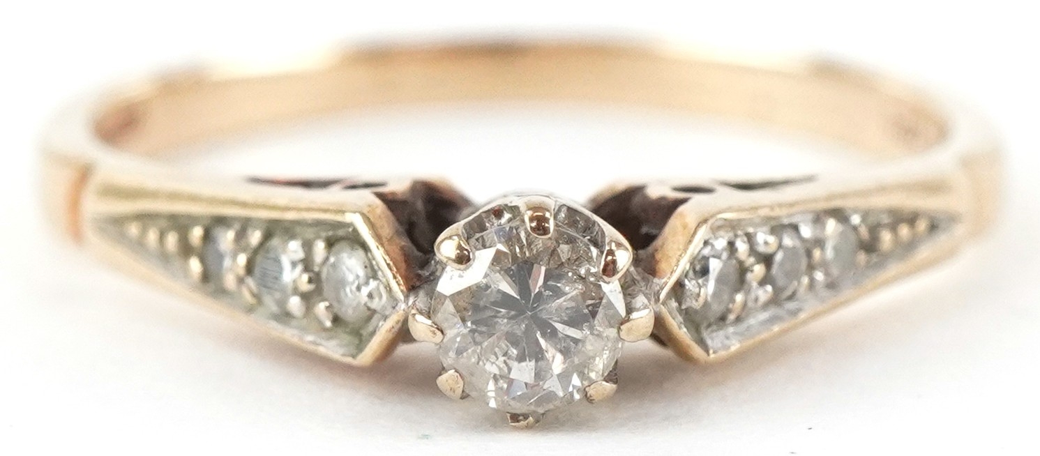 A 9ct gold diamond solitaire ring with diamond set shoulders, size M, 1.8g.