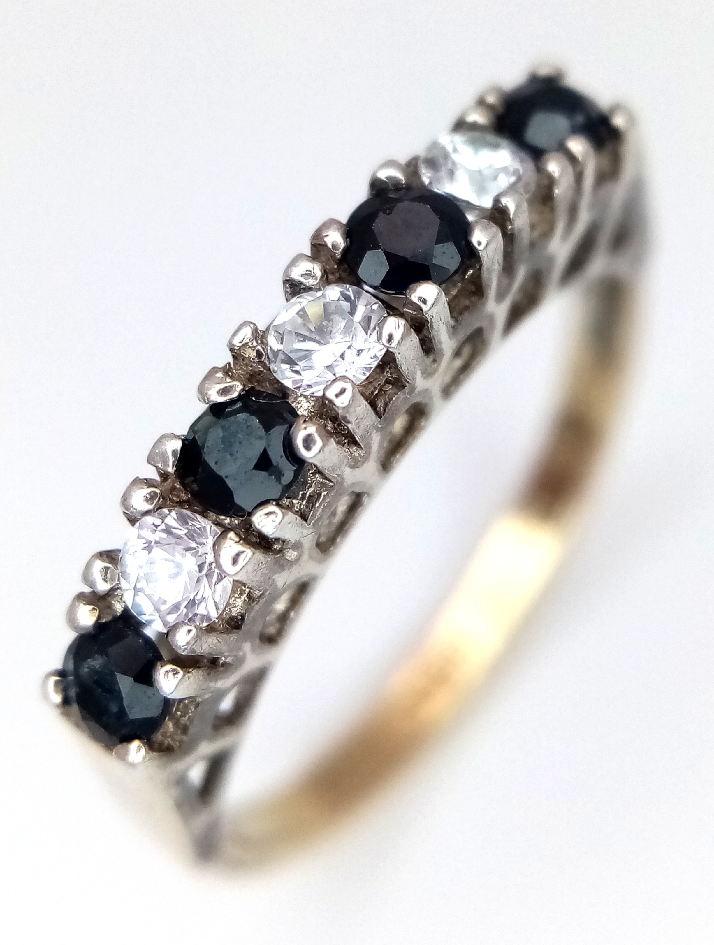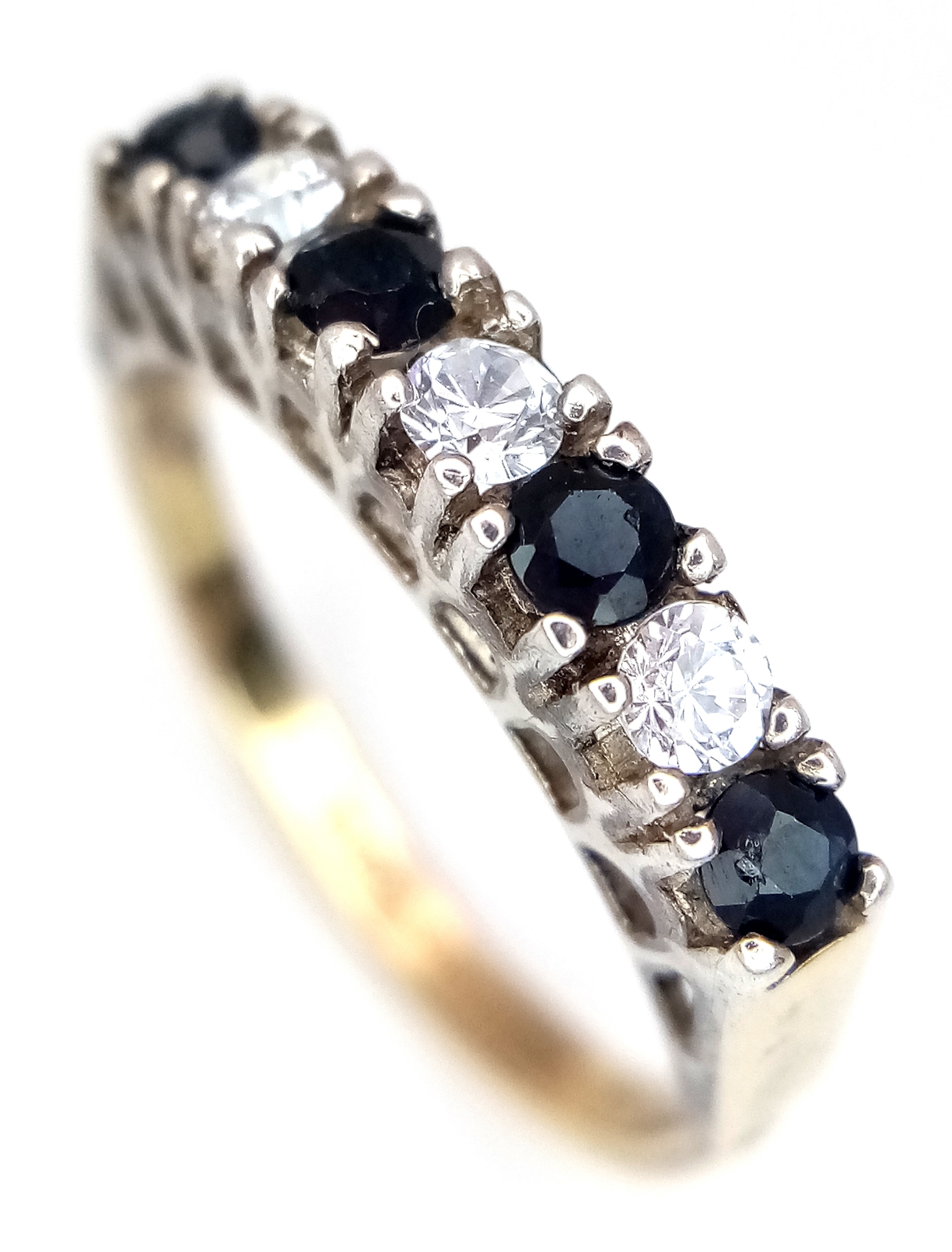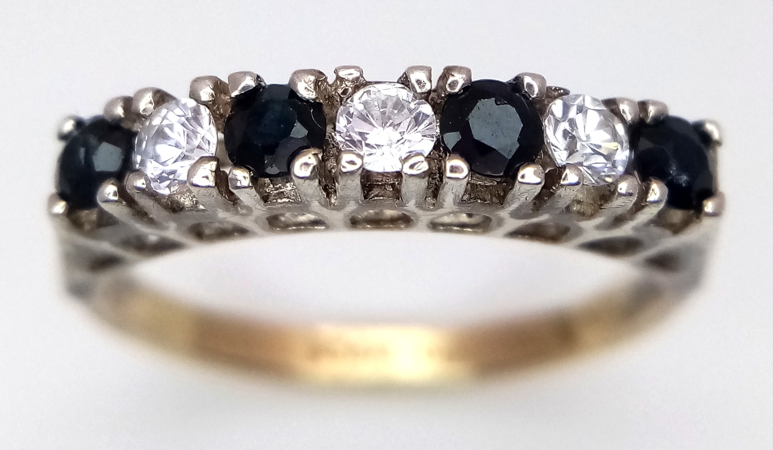 A 9K Gold and Silver, Sapphire and White Stone Ring. Size L. 2.1g. Ref: 8.14