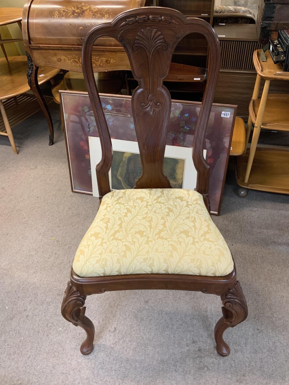 A set long set of 12 Queen Anne style walnut dining chairs, all in god condition. (D)