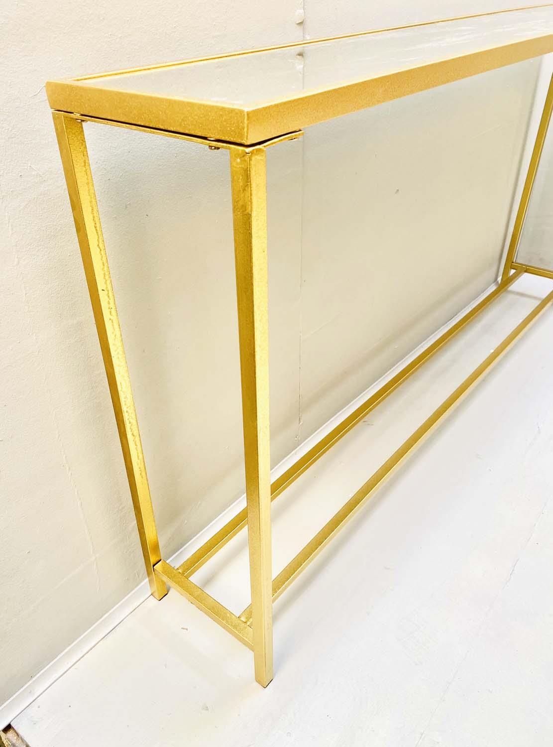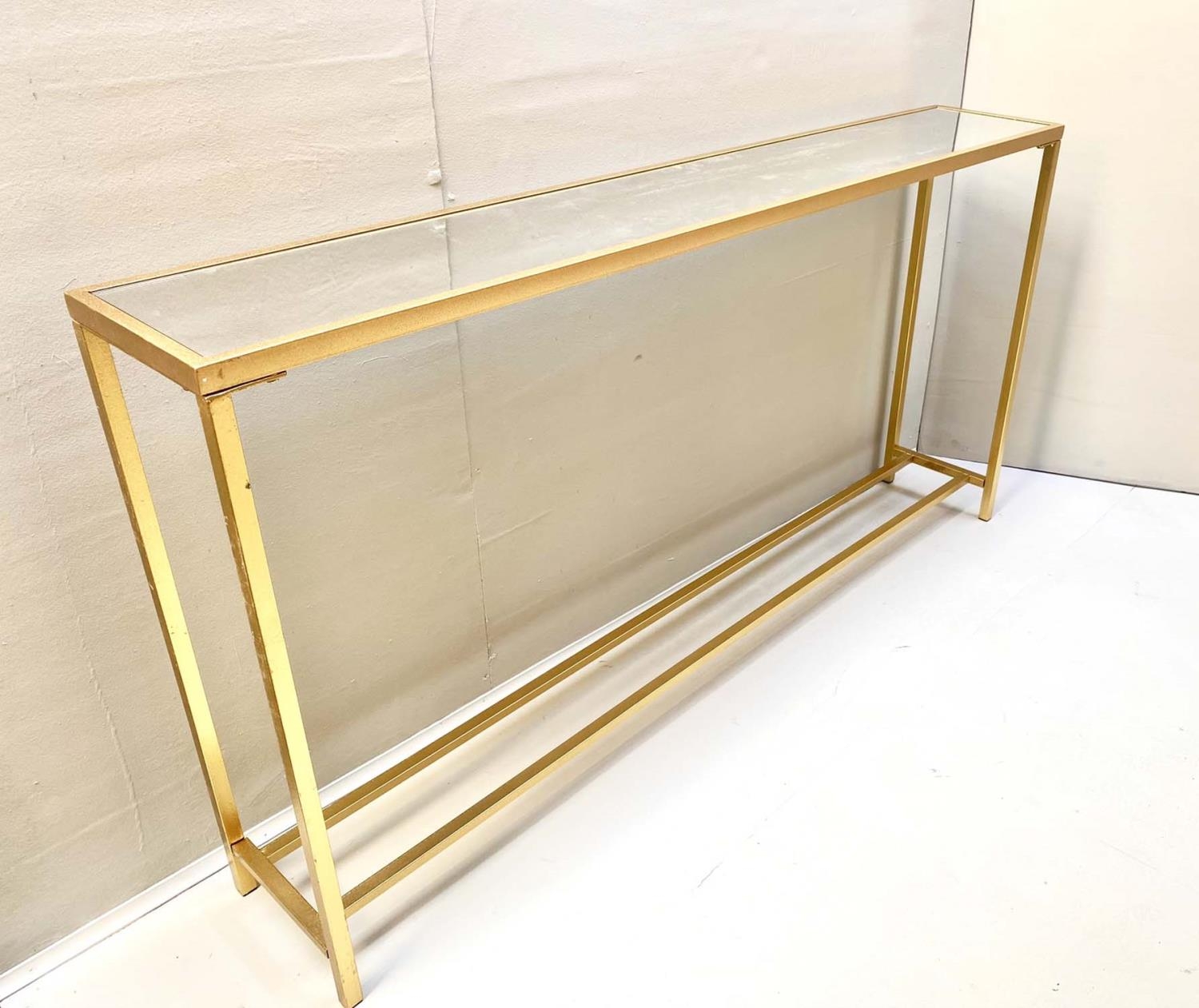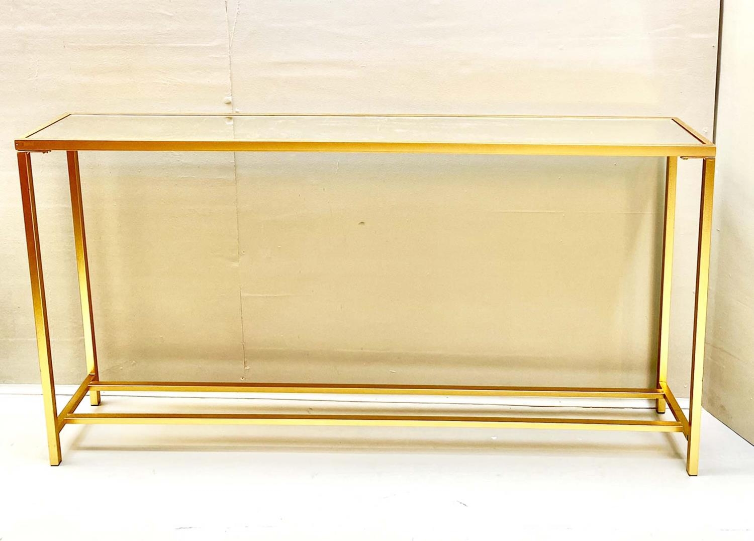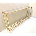 CONSOLE TABLE, gilt metal and glass, 79cm x 152cm x 25cm.