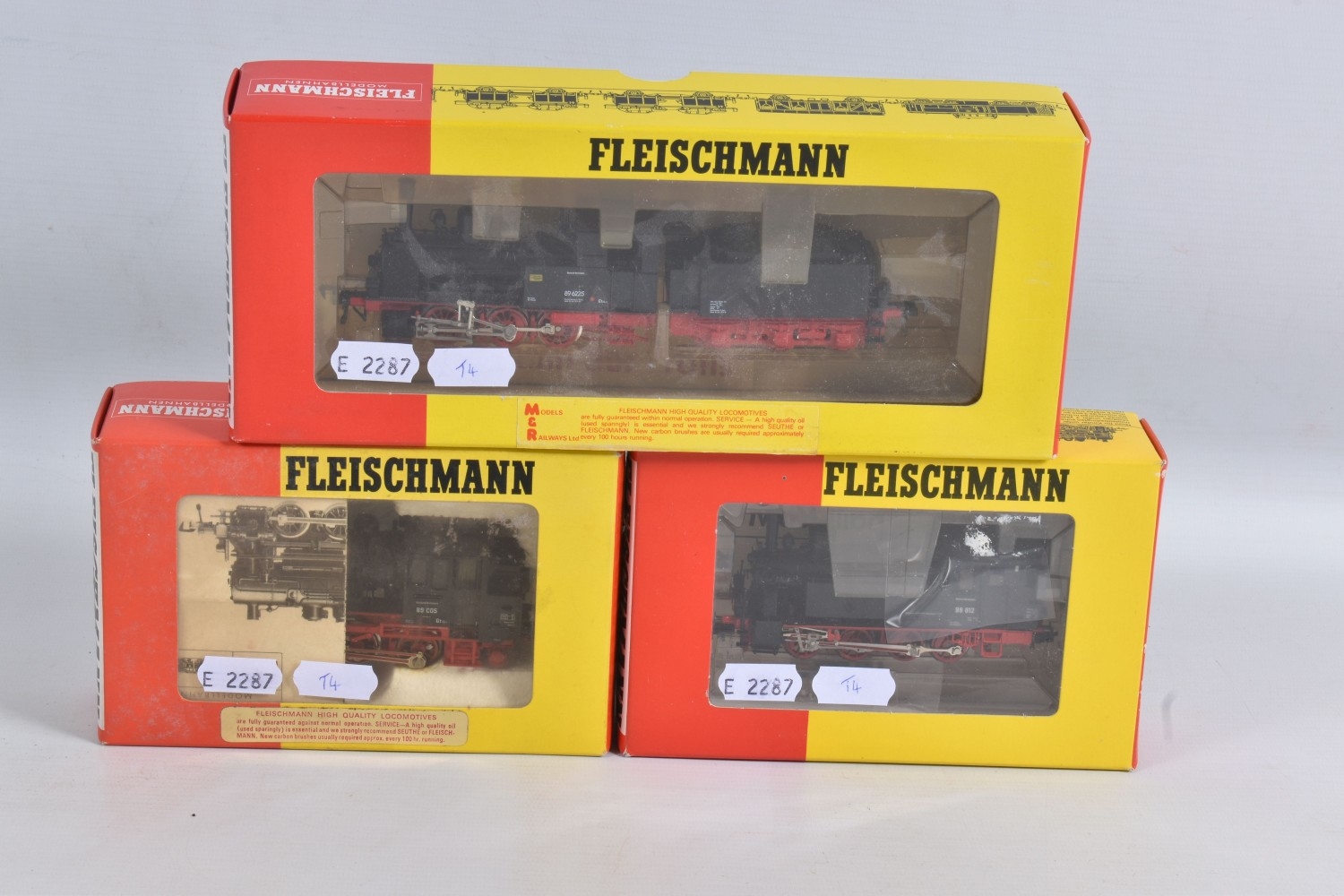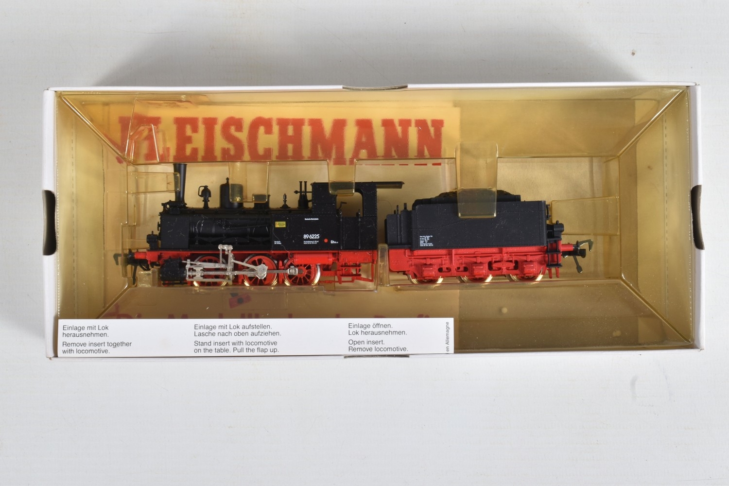 THREE BOXED FLEISCHMANN HO GAUGE LOCOMOTIVES, class BR89 Tank No.89 005 (4019), class BR98 Tank No.98 812 (4099) and class BR89 locomotive and tender No.89 6225 (4115), all in D.R. black and red livery, all appear complete and in very good condition, all with instructions, boxes complete and in fairly good condition with only minor marking and wear, one with yellowing to plastic insert