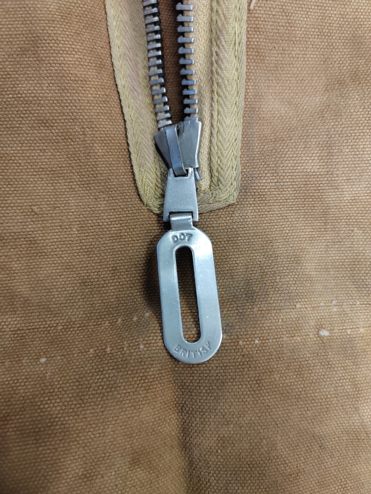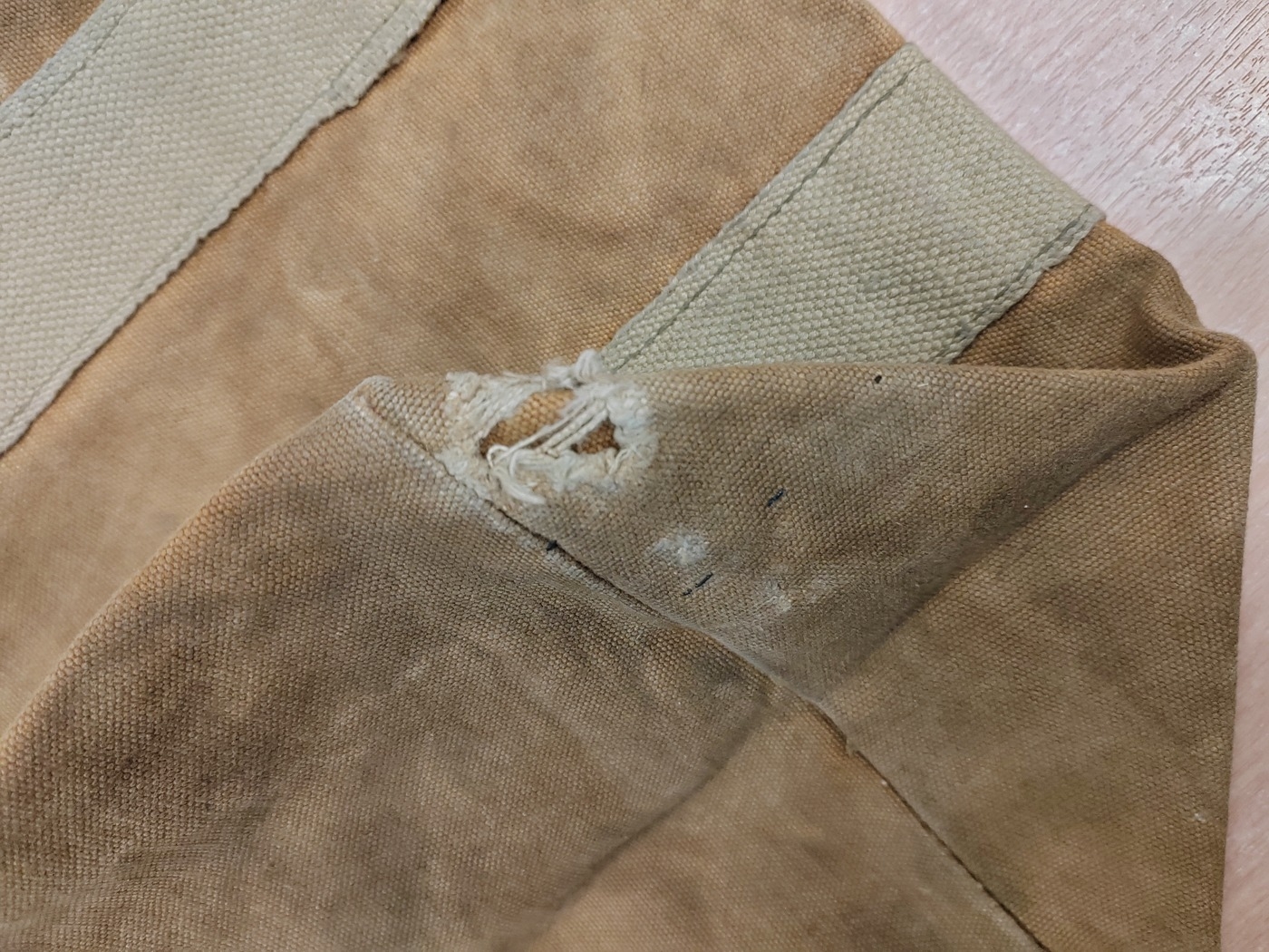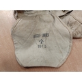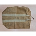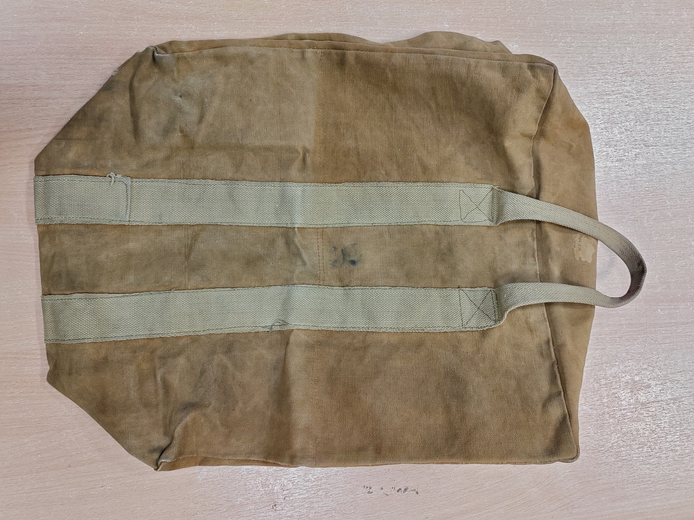 WWII RAF parachute bag with faded Air Ministry AM and crown markings, fastens with DOT brand zipper, general wear with small tear to bottom corner, does not have inner flaps overall good fine, plus RAF duffle kit bag, white with blue band, stamped RAF / 2575892, plus Baycliff Limited / crows foot / 1942 stamped on inner flap, apart from general dirt stains from use it is otherwise very fine. Qty 2 (½B)