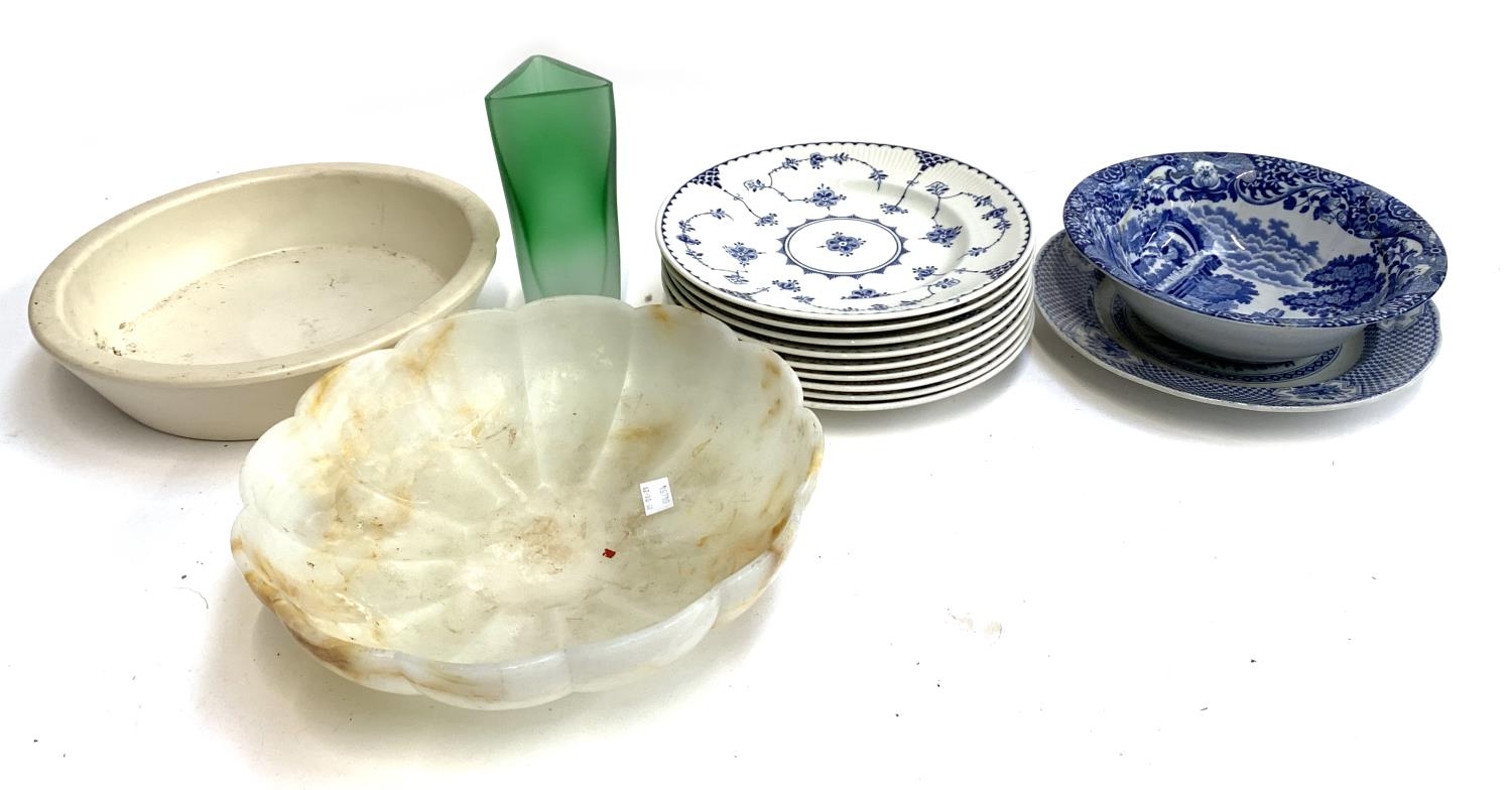 A quantity of Furnivals 'Denmark' dinner plates; together with an onyx fruit bowl, 30cmD etc