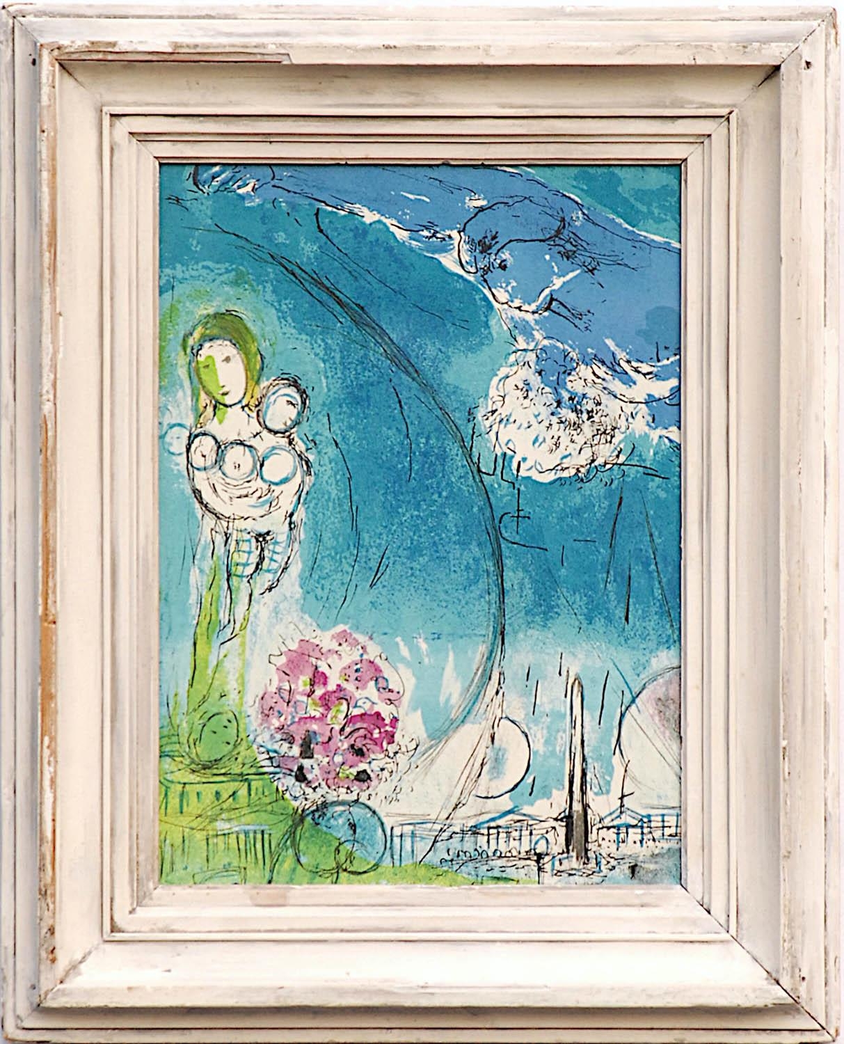 MARC CHAGALL 'Place de la Concorde and Eiffel Tower', 1952, original lithograph, printed by Mourlot, 32cm x 24cm, framed and glazed.