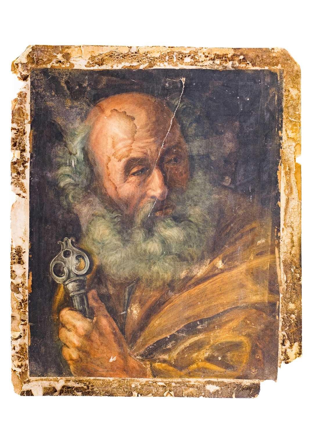 A 19th century portrait of St Peter. Watercolour on paper, 34.5cm x 28cm.