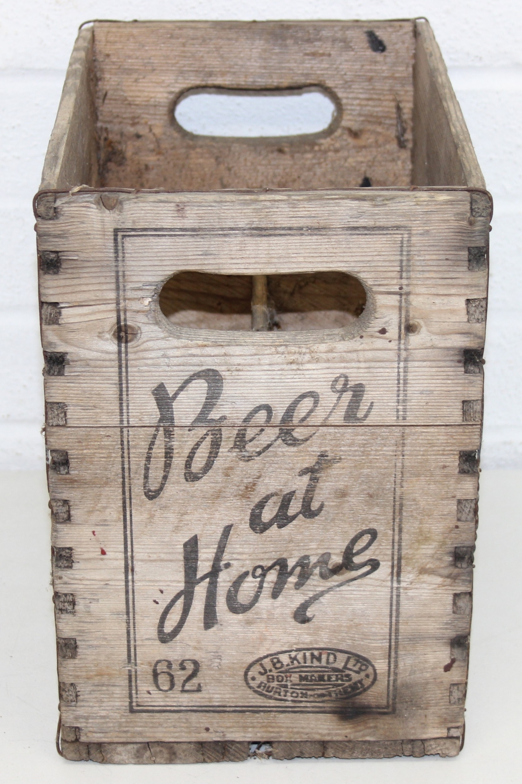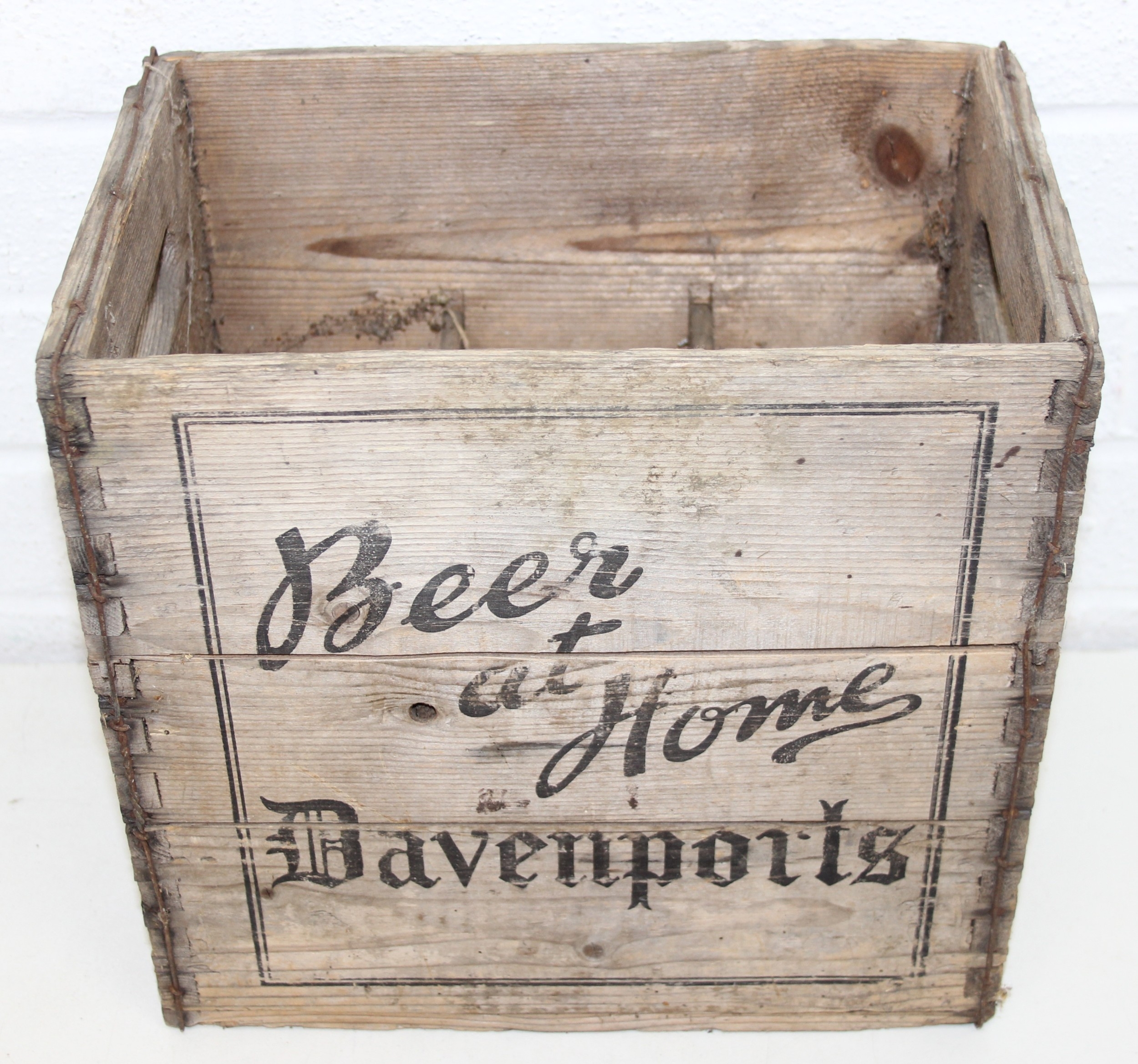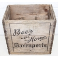 A vintage wooden Davenports 'Beer at Home' advertising bottle crate, 30cm x 20cm x 30cm