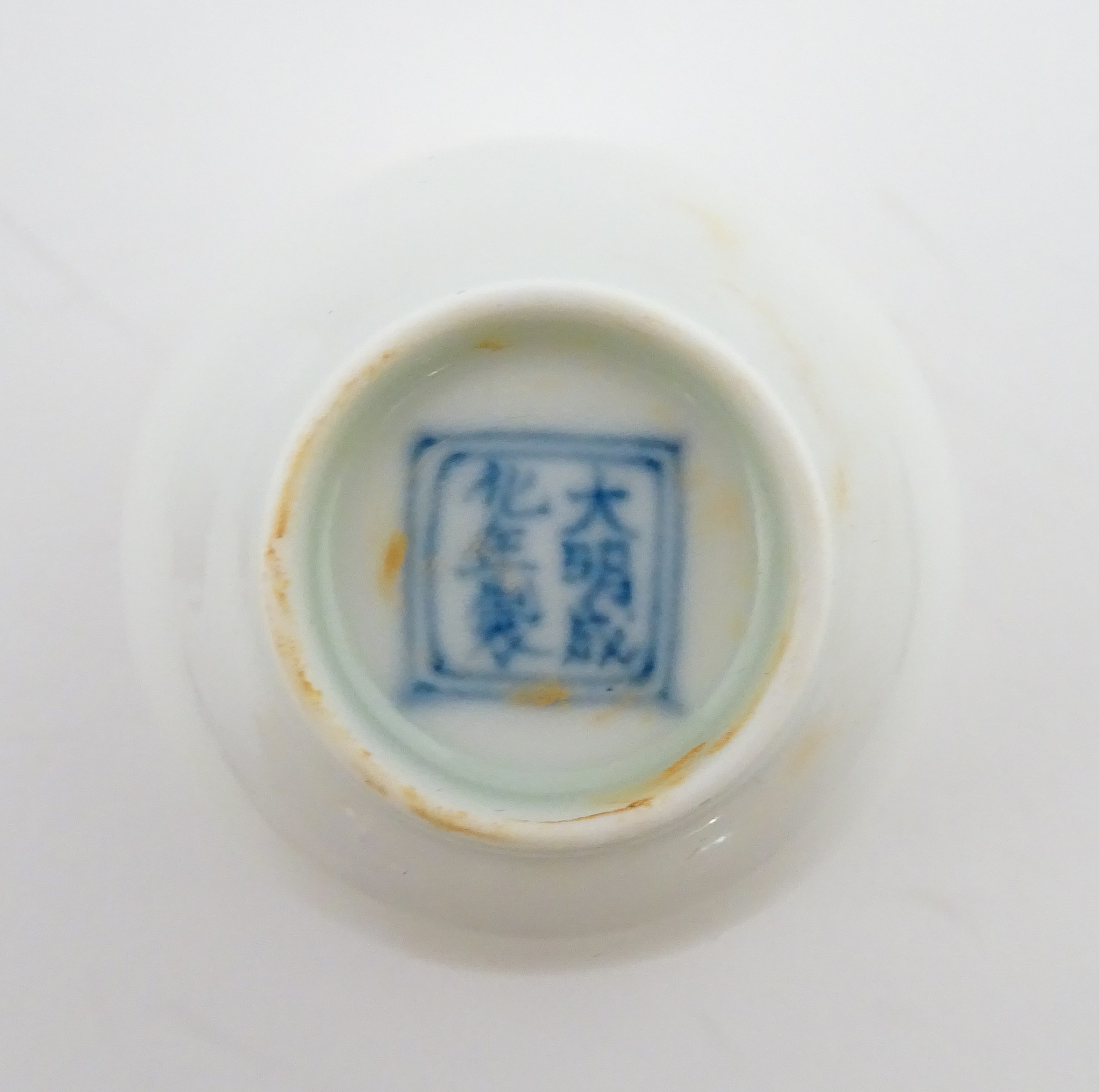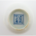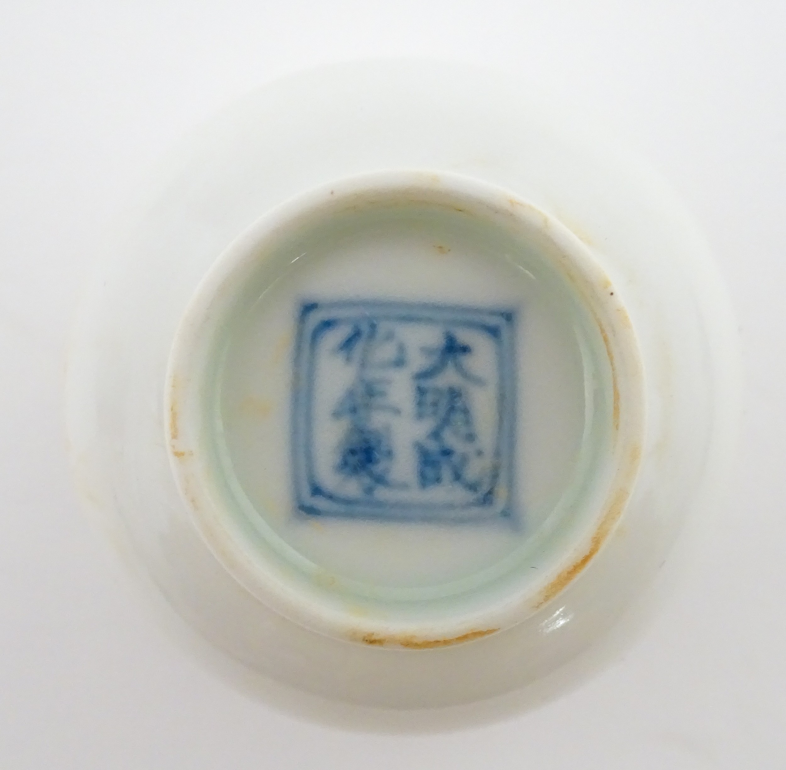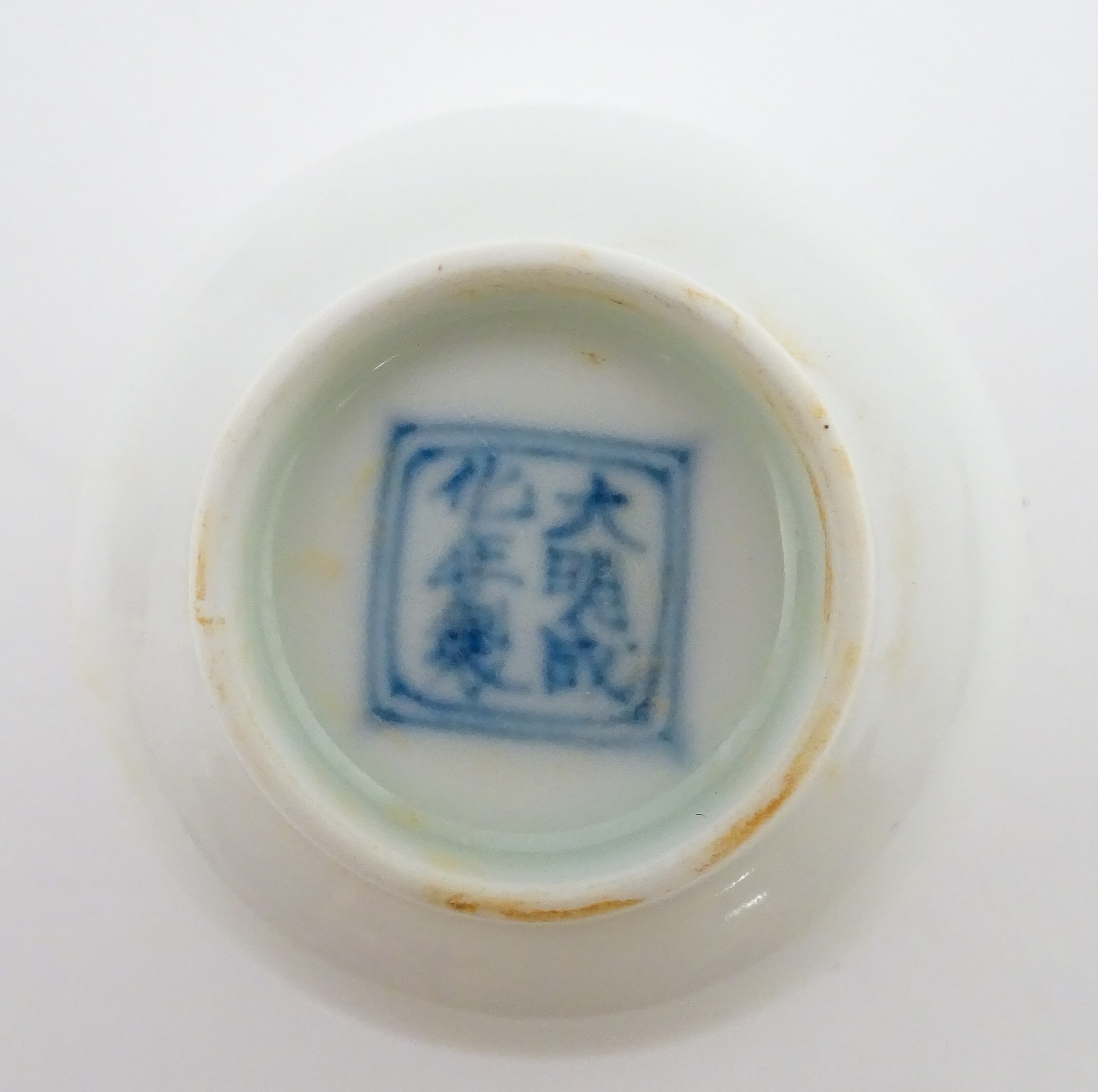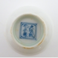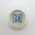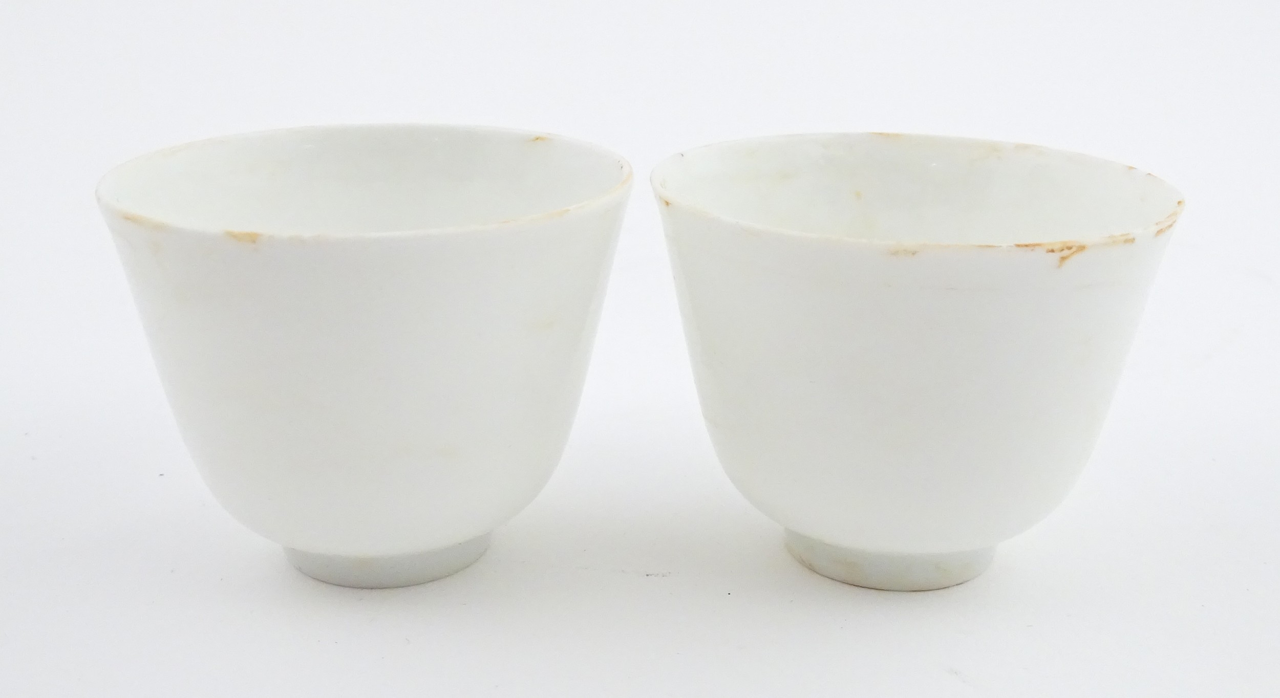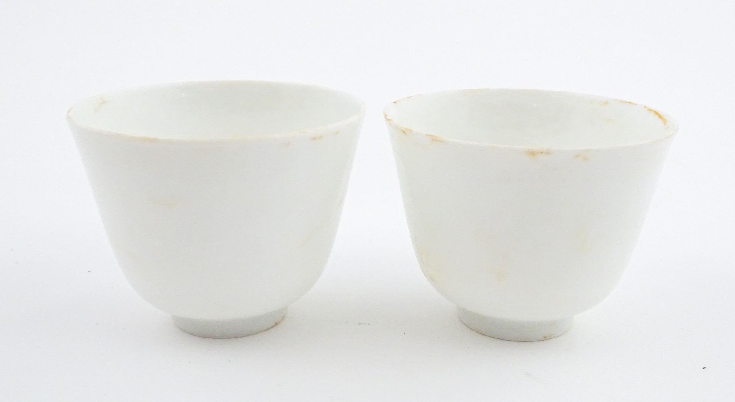 A pair of Chinese wine cups with floral detail. Character marks under. Approx. 2" high (2)