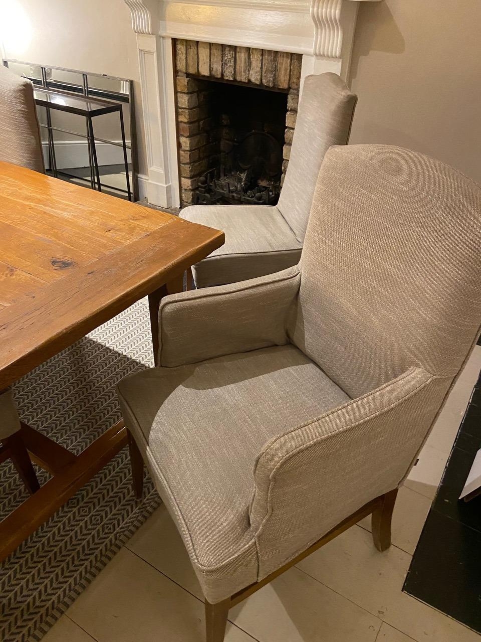 A good set of eight upholstered Dining Chairs in beige fabric.