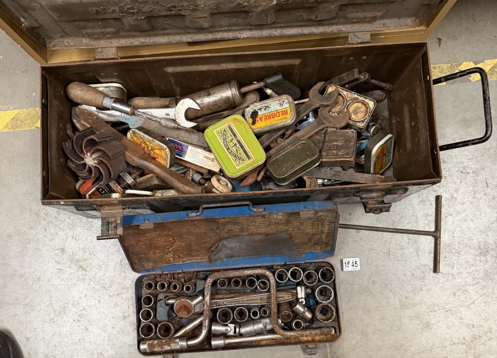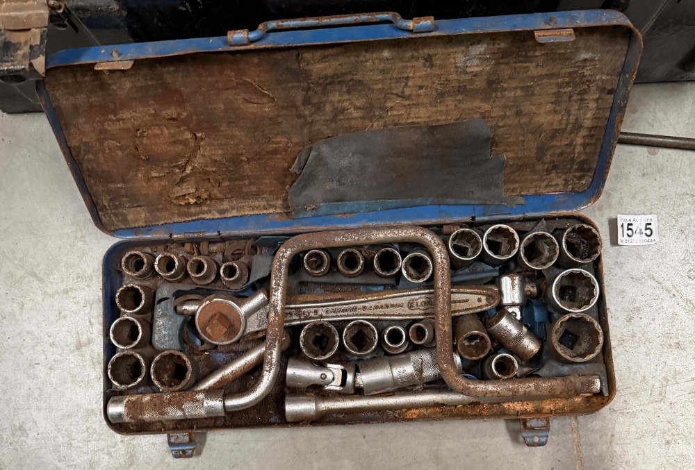 An Elora socket set & A 1954 ammo box with tools