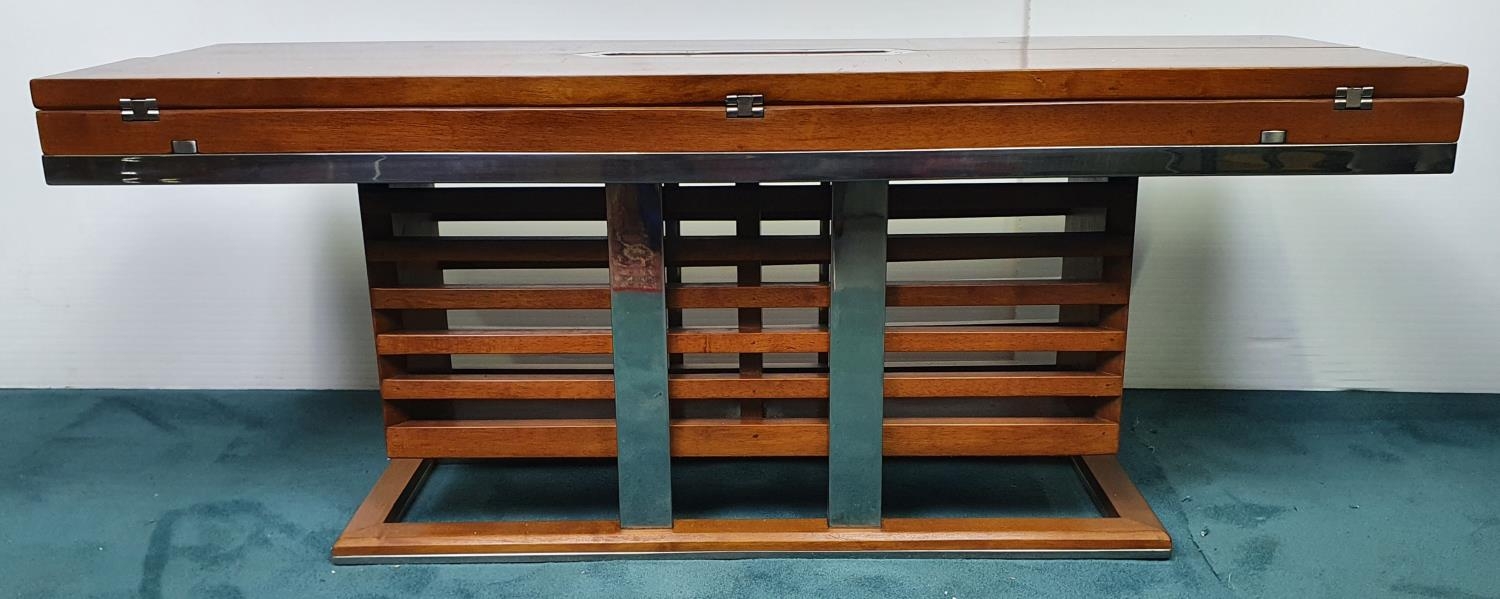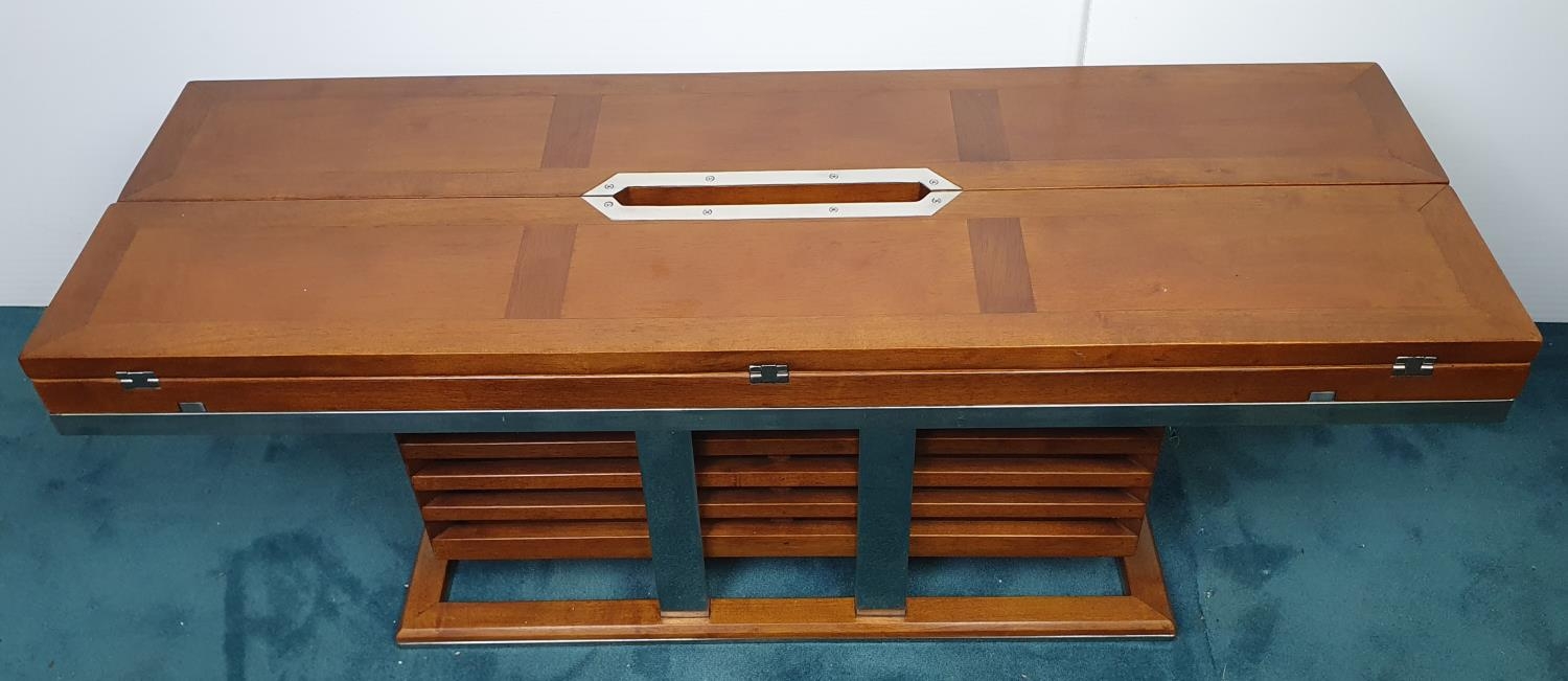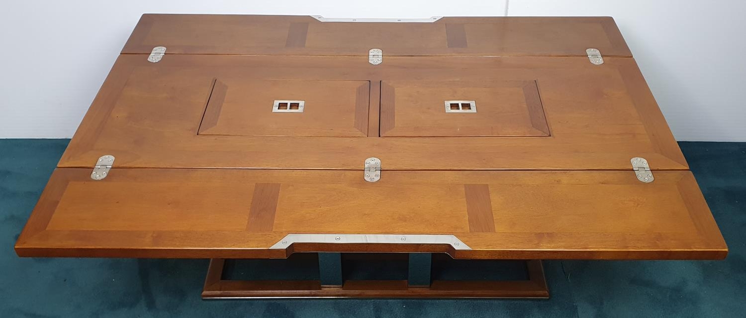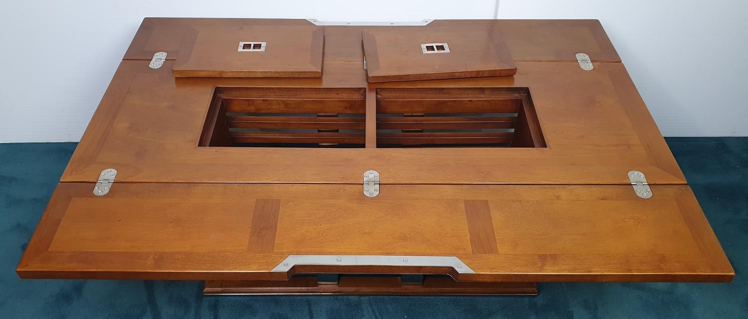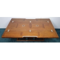 Nautical themed coffee table in the Art Deco style with two fold out leaves and internal drinks compartment {43.2 cm H x 115 cm W x 40 cm to 80 cm D}.
