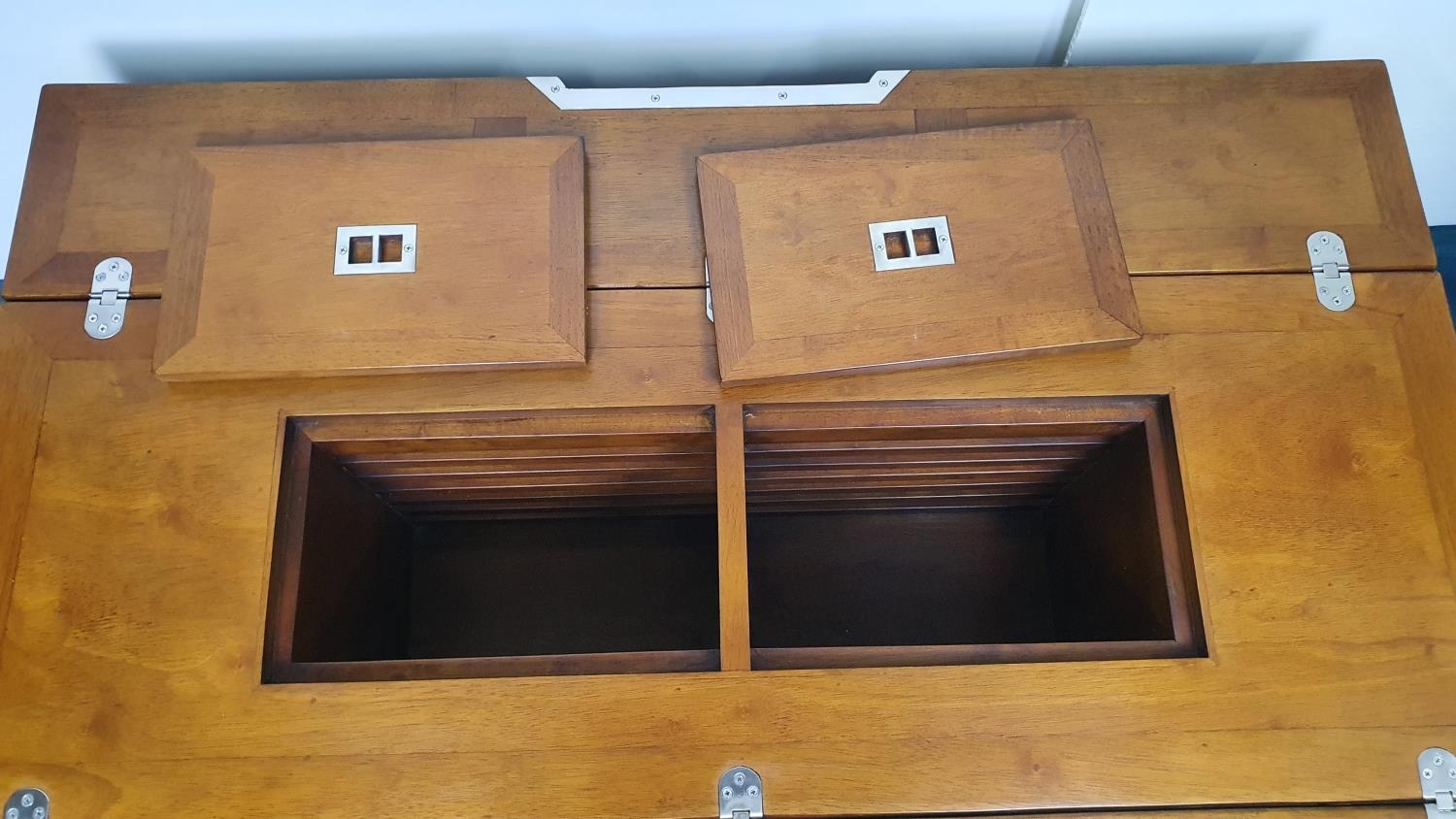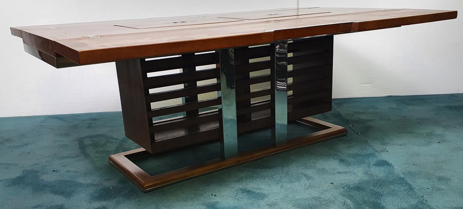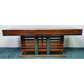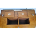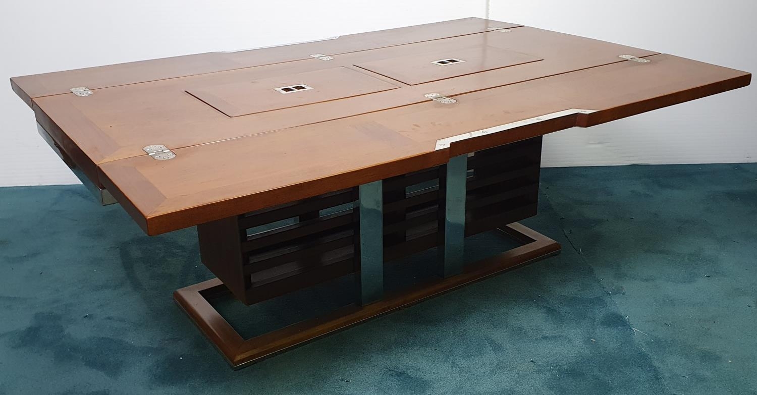 Nautical themed coffee table in the Art Deco style with two fold out leaves and internal drinks compartment {43.2 cm H x 115 cm W x 40 cm to 80 cm D}.