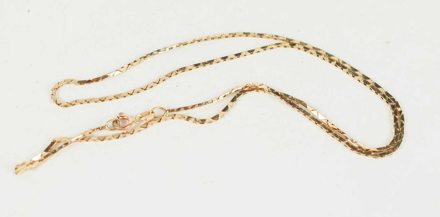 A 9ct gold necklace, composed of flat triangular shaped links, with hoop clasp, 3.97g.
