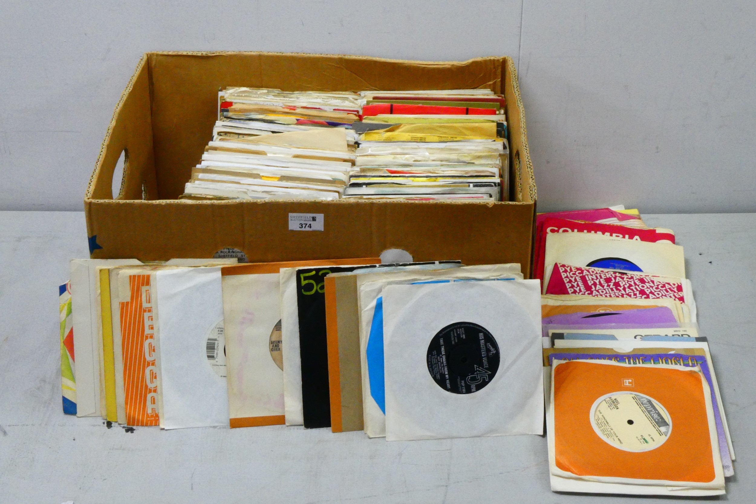 7" Singles, approximately 250 by artists including Moody Blues, Bryan Adams, Genesis, Duane Eddy, Zombies, Sandie Shaw, Righteous Brothers, Mary Hopkin, Steve Gibbons, Roxy Music, ELO, Ivy League, Beatles, The Move, Manfred Mann, and many more from the 60s.