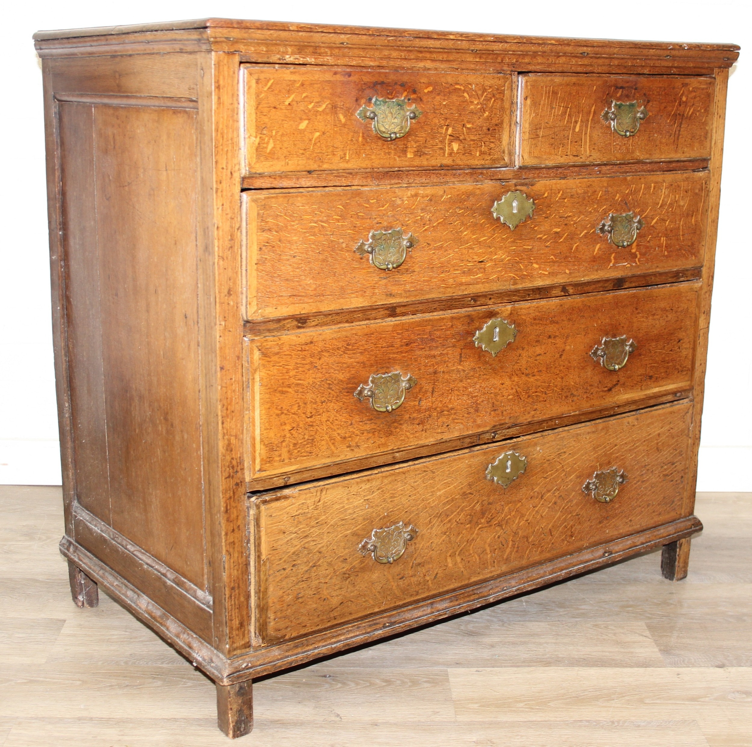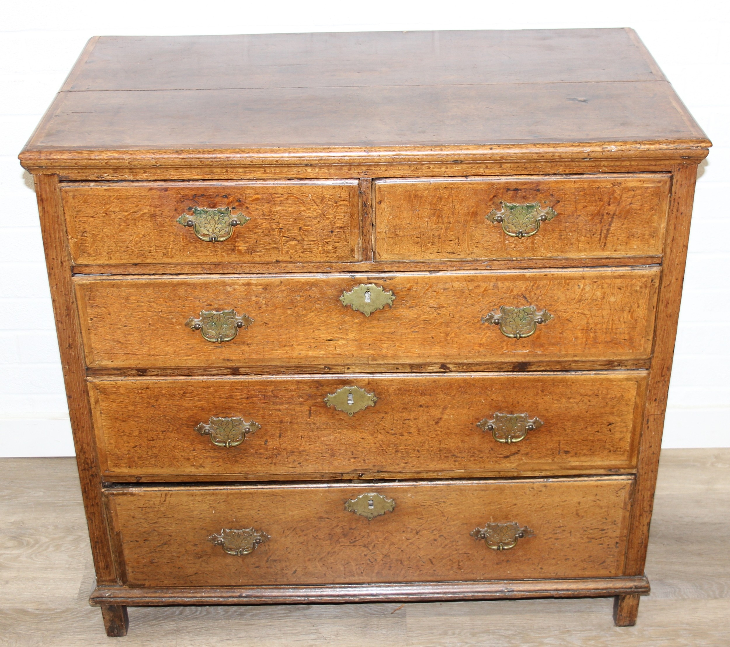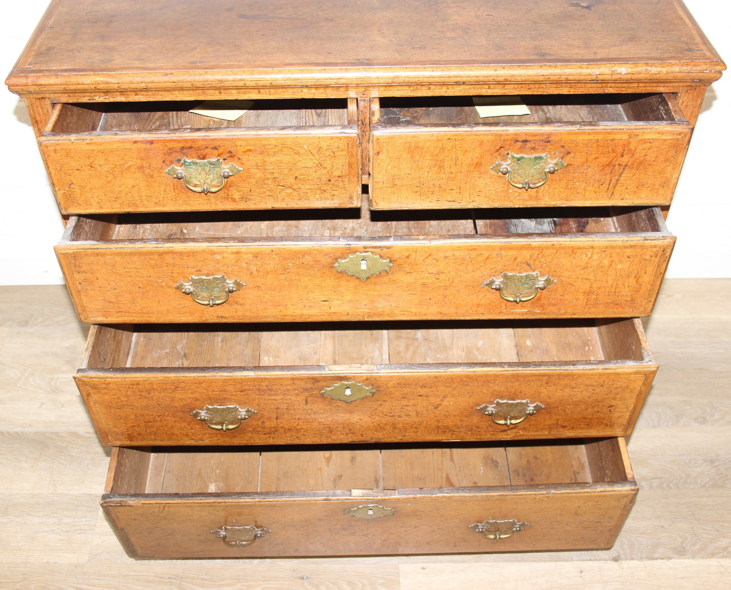 A Georgian oak two over three chest of drawers with brass fittings, likely 18th century, 95cm x 53cm x 91cm