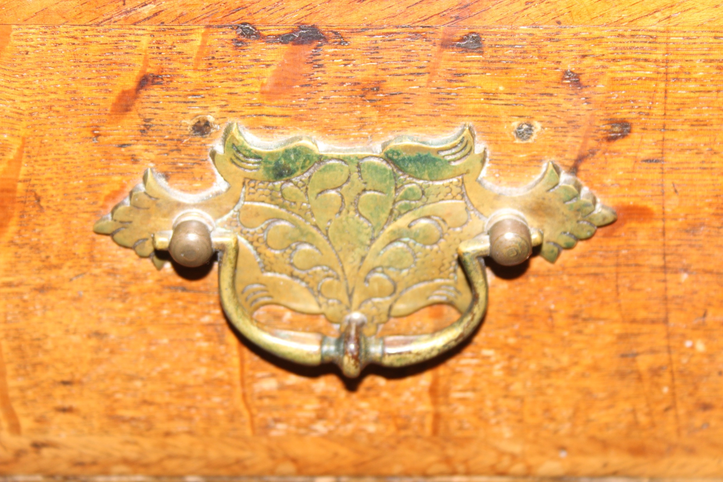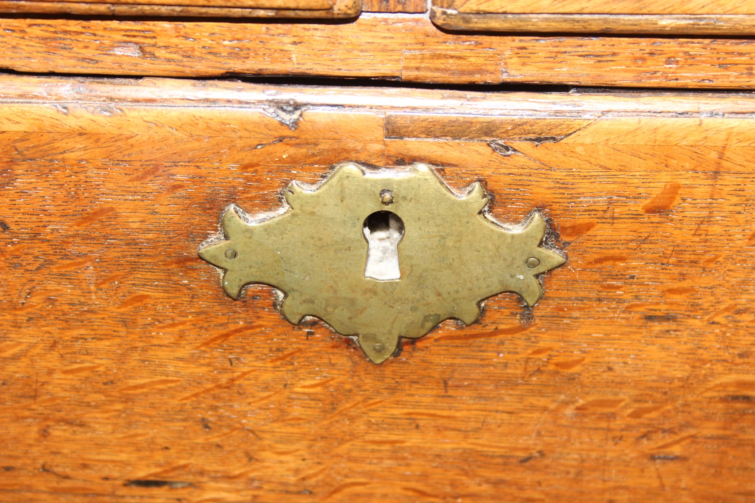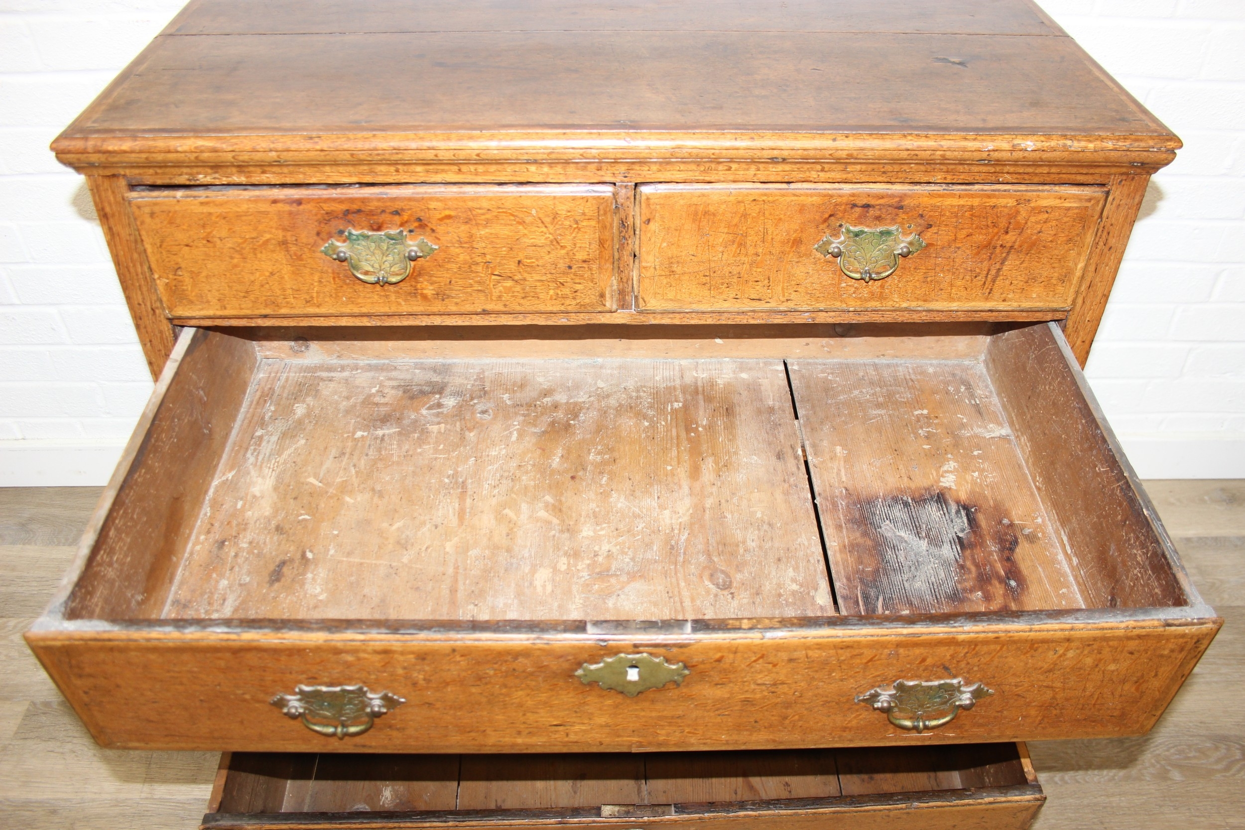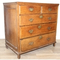 A Georgian oak two over three chest of drawers with brass fittings, likely 18th century, 95cm x 53cm x 91cm