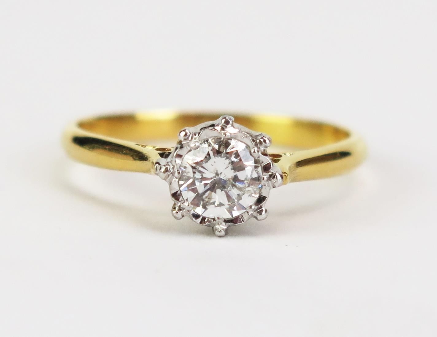 An 18ct White Gold and Diamond Solitaire Ring, 43mm stone illusion set stone, import marks, size N.5, 2.58g