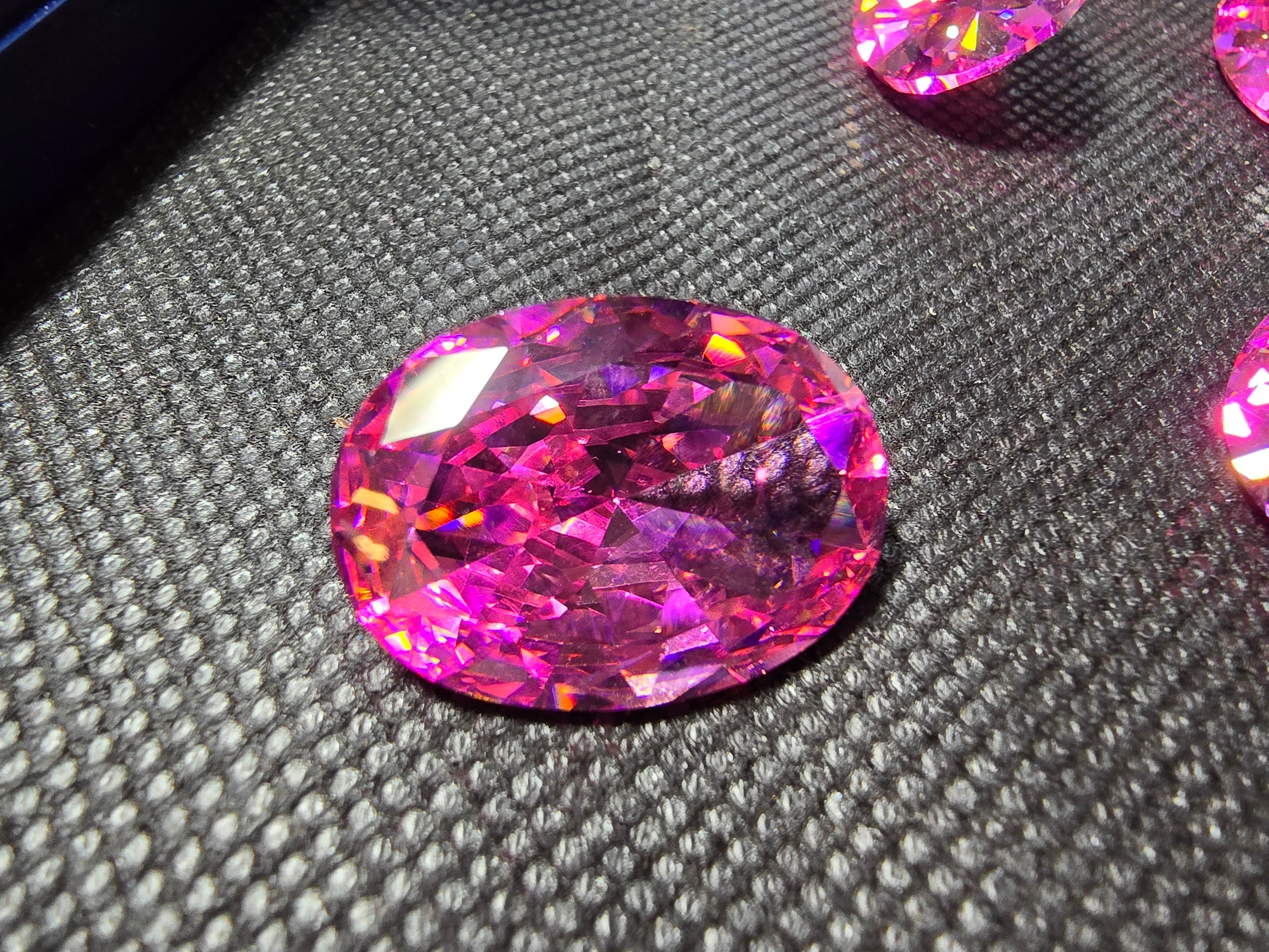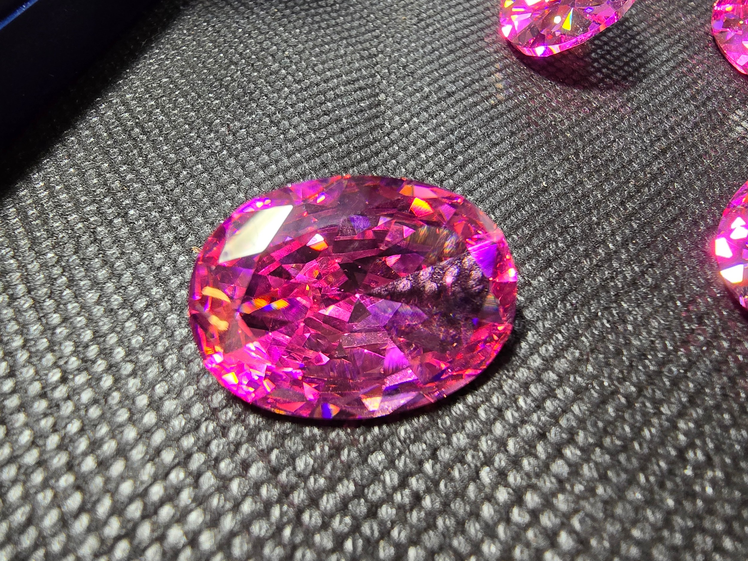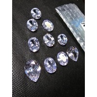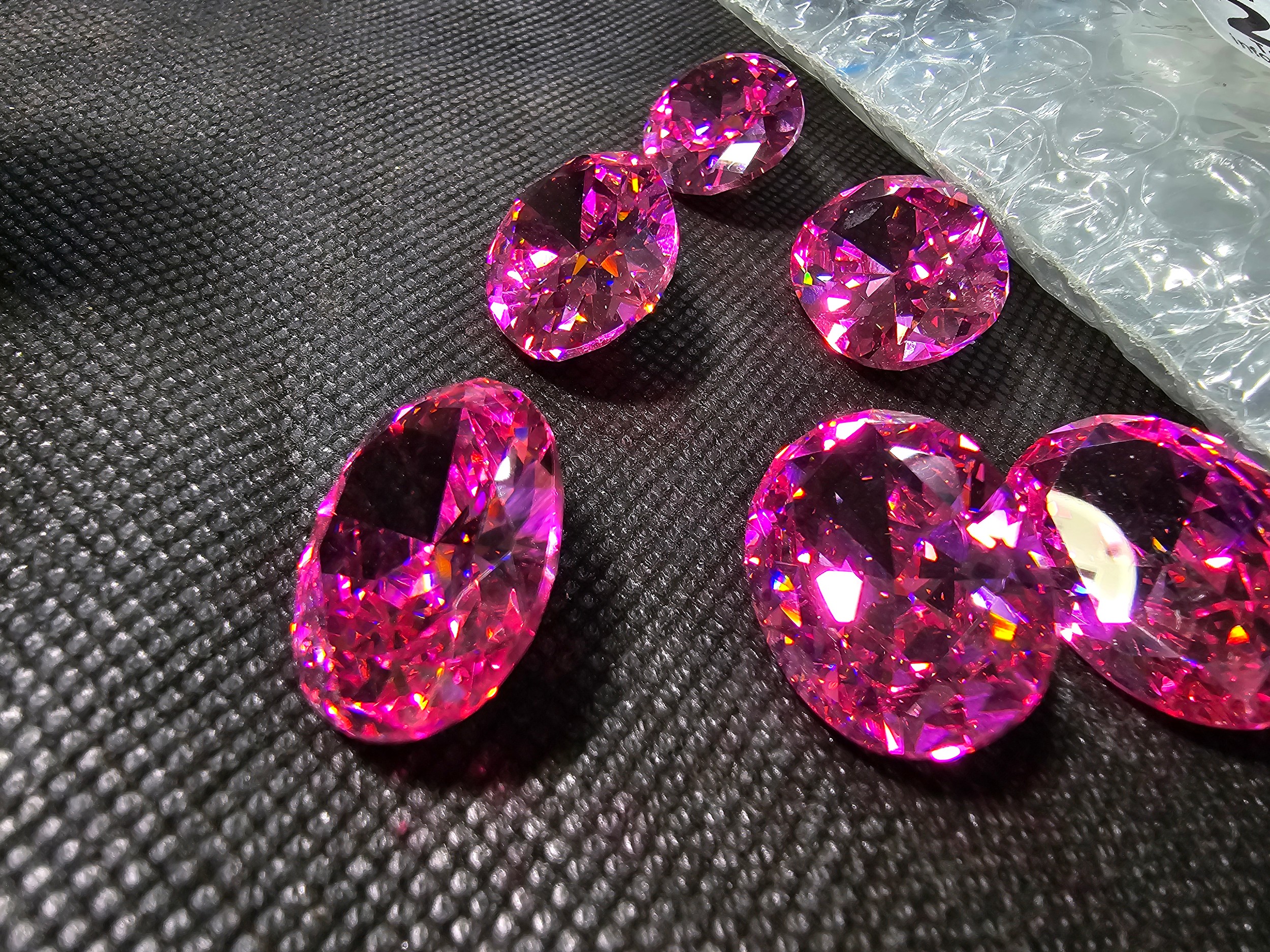 A large collection of 6x large pink faceted crystal glass stones which are imitation sapphires. The light shines through the stones beautifully and would be ideal to set into jewellery. Each stone is 25mm x 20mm