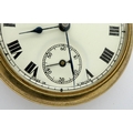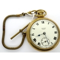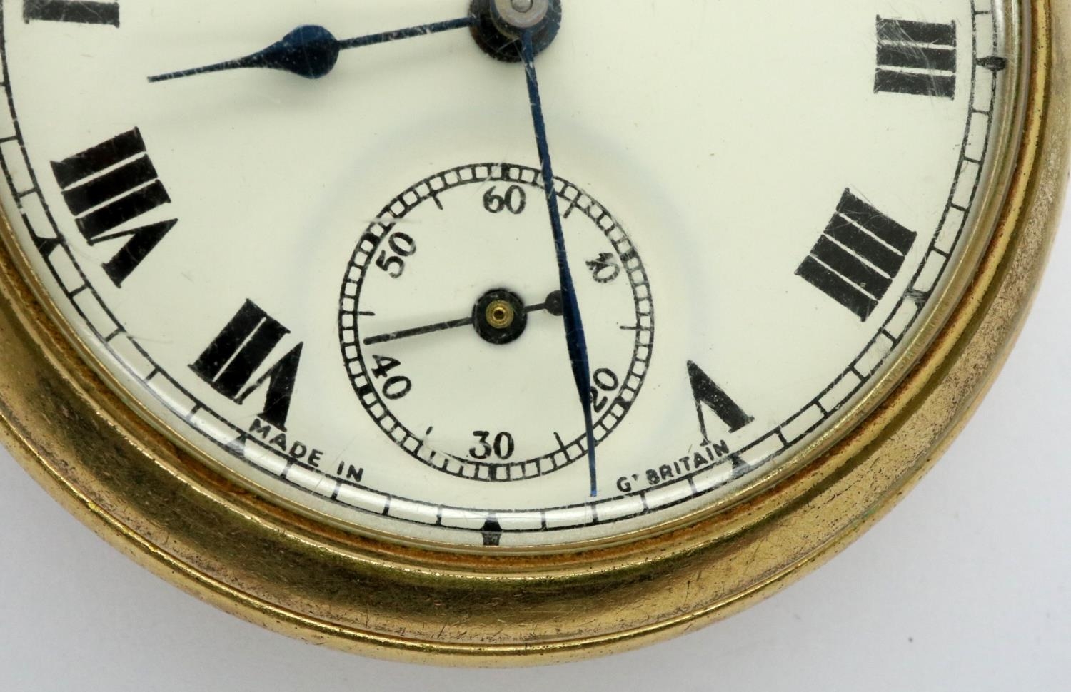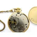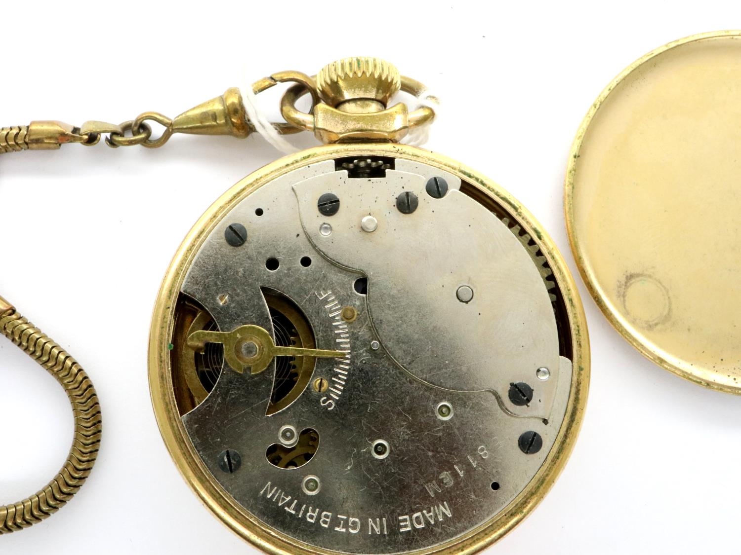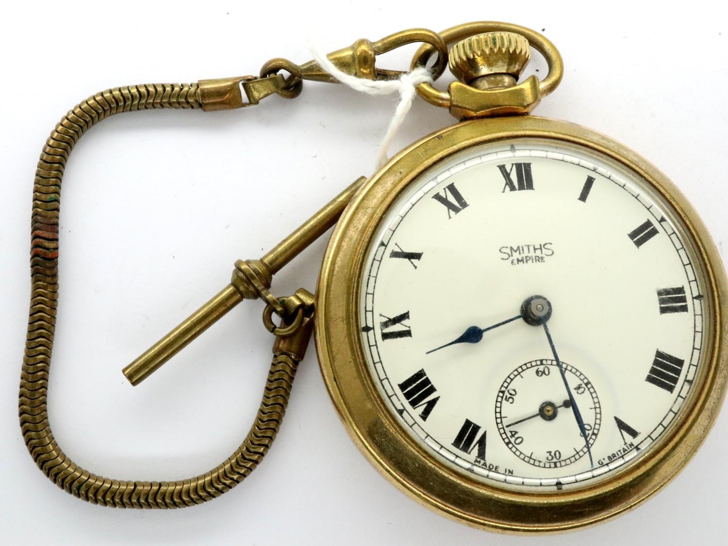 Smiths: Empire crown wind gold plated pocket watch on a T-bar chain, chain L: 15 cm, D: 45 mm, working at lotting. P&P Group 1 (£14+VAT for the first lot and £1+VAT for subsequent lots)