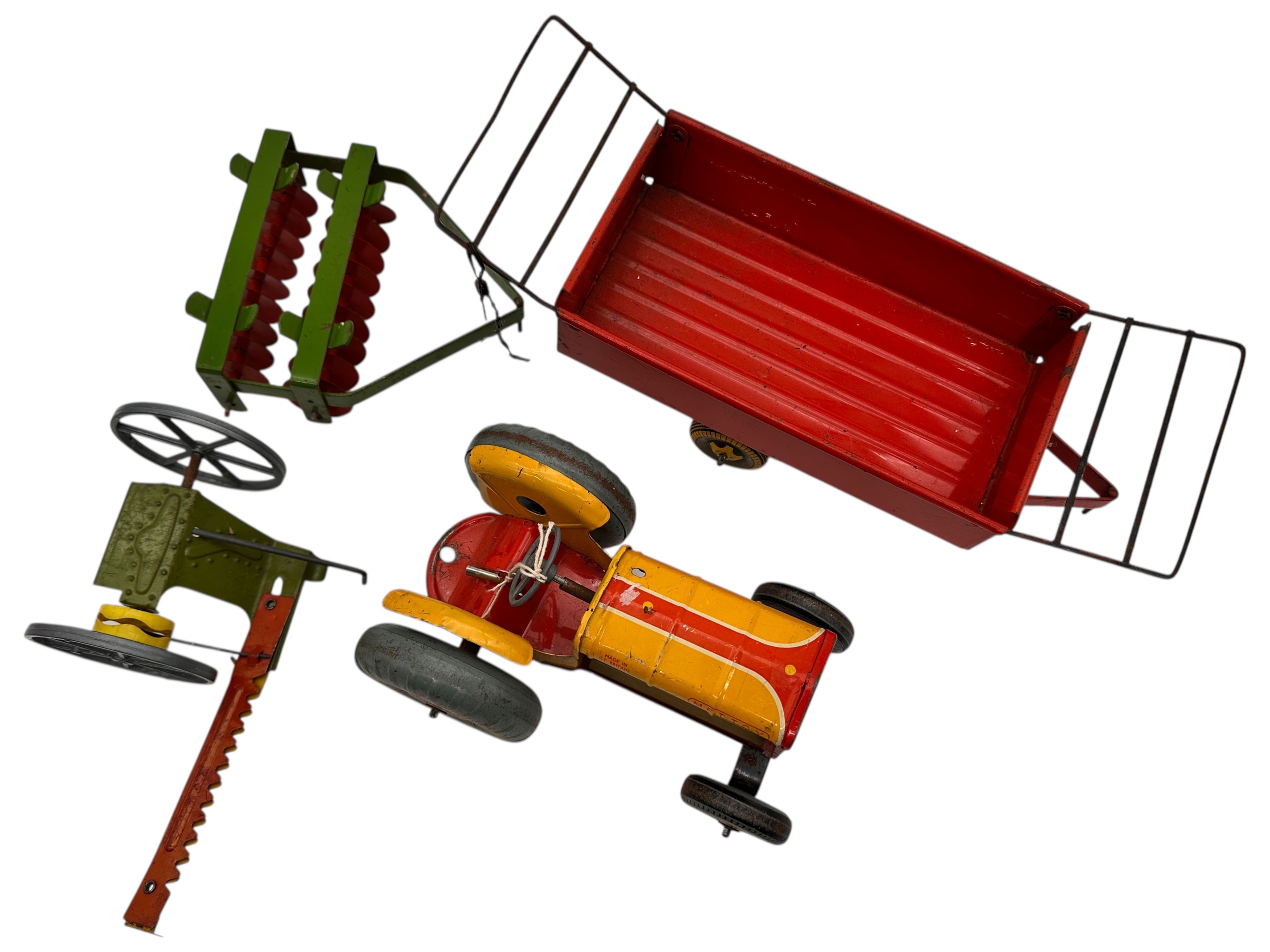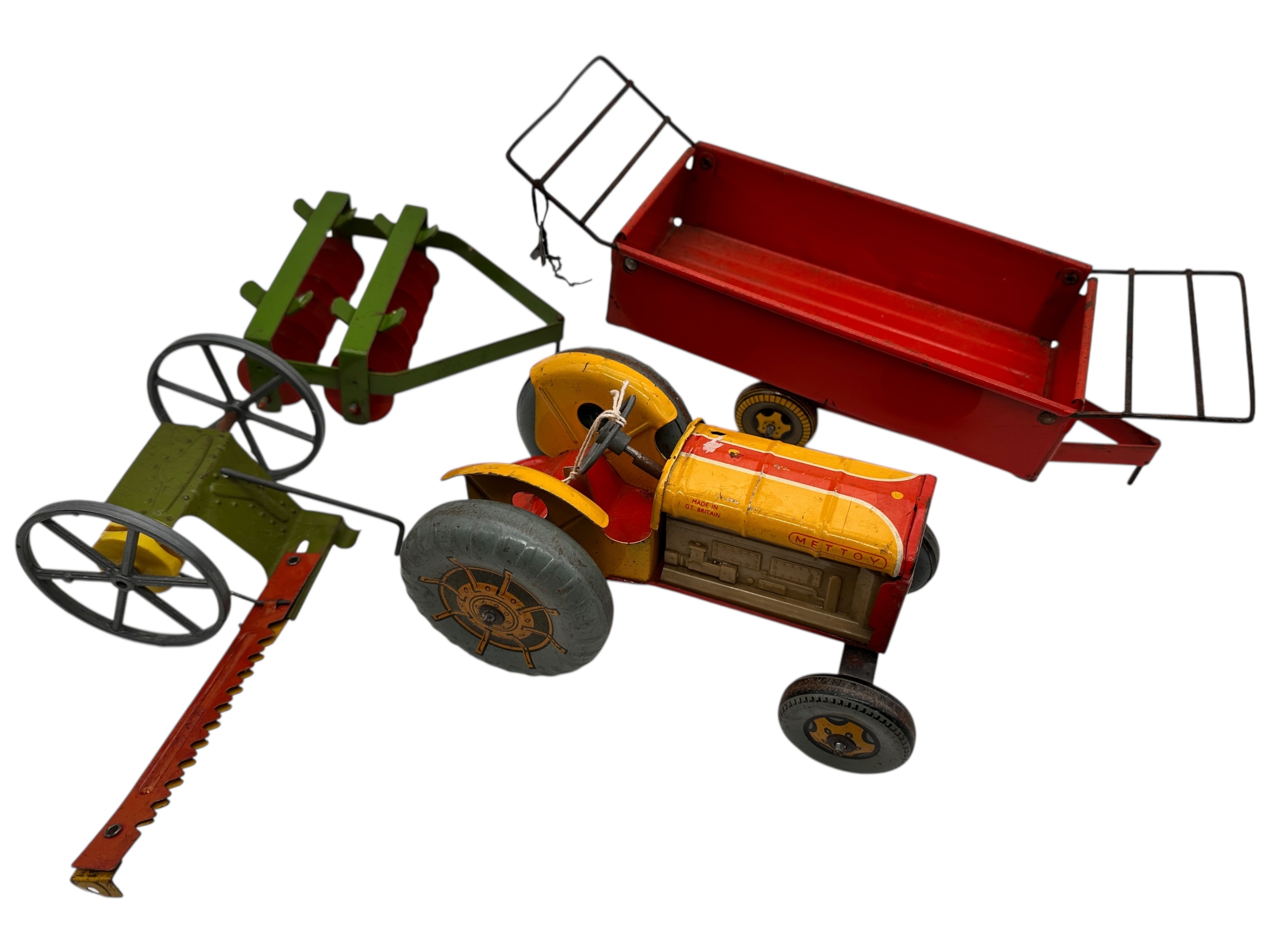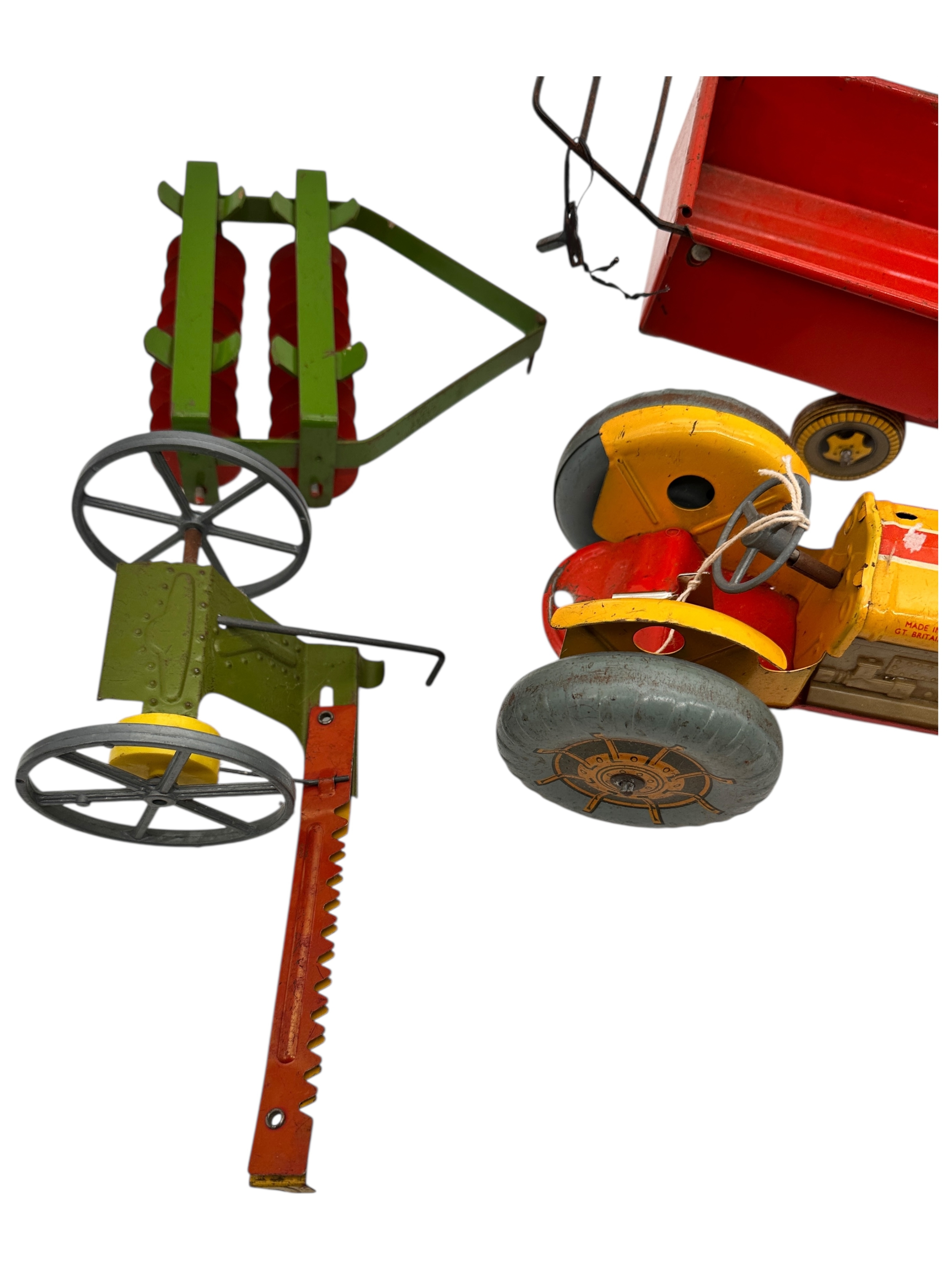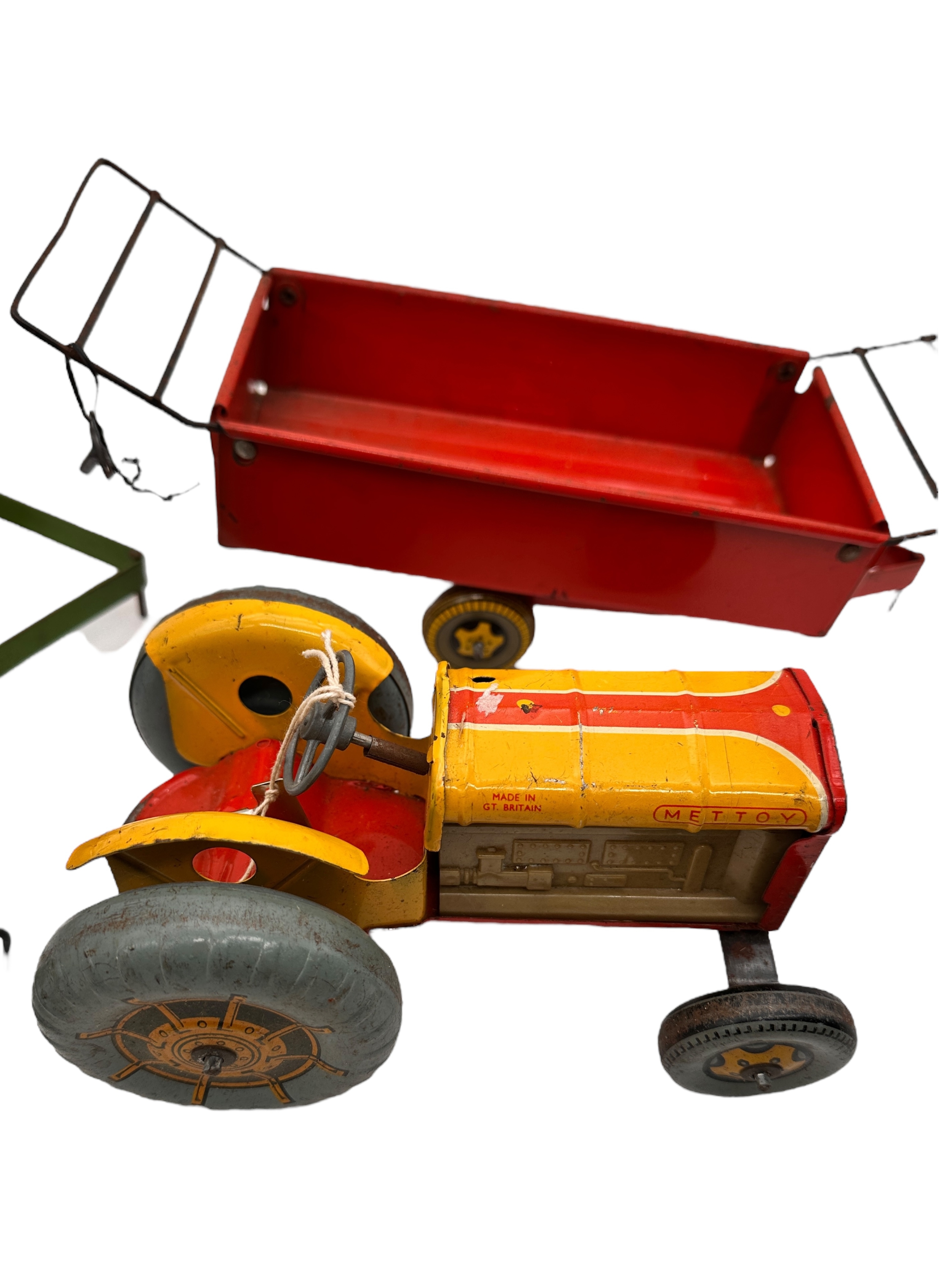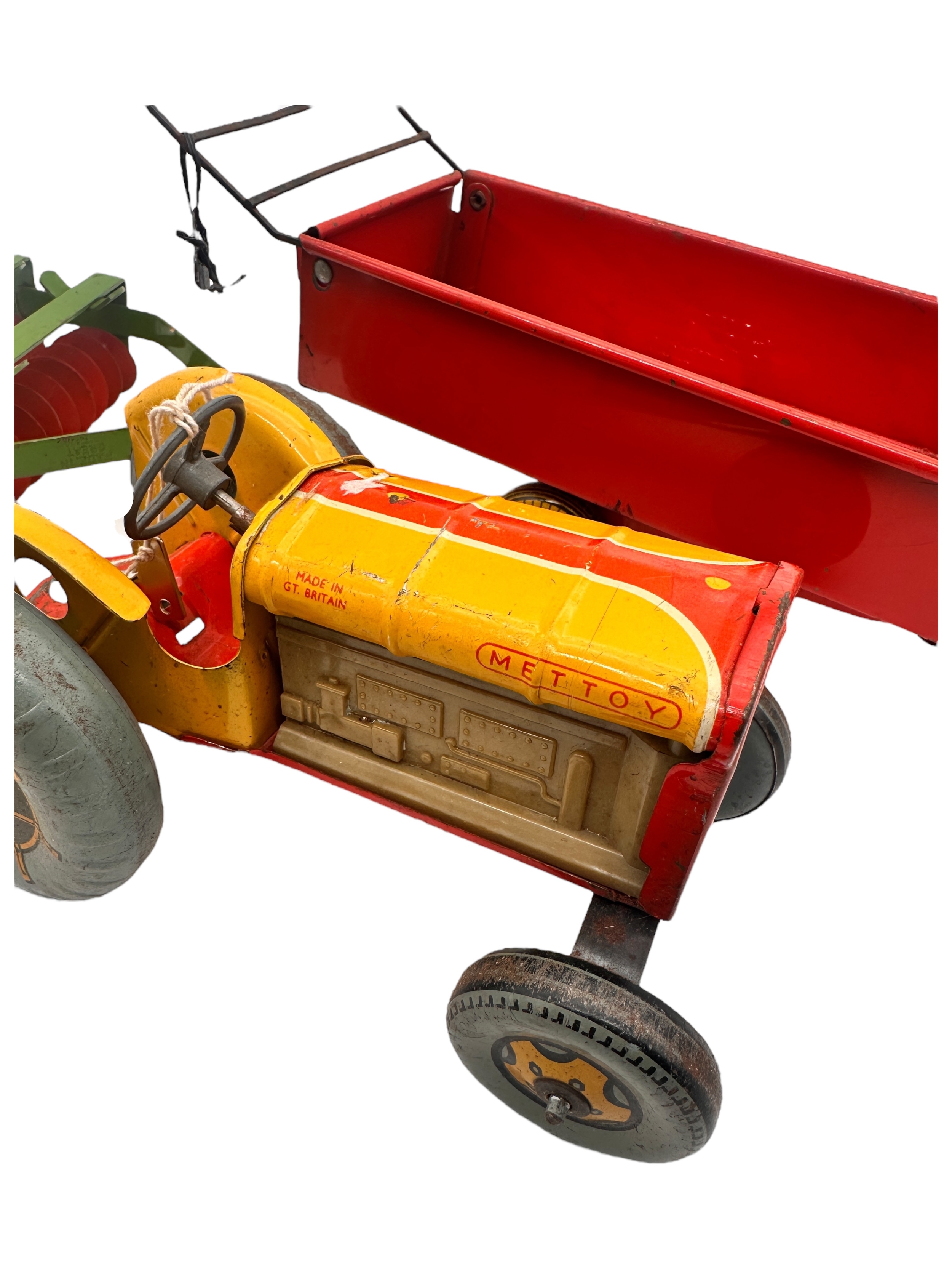 Mettoy Tinplate Clockwork Tractor Toy with Accessories - working