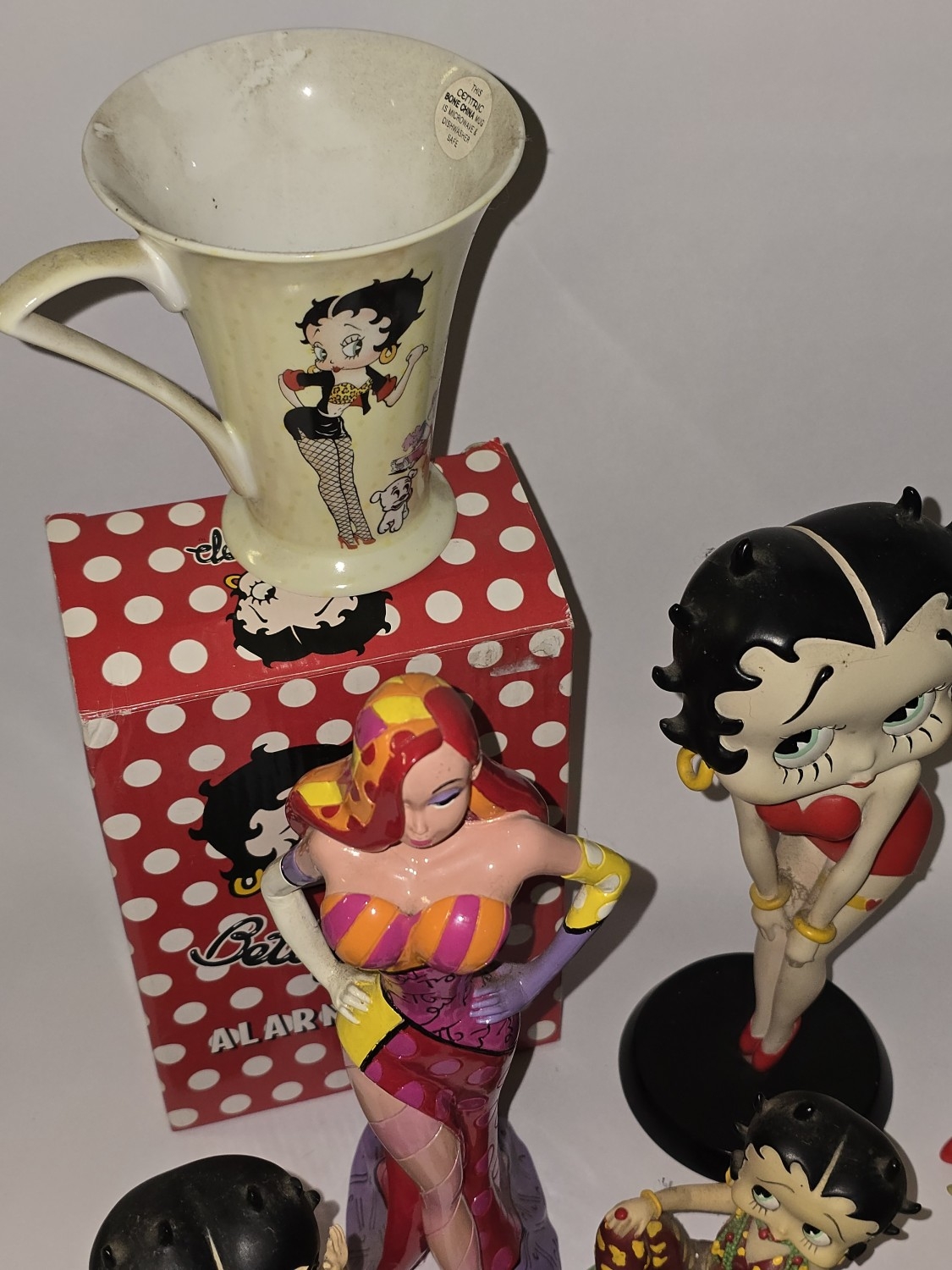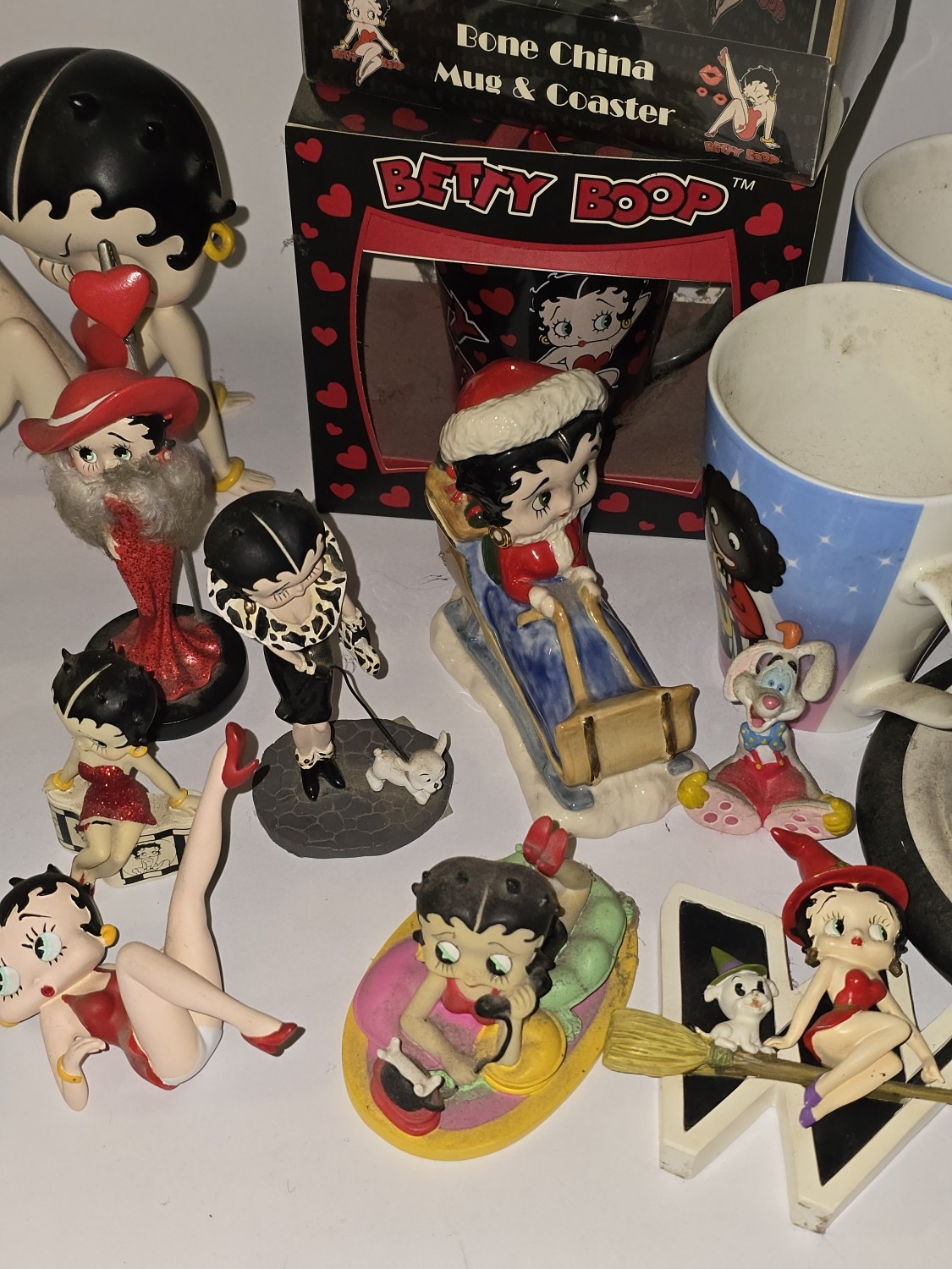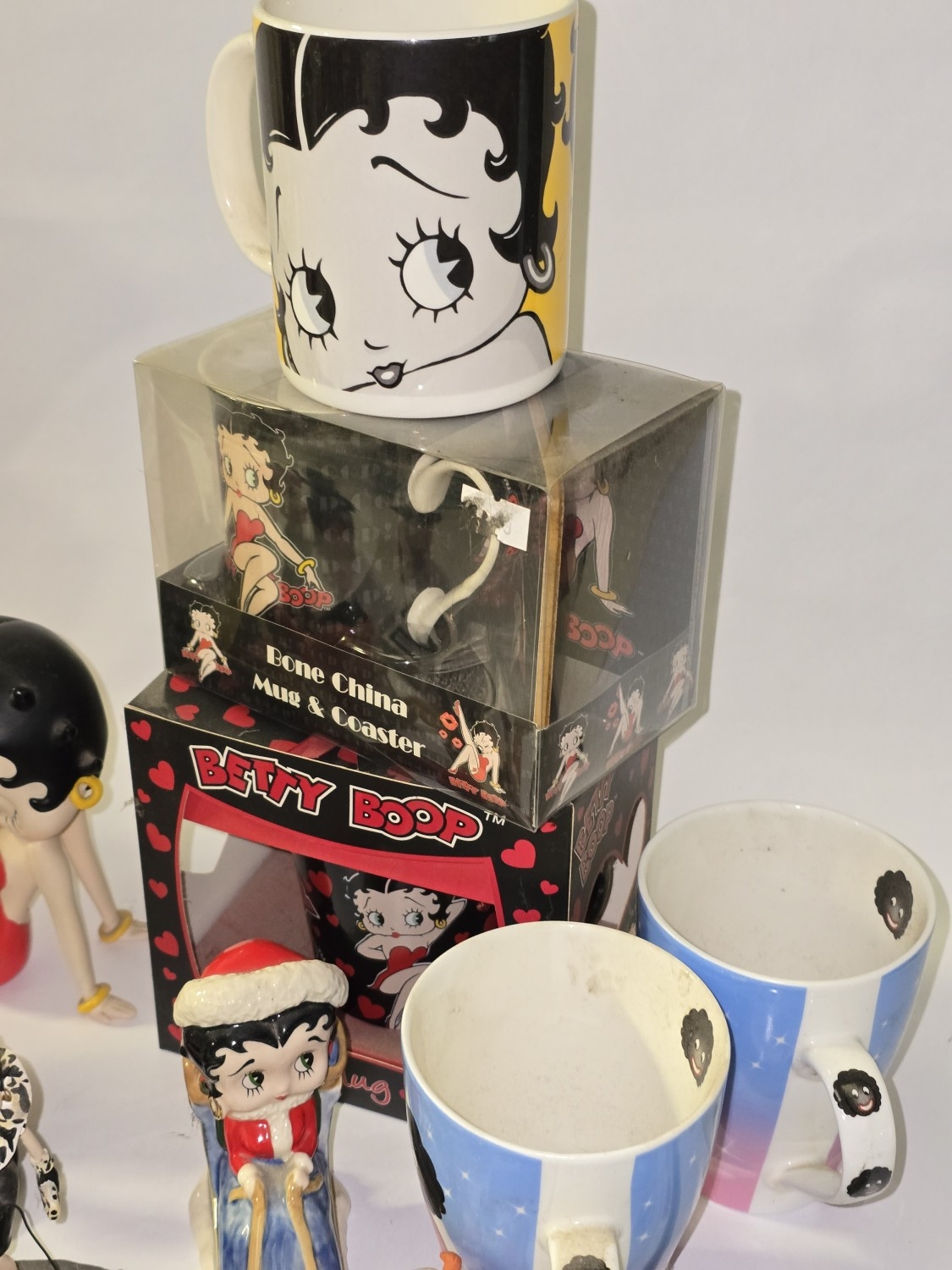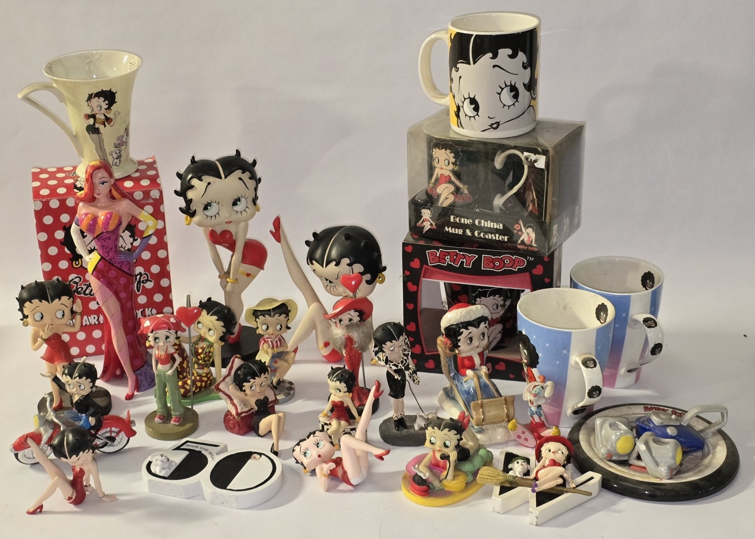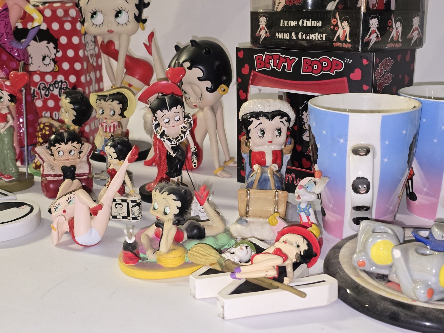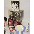 Quantity of mostly Betty Boop related collectables to include figurines, alarm clock, mug sets etc.