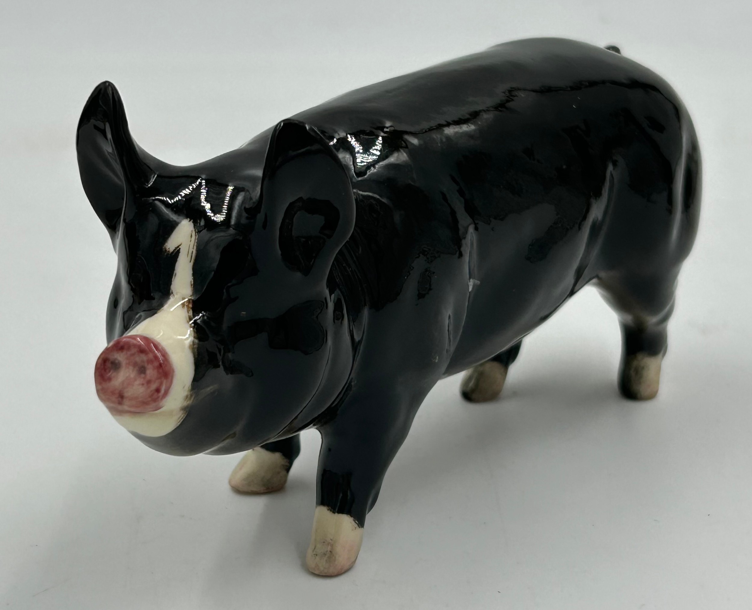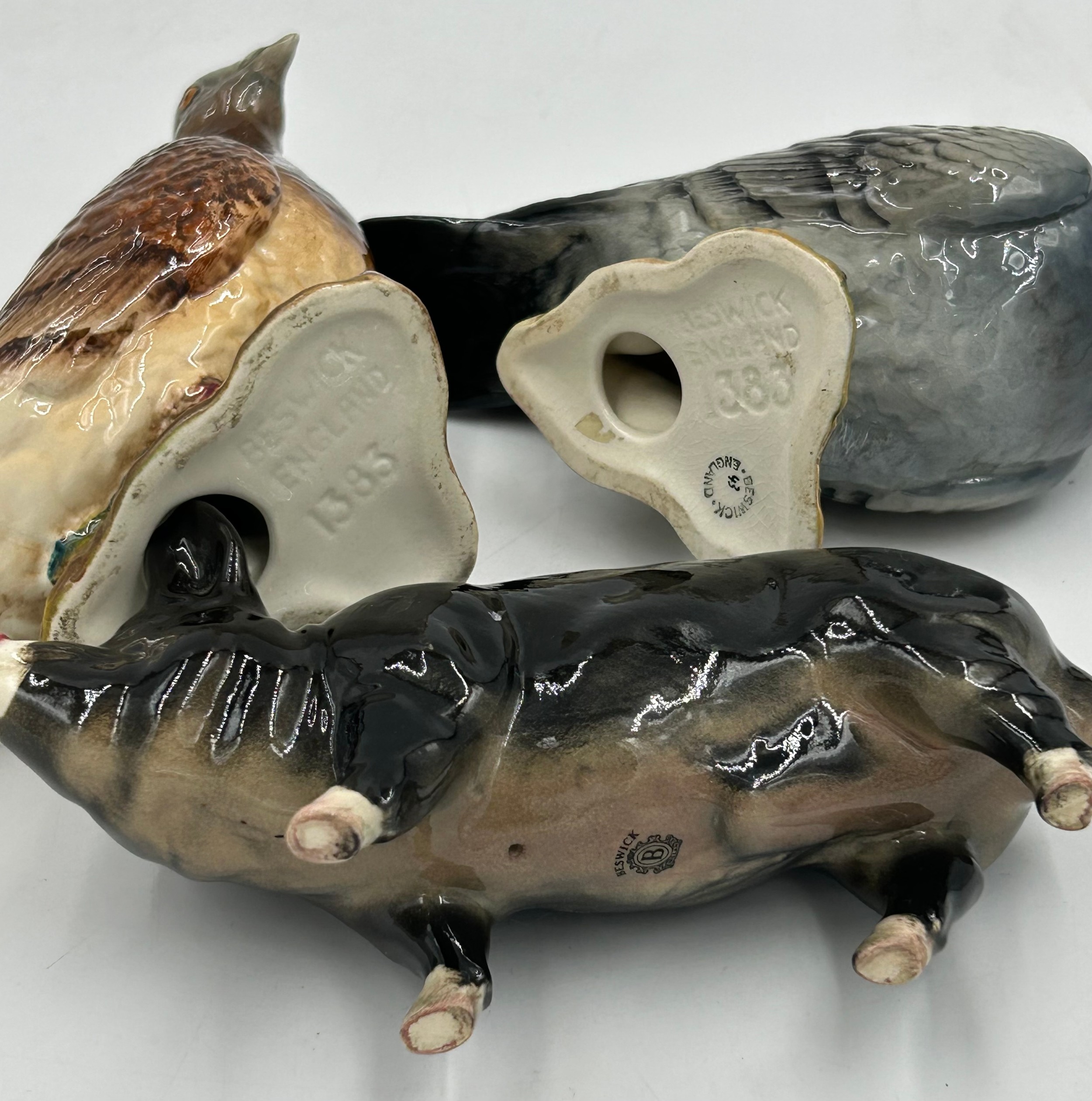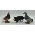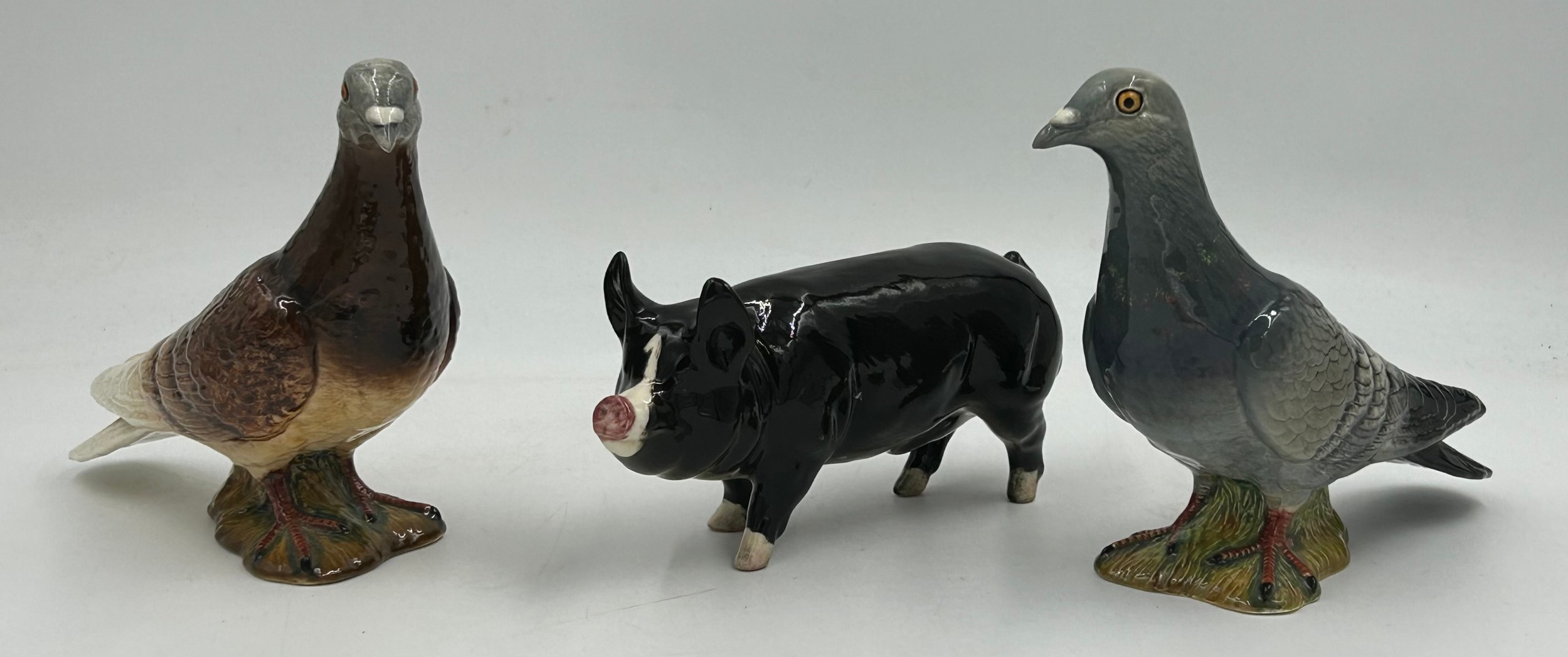 Two Beswick Pigeons to include a grey and a brown example with 1383 impressed to base together with a Berkshire Boar Pig model 4118. (3).
