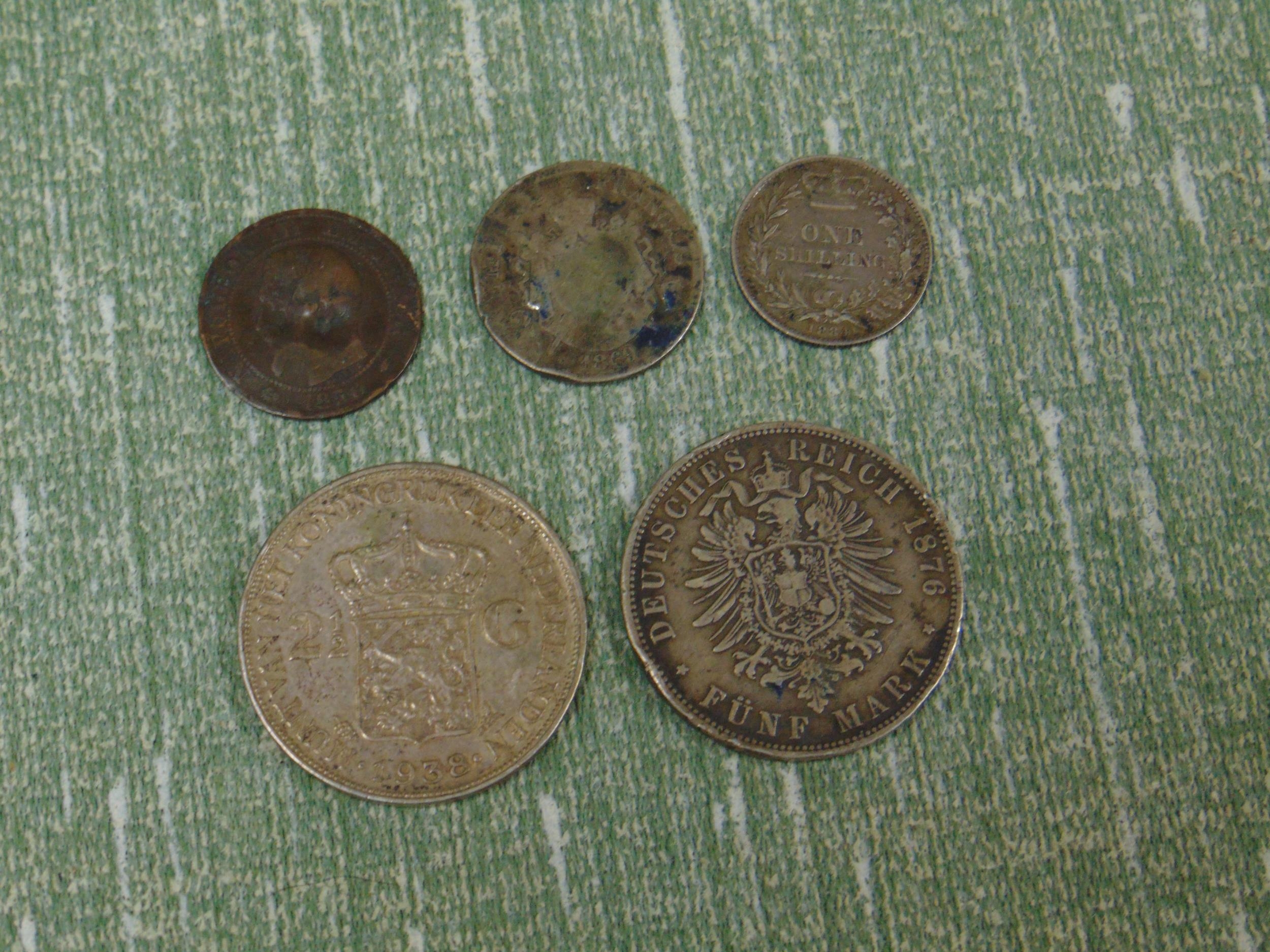German silver 1876 Funf Mark, Dutch silver 1938 2.5 Guilder, etc.