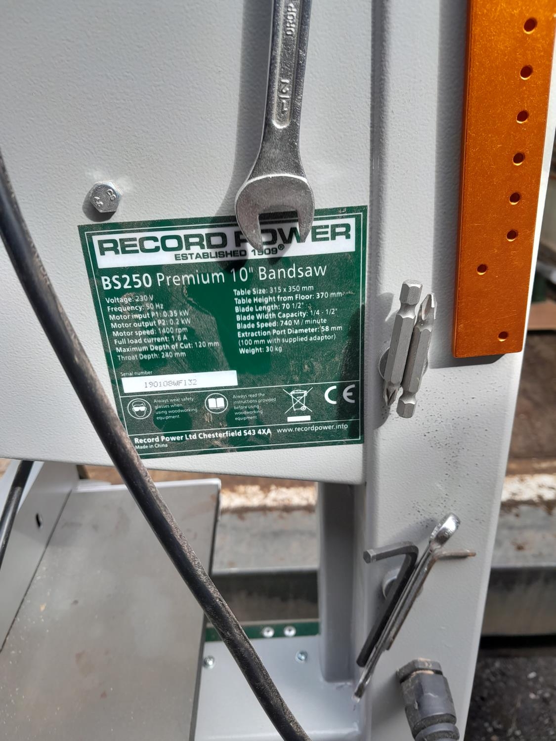 Record Power BS250 Premium 10 " Bandsaw on stand with spare blades and books