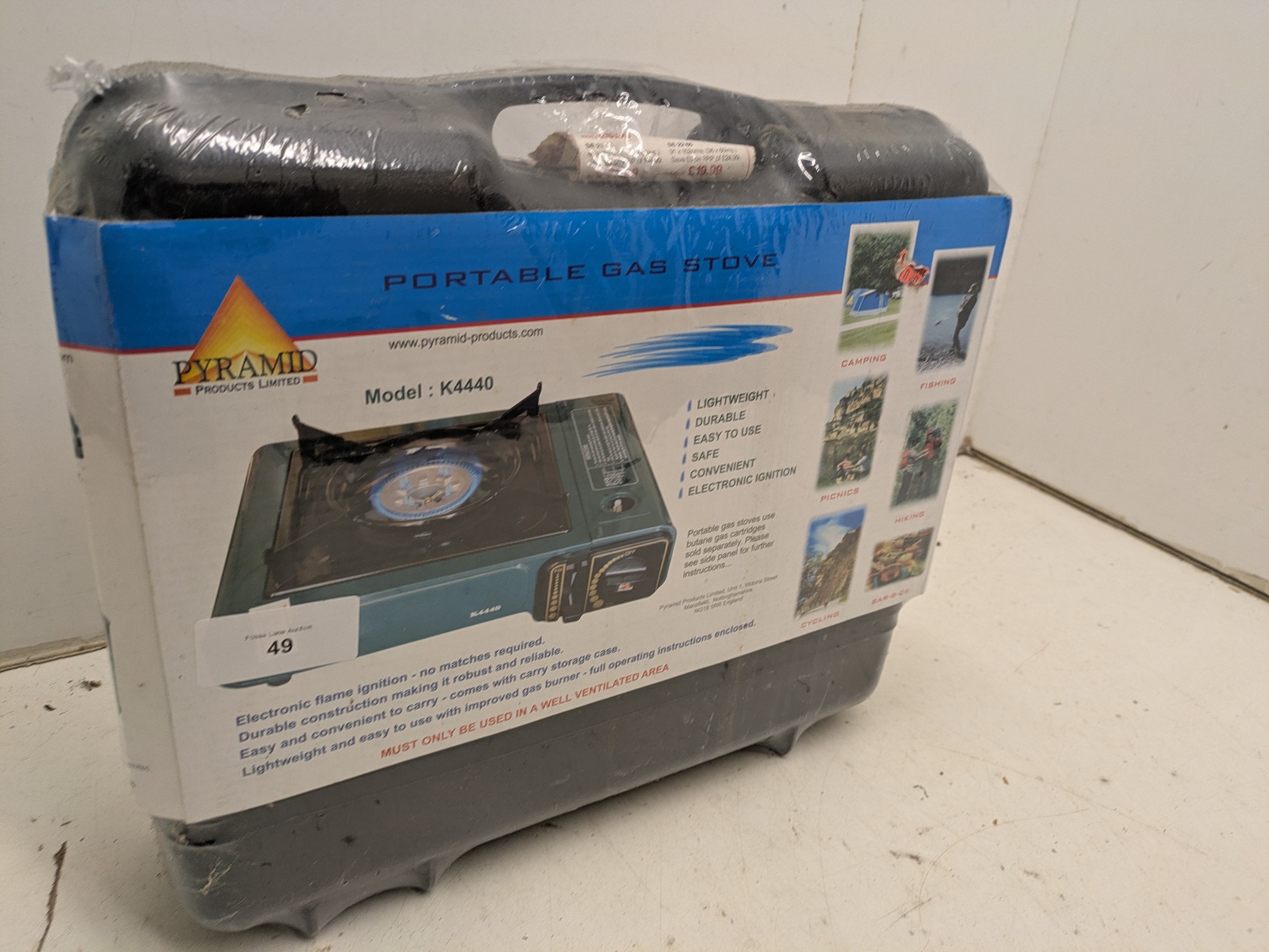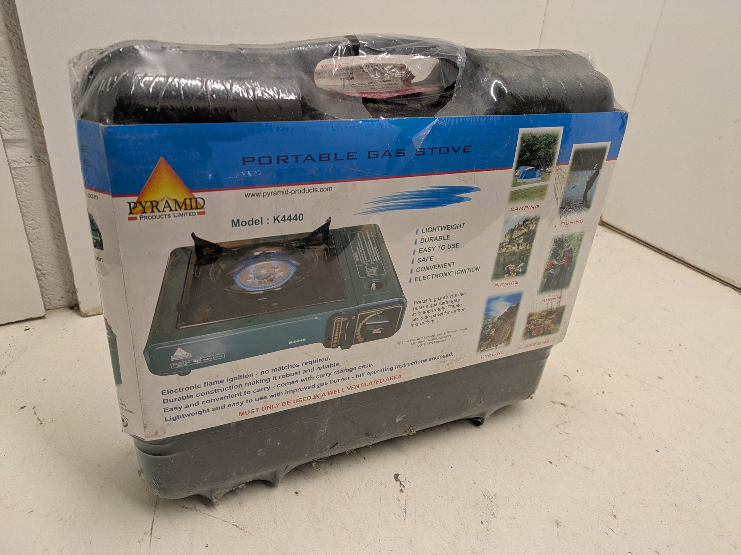 An unused pyramid portable gas stove