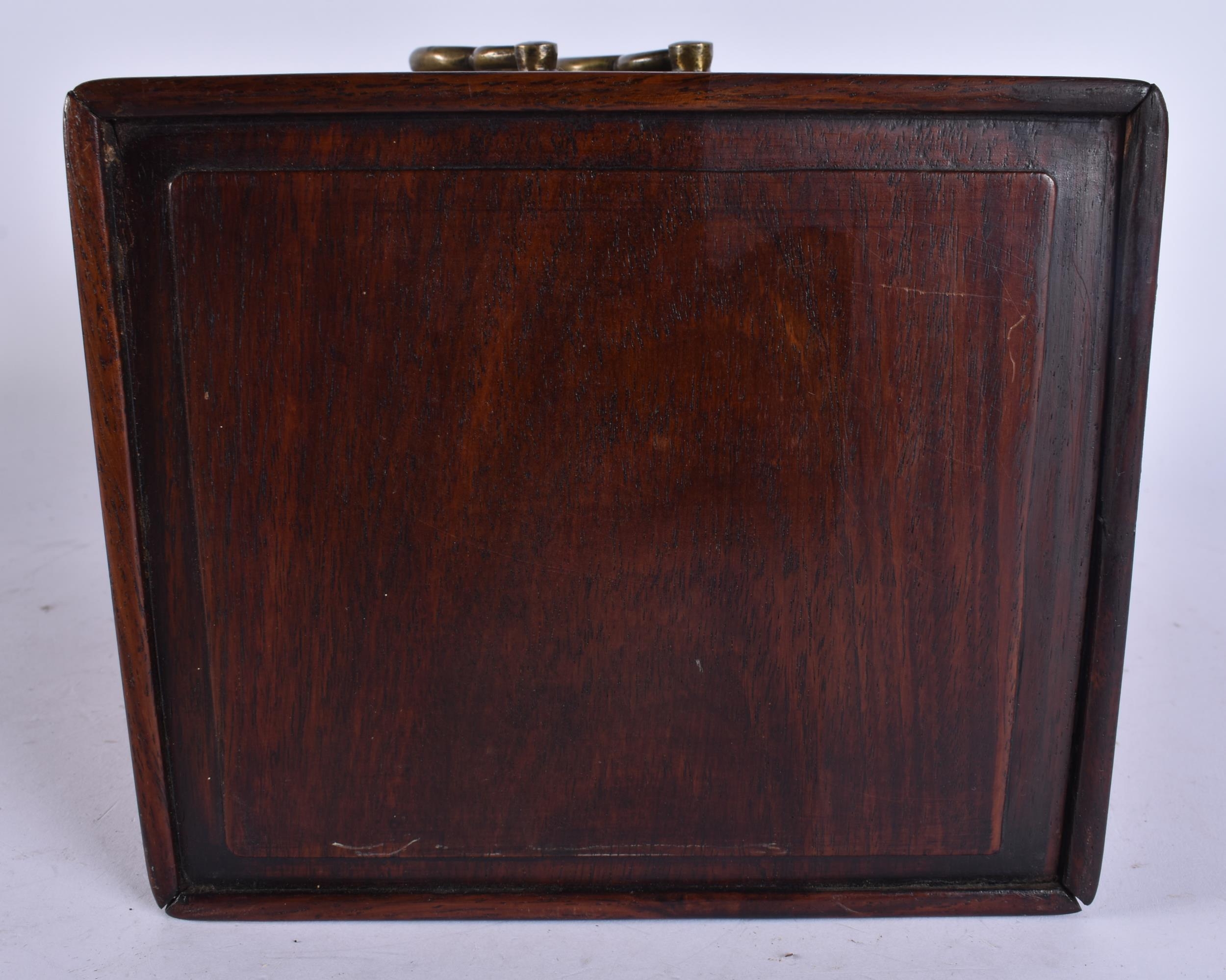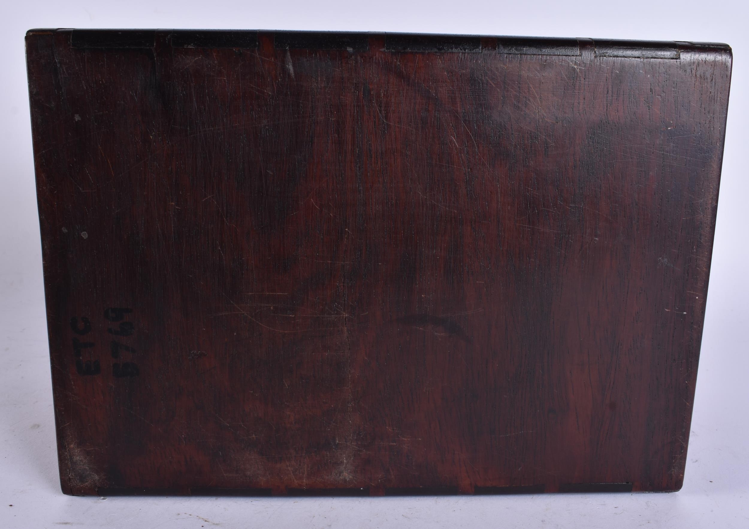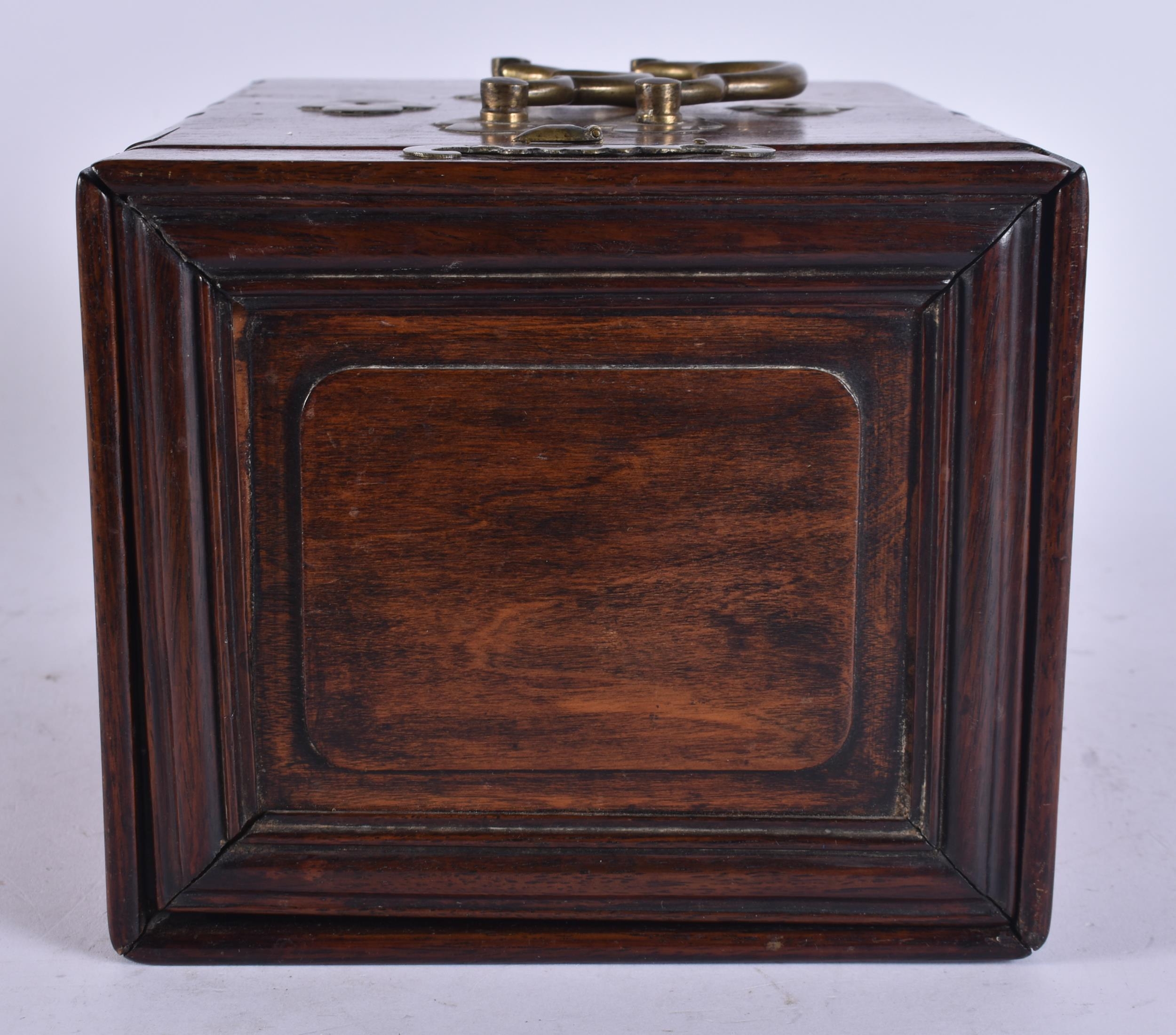 AN 18TH/19TH CENTURY CHINESE CARVED HUANGHUALI WOOD TRAVELLING VANITY CASE with mirror and removable drawers. 26 cm x 16 cm x 14 cm closed.