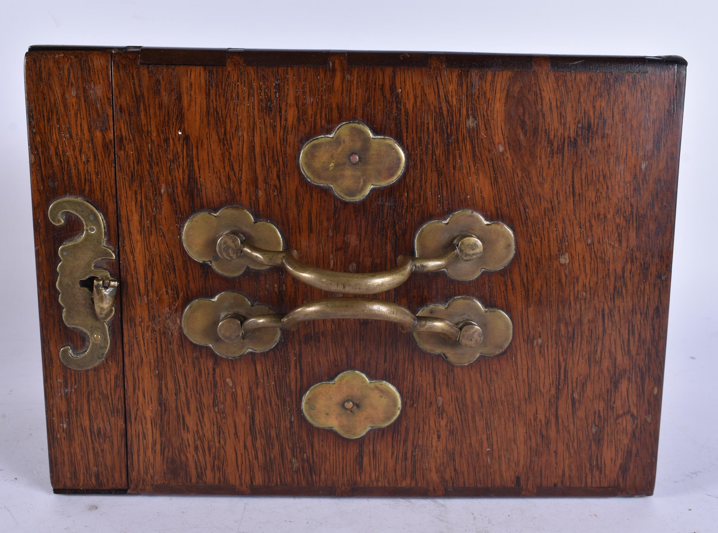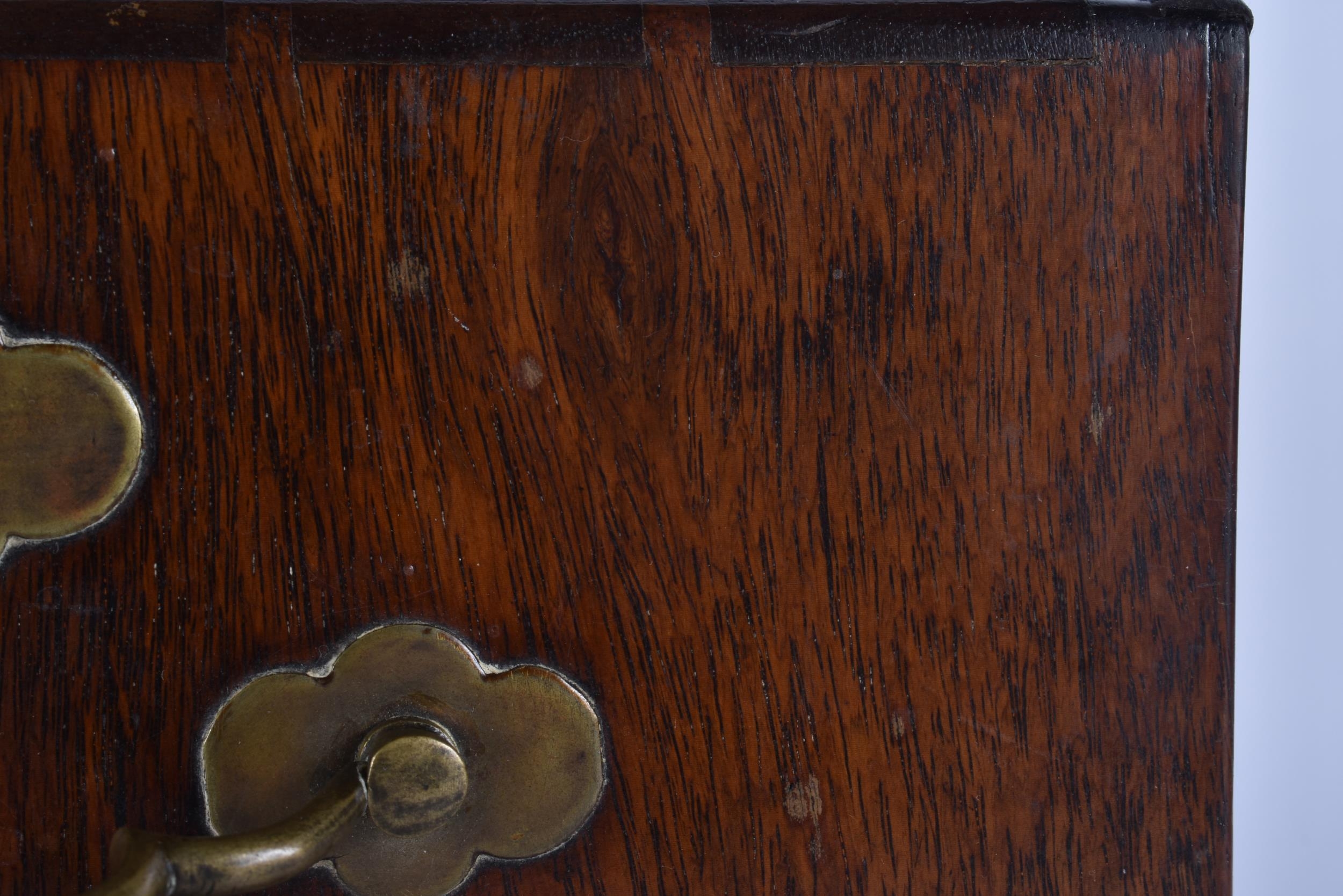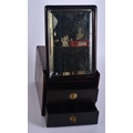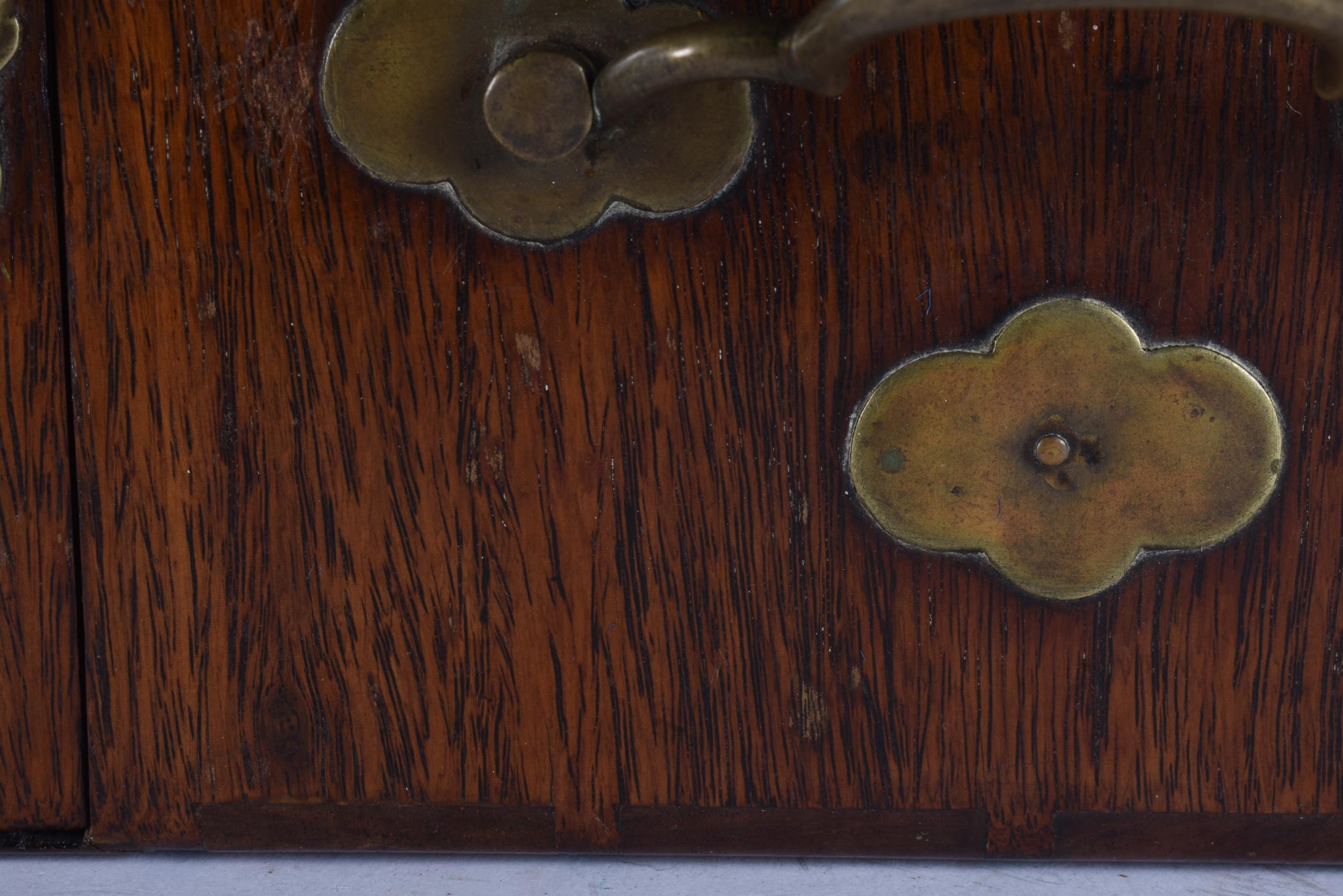 AN 18TH/19TH CENTURY CHINESE CARVED HUANGHUALI WOOD TRAVELLING VANITY CASE with mirror and removable drawers. 26 cm x 16 cm x 14 cm closed.