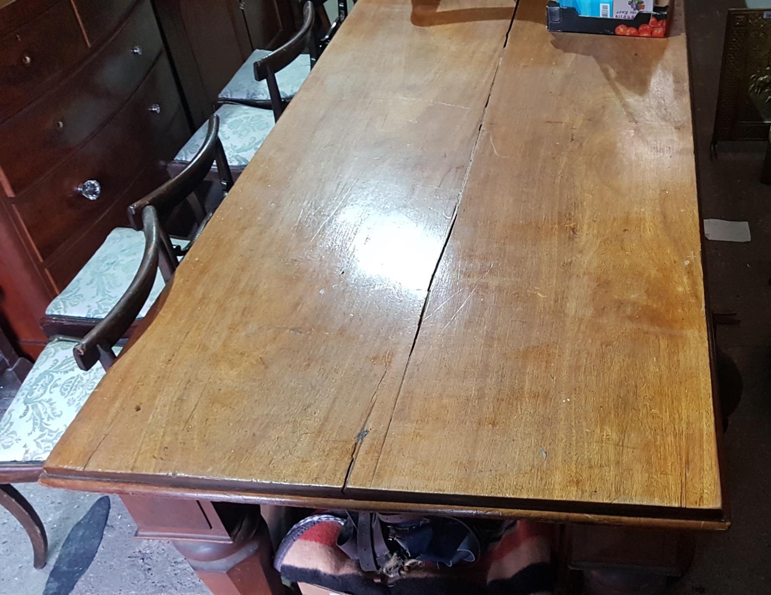 Two 19th Century Counter Tops approx. 8' long made into a large Kitchen Table with extremely heavy legs.