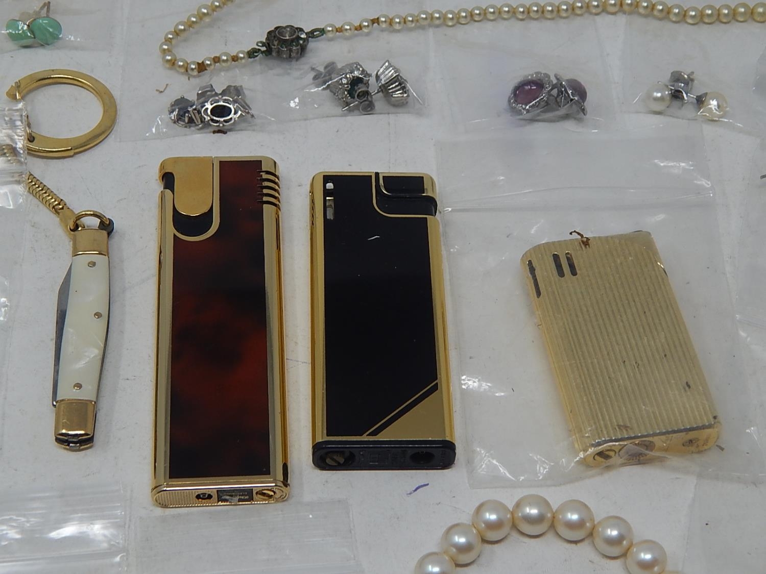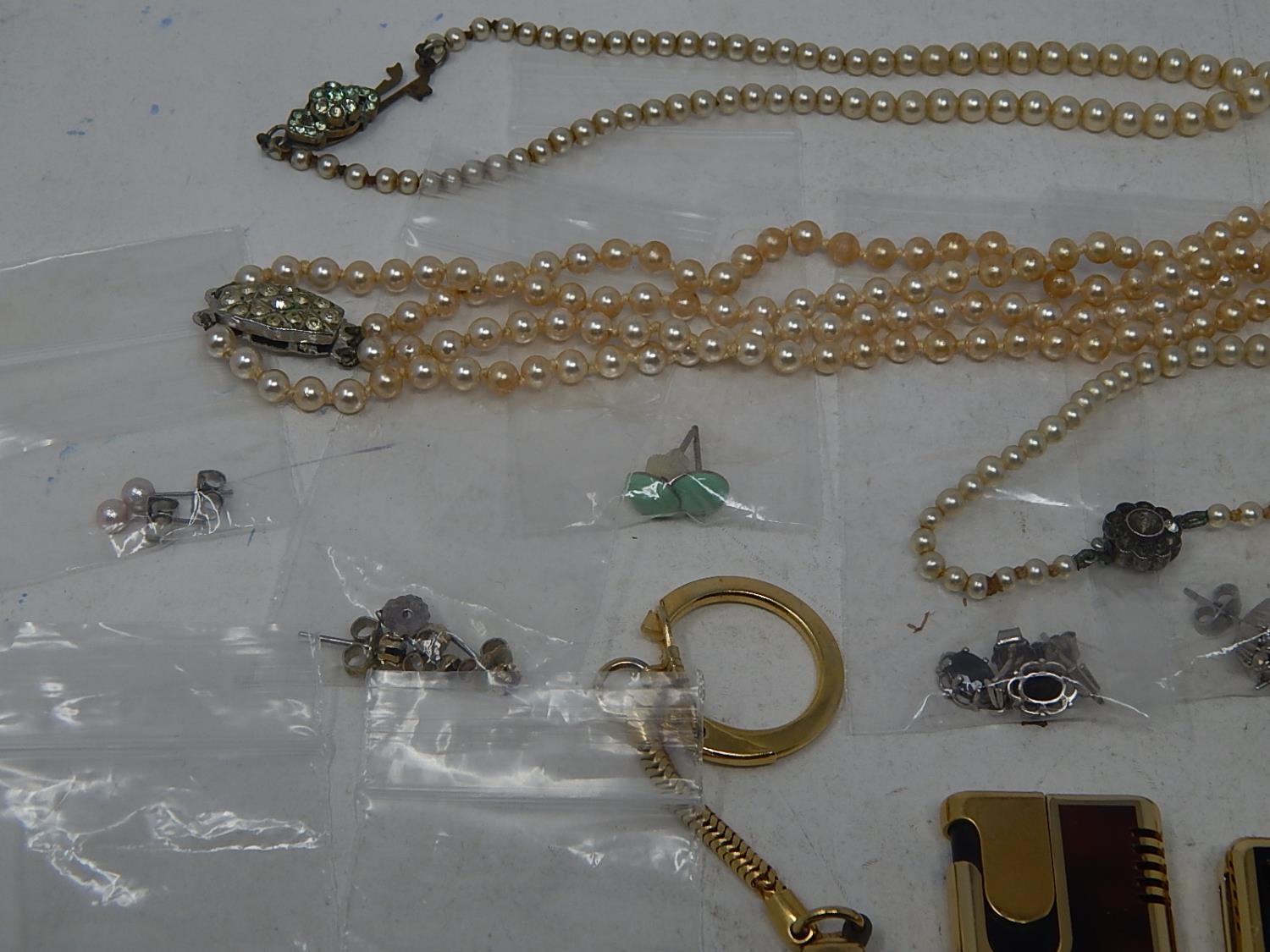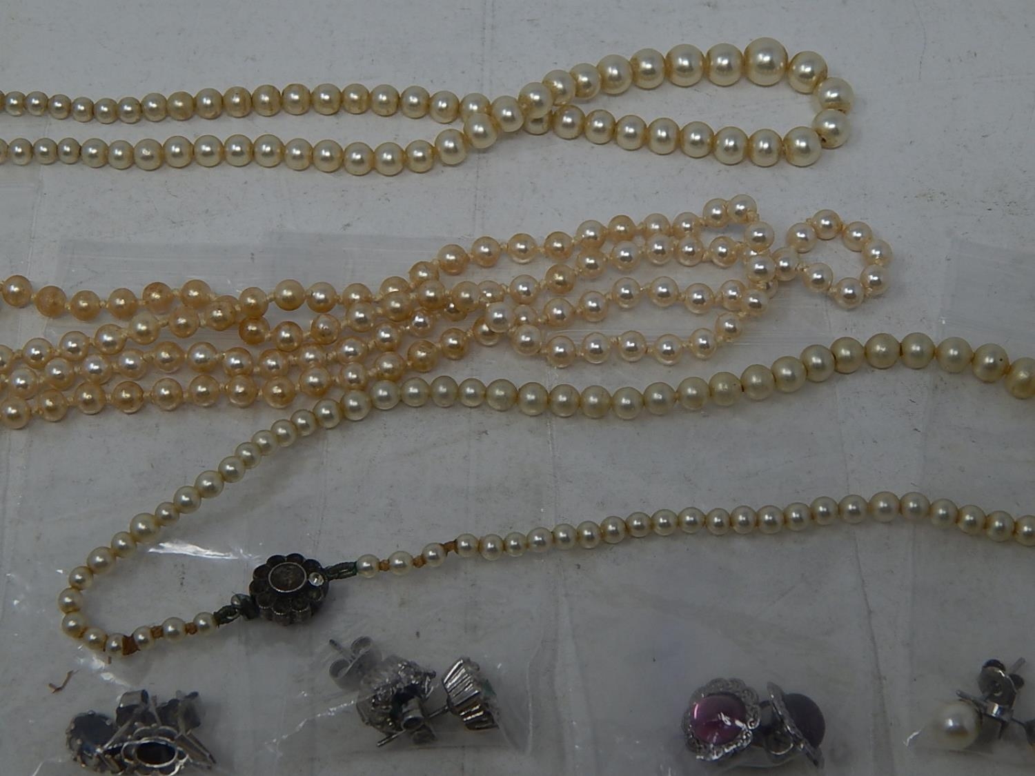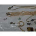 A large collection of costume jewellery, earrings etc, some rings, some in precious metal, etc