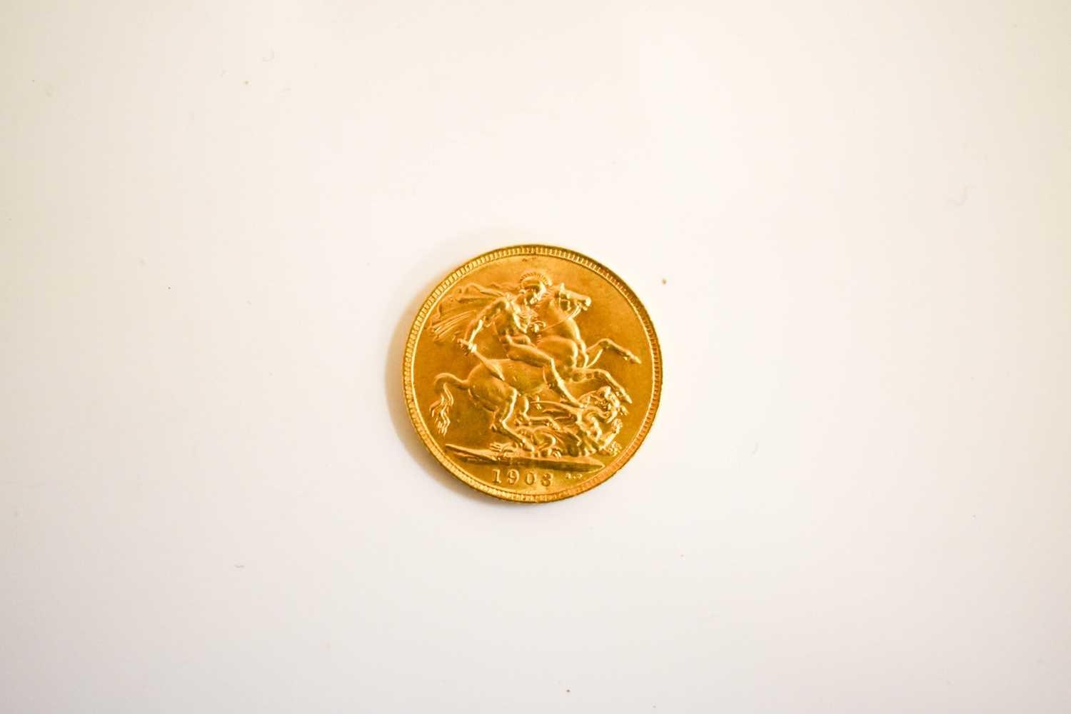 An Edward VII full gold sovereign dated 1903.